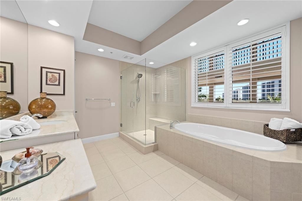 Experience affordable luxury in this beautifully furnished mid-rise condominium at Castella in The Colony Golf & Bay Club. Designed for relaxed sophistication, this three-bedroom, two-and-a-half-bath residence offers a bright, open layout that blends comfort, style and functionality. The spacious living area extends onto an expansive screened lanai, ideal for taking in tranquil bay views, lush landscaping and breathtaking sunsets. The owner’s suite and a guest bedroom open directly to the lanai, creating seamless indoor-outdoor living and a serene setting to enjoy the view. The owner’s suite features a generous walk-in closet and a spa-inspired bath with a soaking tub and glass-enclosed shower, while the two guest bedrooms share a convenient Jack-and-Jill bathroom for privacy and comfort. The kitchen is well-appointed with stainless steel appliances, abundant cabinetry, and a large island ideal for casual dining or entertaining. Additional features include hurricane protection shutters, a private entry courtyard, two assigned garage spaces with secure access and dedicated extra storage. Residents enjoy resort-style amenities, including a tropical lagoon pool with a waterfall and spa, sun deck and social pavilion with grilling stations. Ownership also includes access to The Colony Bay Club, a private beach island and activities such as kayaking, canoeing, tennis, pickleball and bocce with no additional membership required. Near Coconut Point Mall and only 20 minutes from Southwest Florida International Airport, this Castella residence combines coastal elegance, convenience and exceptional value.