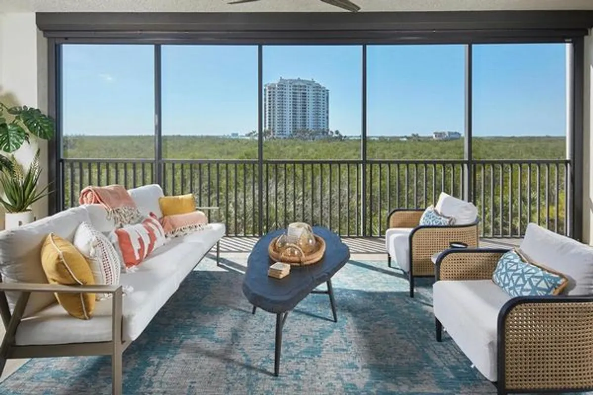 Experience Elevated Living in This Designer-Renovated Condominium with Unmatched Style and Panoramic ViewsIf you’re in search of a sophisticated, residence that effortlessly blends modern design with timeless elegance—your search ends here. This impeccably renovated condominium, professionally curated and furnished by Clive Daniel Interiors, was proudly featured in Design & Decor magazine for its extraordinary style and attention to detail.Reimagined by the acclaimed luxury builder Imperial Homes of Naples, every element of this home reflects quality and refinement. The interior showcases wide-plank wood-look tile flooring, bespoke designer lighting, and custom window treatments throughout, creating a warm yet contemporary ambiance.The expanded, chef-inspired kitchen is the heart of the home—designed for both entertaining and everyday living. It features custom cabinetry with elegant glass-paneled doors, a generous center island, a counter-height bar, and premium, built-in appliances.Flowing seamlessly from the kitchen, the open-concept living and dining areas invite you to relax or host in style. Expansive sliding doors open to a wraparound lanai with new hurricane-rated screens, offering unobstructed sunset views and a tranquil backdrop of lush tropical surroundings.The serene primary suite offers a true retreat, complete with a luxurious, spa-like bathroom, a fully customized walk-in closet, and private access to the lanai. Each detail has been thoughtfully designed to enhance comfort and functionality. Set within the exclusive Castella enclave, nestled across 11 acres of tropical landscaping, you’re just steps away from the resort-style pool and spa. Additional recent upgrades include a newer HVAC system, a new water heater, and more.This residence is move-in ready—meticulously finished, professionally designed, and waiting for you to make it your own.