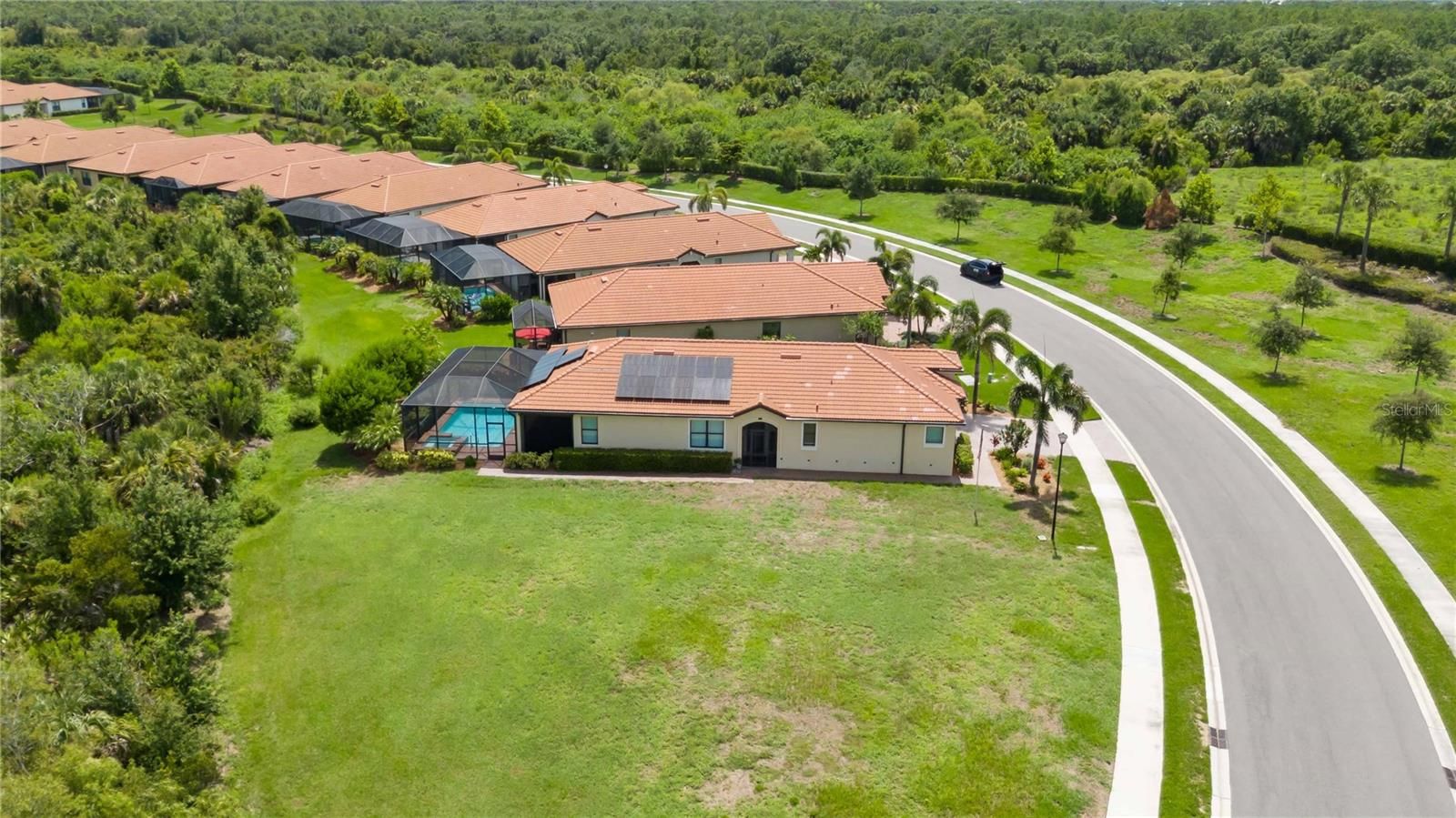 Location, Location, Location. This is a must see, especially if you love golf. You will not be disappointed with this 2000+ square foot home. With over $200K of upgrades, this is a one-of-a-kind Roma model. 2 bedrooms, 2 bathrooms, den that can be converted into a 3rd bedroom and a flex room adjacent to second bedroom, heated pool and spa. The home also features an Entire Home Solar System that is insured and transferable. Premium lot – common area in front and side with preserve in the back the monthly HOA fee includes 2 golf memberships, as well as ground maintenance, irrigation, cable TV and more great amenities. Some of the many upgrades include remodeled chef’s dream kitchen and pantry, upgraded cabinets, enlarged quartz island and backsplash, top of the line appliances (induction range), and under cabinet lighting. Upgraded bathrooms; primary bath has a glass walk-in shower, dual sink vanity, separate water closets, and a large custom walk-in closet (relocated HVAC from laundry room to garage). Large laundry room with lots of storage space and utility sink. Extra storage closets in the garage and drop zone (floor to ceiling). Crown molding and tile throughout the house. Central vacuum system, Electric storm smart hurricane screens on the lanai. Hurricane windows in front of the house. 220 outlets in garage for EV charging. Floored attic, pull down ladder, solar attic fan, insulated garage door, garage ceiling has spray foam insulation. 5 baffles added to roof vents. Sarasota National is a 2400-acre International Audubon Bird Sanctuary with some of the most beautiful lakes and preserves in Venice. A 30,000 Sq Ft clubhouse with resort style pool, hot tub, outdoor tiki bar serving food and drinks, coffee house, fine dining restaurant, golf club restaurant, fitness center, card room, day spa, bocce ball, pickle ball, tennis, dog park, event lawn and an 18-hole championship golf course. Short drive to downtown Venice Island and the new area of Wellen Park and the Atlanta Braves Stadium. Close to Venice Beach where you can relax and watch the sunset over the Gulf of Mexico.