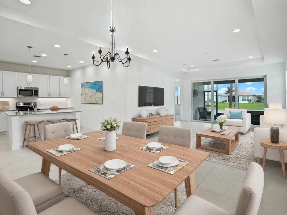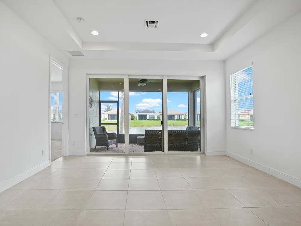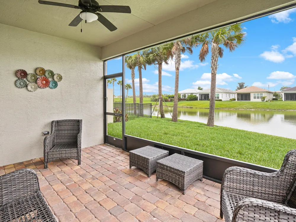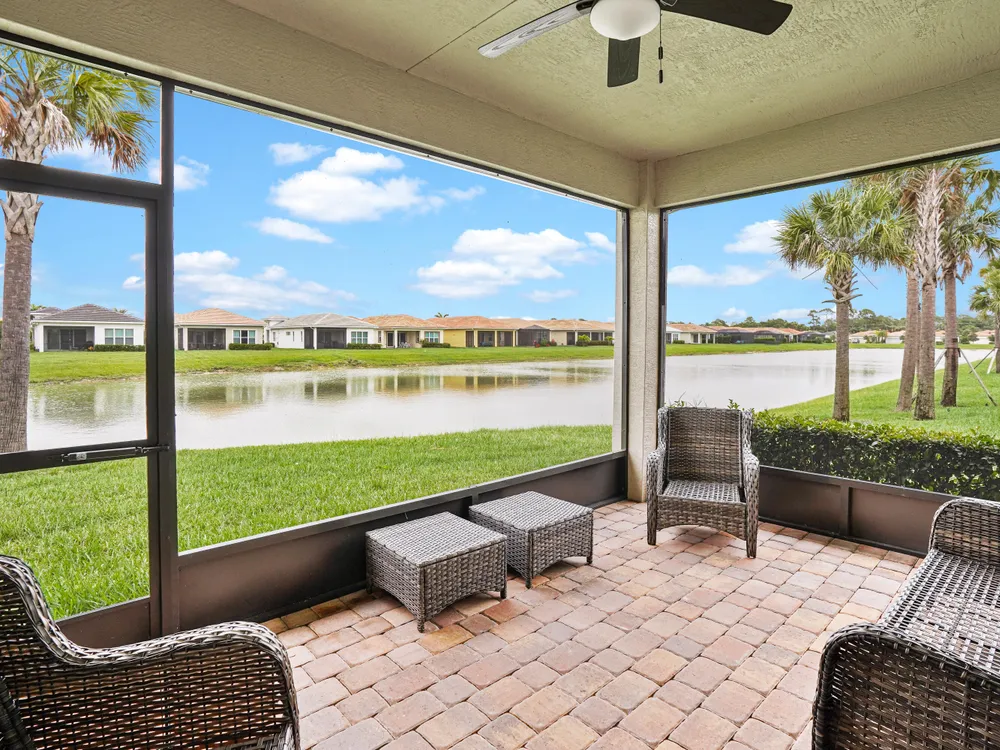 Price Improvement! This stunning, well priced villa offers the perfect blend of style and serenity. With 2 spacious bedrooms and 2 bathrooms, plus a versatile den perfect for a home office or reading nook, there's ample space for relaxation and entertainment. The interior boasts elegant upgrades, including floor-to-ceiling tile with beautiful decorative tile inserts, upgraded kitchen cabinets, sleek backsplash, and under-mount lighting. The real showstopper, however, is the covered screened patio at the back of the villa, which enjoys a breathtaking lake view - the perfect spot to unwind and take in the surroundings. Great cul de sac, dead end lot with long driveway. Also included with your HOA dues are the outstanding resort style amenities in Verano. Click More