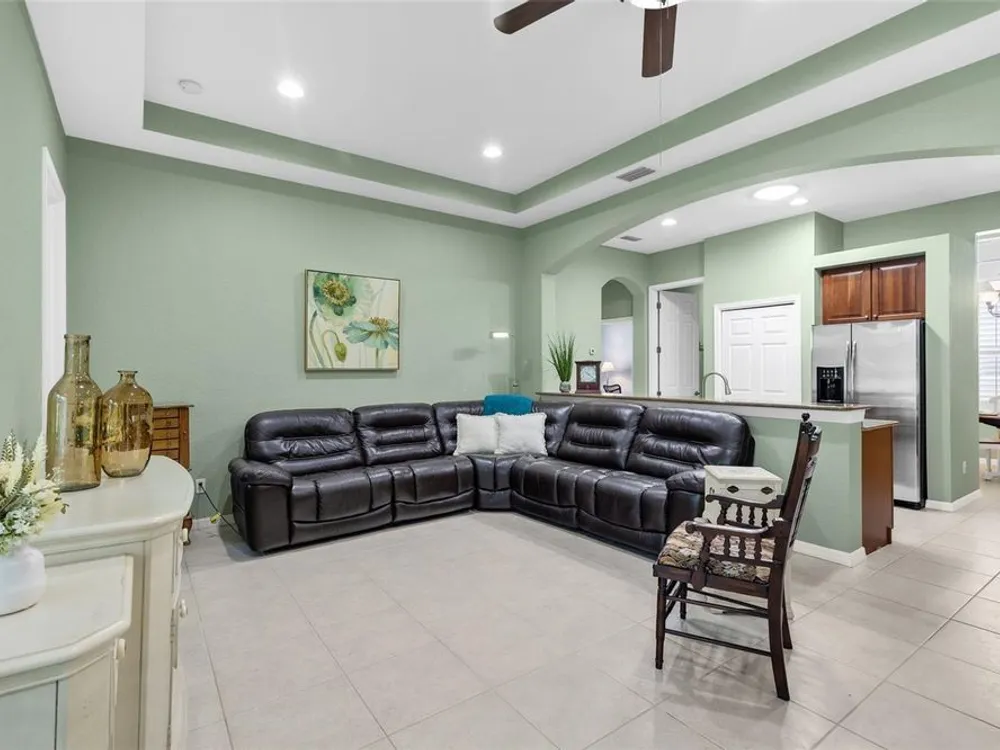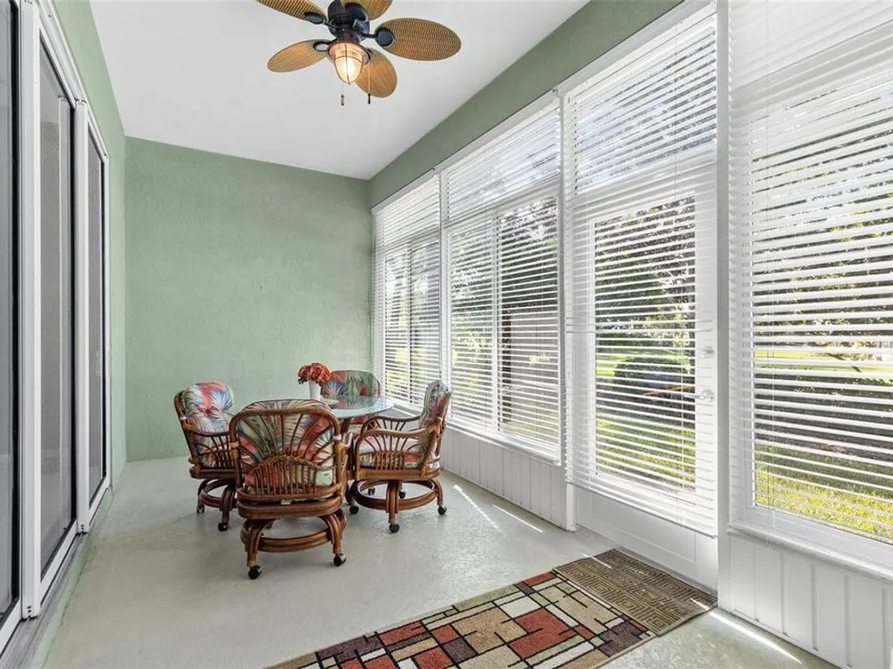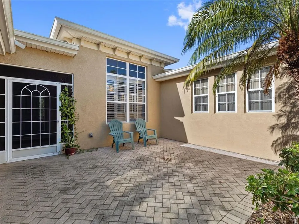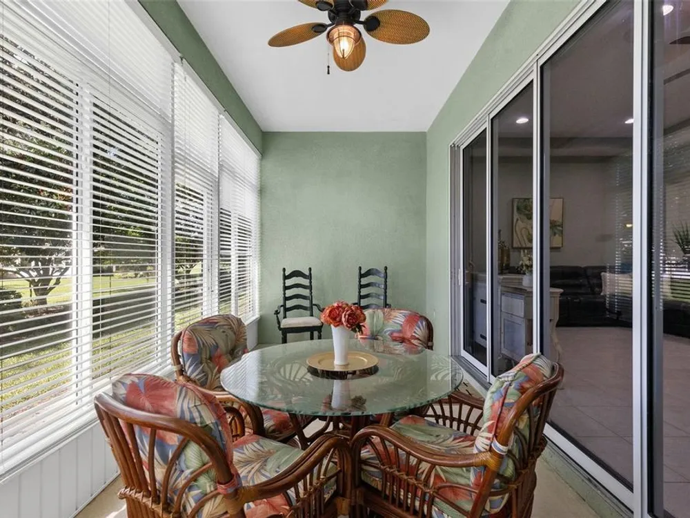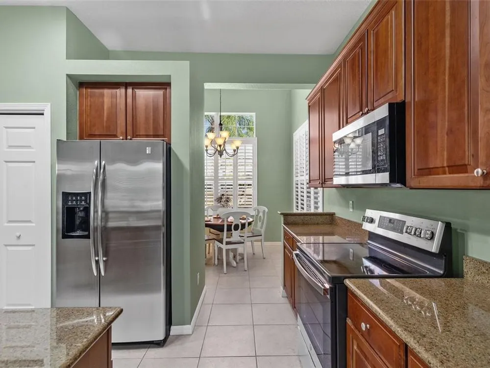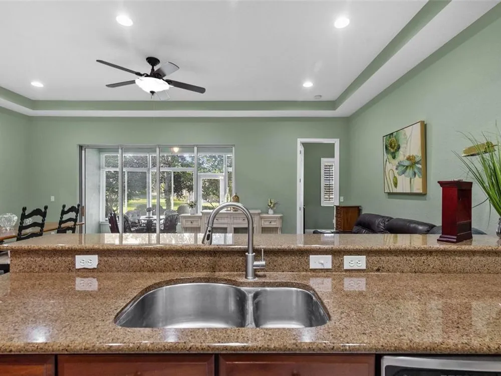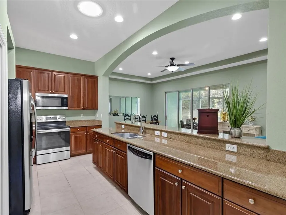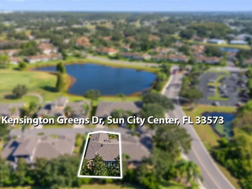 Beautiful Kensington Greens Home near South Clubhouse featuring, Upgraded Features Throughout: This Kensington Greens home, located just steps from the South Clubhouse, is filled with impressive upgrades. The kitchen boasts granite countertops, 42-inch wood cabinets, and GE Profile appliances, including a convenient gas cooktop and an electric convection oven. An extra-large refrigerator features both an icemaker and a cold-water dispenser, making meal prep and entertaining a breeze.The bathrooms are equally luxurious, with Corian countertops in both the master and guest baths. The master bath is designed for comfort, featuring double sinks and a spacious step-down shower with two corner seats. The master suite offers ample storage with two walk-in closets. Enjoy relaxing or entertaining in the expansive 14x23 living room and the dining area, conveniently located off the kitchen. Step outside to the 8x18 lanai and take in the beautiful surroundings. The laundry room includes wood cabinets and comes equipped with a Maytag washer and dryer for added convenience. This well-kept home truly reflects the pride of ownership, with every detail carefully maintained. Located in King's Point, a gated community in Sun City Center, residents have access to over 200 social clubs and activities. Whether you prefer to stay active or relax, you can enjoy four outdoor heated pools and two indoor pools. The community offers a wide range of activities, including dance instruction, Bingo, Bridge, craft clubs, and more. An 800-seat theater hosts live shows and first-run movies for entertainment year-round. Whether you are a snowbird seeking a seasonal residence or looking for a year-round home, this property is sure to meet your needs.
