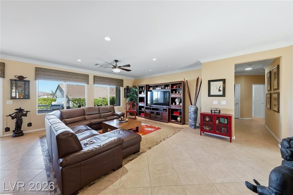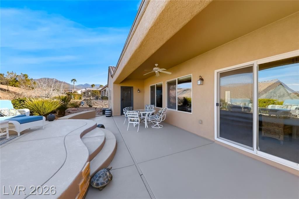 ~OPEN HOUSE SAT 4/18 1-3pm~ Impeccably maintained & upgraded home on an elevated lot with beautiful mountain views, featuring a welcoming courtyard entry and glass front door that fills the home with natural light. Bright open floor plan with tile flooring throughout. Thoughtful upgrades include custom electric blinds, designer light fixtures, crown molding, and newer A/C units for added comfort and efficiency. The chef’s kitchen offers granite countertops, custom backsplash, and seamless flow to the main living areas, ideal for everyday living and entertaining. Step outside to a fully fenced backyard, perfect for pets, where you can enjoy serene mountain views and added privacy. Located in premier 55+ community with resort-style amenities & vibrant, active lifestyle. Many furnishings are negotiable, offering a convenient turnkey opportunity ideal for a second home or low-maintenance living.