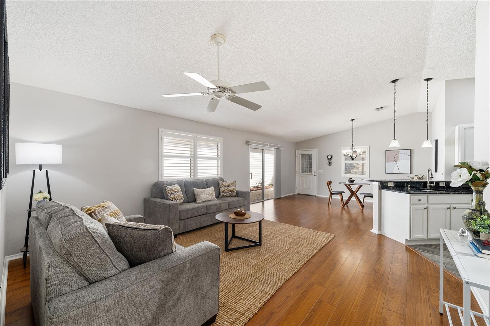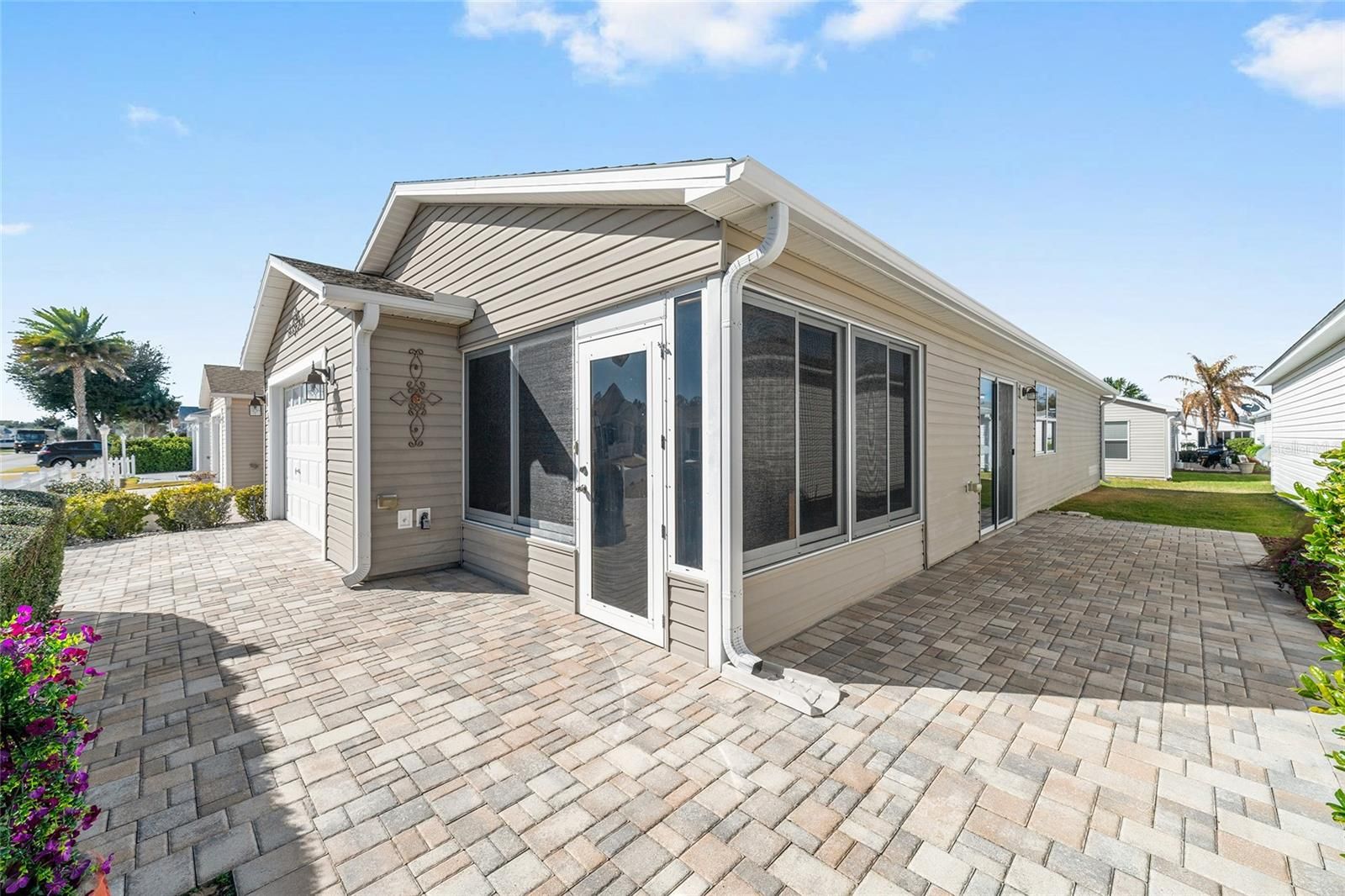 BOND PAID! BEAUTIFUL UPDATED CABOT COVE Patio Villa Model featuring HIGH ceilings, natural light, and quality upgrades throughout. This 2-bedroom, 2-bath home offers an open-concept layout allowing the high ceilings to enhance the sense of space. The main living areas feature luxury vinyl plank flooring, while the kitchen is finished with TILE PLANK FLOORING for durability and beauty! The kitchen includes UPGRADED GRANITE countertops, STAINLESS STEEL APPLIANCES, and a breakfast bar that opens to the dining and living areas. Both bathrooms are updated with matching granite countertops for a cohesive finish. PRIMARY BEDROOM has walk-in closet. PLANTATION SHUTTERS throughout provide privacy and light control. Laundry is located conveniently inside the home. The enclosed LANAI with CHATTAHOOCHEE FLOORING is perfect for your morning coffee or having dinner in the evening!!! Exterior features include an extended paver driveway, walkway, and a spacious paver courtyard. ROOF (2020). GOLF CART INCLUDED! LOCATION is PERFECT for the Golf Cart Lifestyle! Less than 2 miles to SOUTHERN TRACE PLAZA for SHOPPING & RESTAURANTS! Only .3 mi to CHURCHILL DOWNS POOL & REC CENTER! BUT EVEN MORE--Perfectly located between LAKE SUMTER LANDING & SPANISH SPRINGS TOWN CENTERS for Dining, Shopping and ENTERTAINMENT! SAVOR LIFE with all The Villages and surrounding areas have to ENJOY!!! Be sure to watch our YOUTUBE VIDEO tour of this wonderful home!(Link is under the picture above.) Schedule a personal tour today!