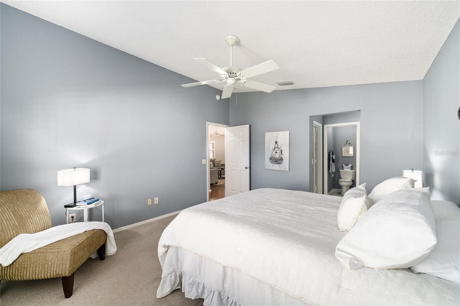 - Ceiling Fan(s), High Ceilings, Main Level Primary, Thermostat, Walk-In Closet(s)
