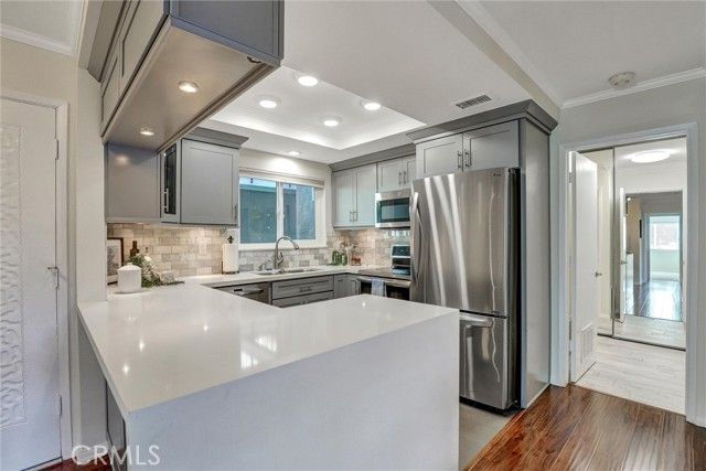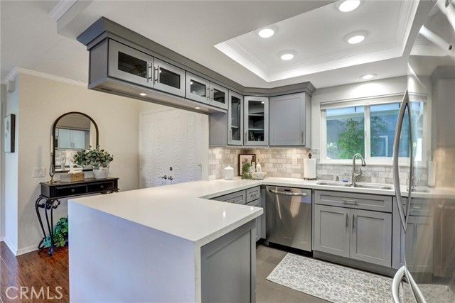 Fully Remodeled. Open Concept Kitchen. Luxurious Tiled Fully Remodeled Bathrooms. Primary Suite has Redesigned Oversized Step in Shower Plus Separate Soaking Bathtub. Central Air Conditioning, 1,199 Sq. Ft. ,2 Bedrooms 1.75 Baths , Smooth Ceilings, Newer Recessed LED Lighting, New Low Pile Carpet in the Bedrooms, New Paint, High Quality Wood Flooring in the Entry, Dining and Living Room Areas. Double Pane Windows and Sliding Doors, Move -In Ready. ( Some Furniture Can Remain ) Garden Villa Type Floorplan - Model Name is Villa Capri 2. Easy Access to the World Class Golf Course and Very Close to Clubhouse 4 ( Pool Hot Tub and all the Arts & Crafts- Wood Shop , Jewelry Making, Art and Ceramics ( Both Slip Casting and Wheel ) Studios, Sewing and Quilting Rooms , Photography Studio & Lapidary ( Stone Cutting ,Tumbling, & Glass Polishing ). 7 Clubhouses, 5 Swimming Pools, Pickle Ball, Tennis, Bocce, Ping Pong, 2 Computer centers ( PC and MAC )Free Local Bus Transportation, Welcome To Laguna Woods Village less than 8 miles to the Beautiful Blue Pacific Ocean in Laguna Beach.