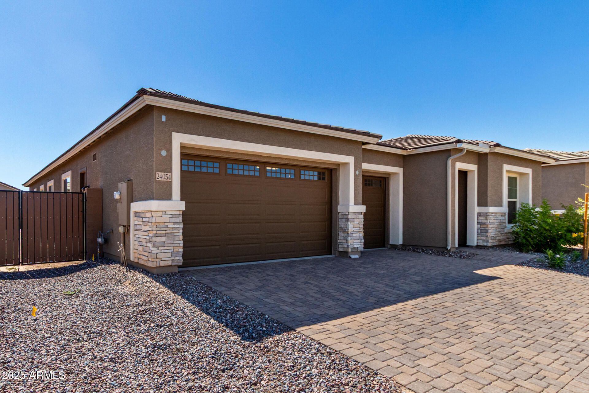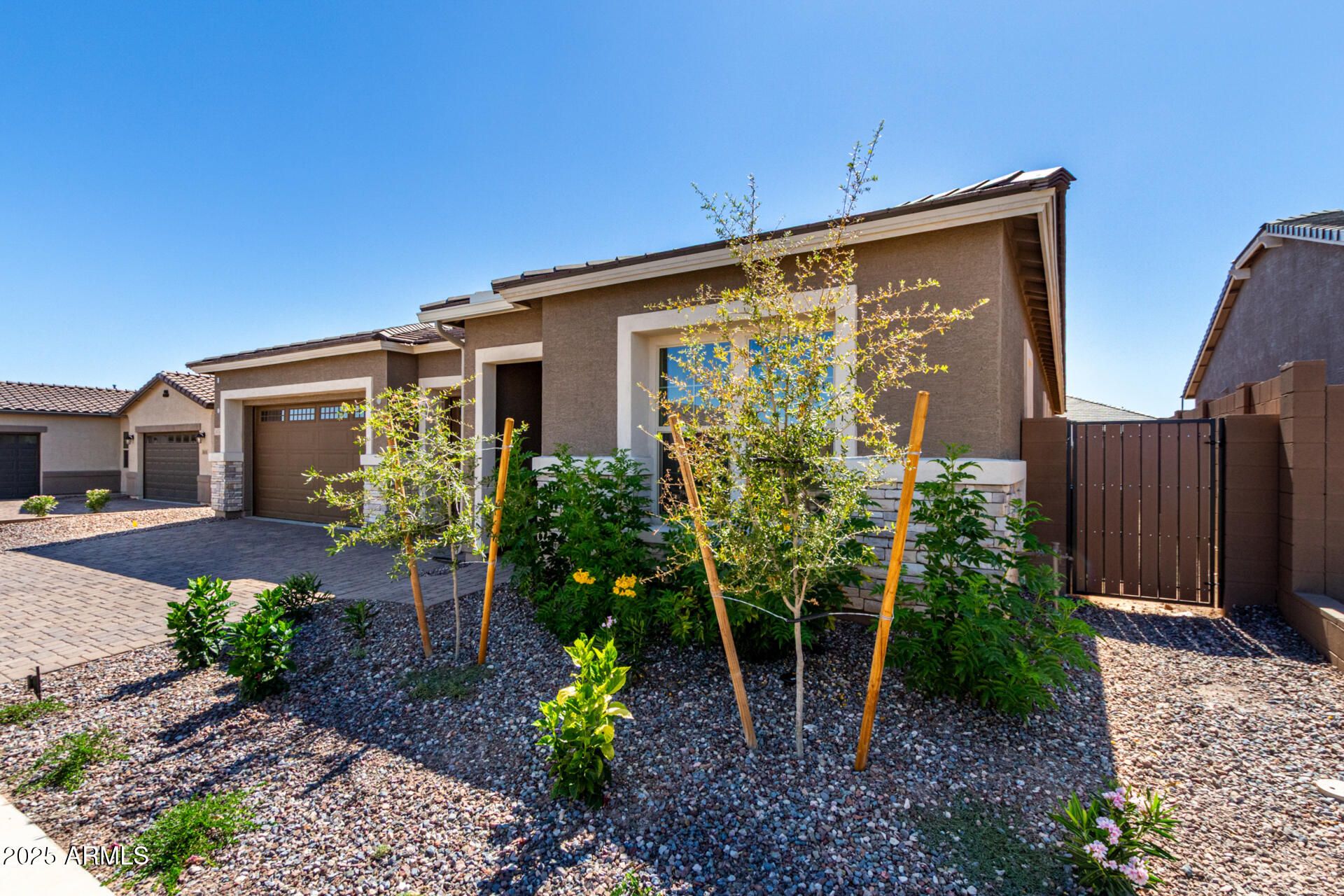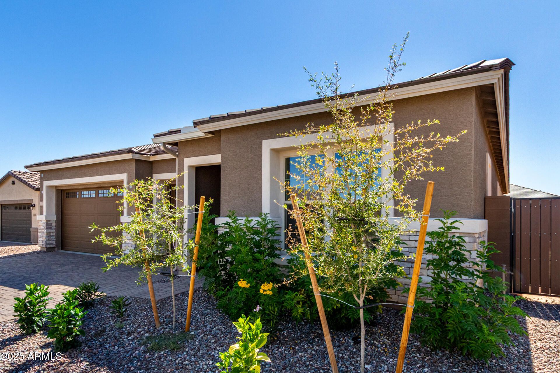 Discover this almighty NEXTGEN Darius home, ready for quick move-in! This is the perfect option for multi-generational living situations as it has a nicely upgraded en suite featuring wet bar, walk-in shower and cabinets. Included features: a covered entry; a beautiful study; an immense great room with center-meet patio doors; a gourmet kitchen showcasing 42'' cabinets, quartz countertops, stainless-steel appliances, a large island, and a walk-in pantry; an inviting dining area; a serene primary suite boasting a generous walk-in closet and a private bath with double sinks; two secondary bedrooms with a shared bath. Central laundry and powder rooms; and a charming covered patio. This home also offers soaring 10' ceilings, 9" x 35" stone tile flooring, cultured marble bath countertops, ceiling fan prewiring and extra windows in select rooms, front yard landscaping, and concrete pavers at the driveway and walkway. Close to the new Frys marketplace with convenient access to the Loop 303 and US-60, nearby TSMC, Lake Pleasant, Surprise Stadium, Wildlife Zoo, Aquarium & Safari Park in the fast-growing NW Valley. This beautiful home is done right and has so much to offer!
