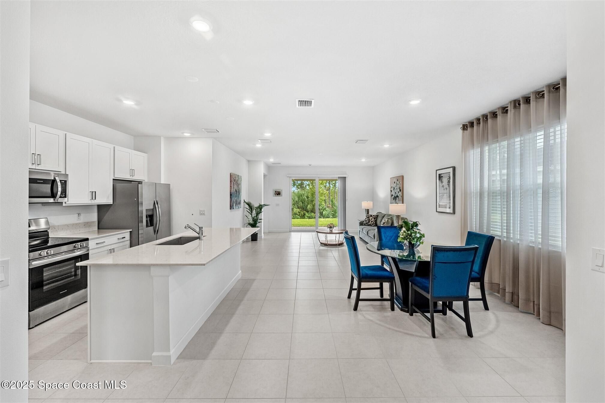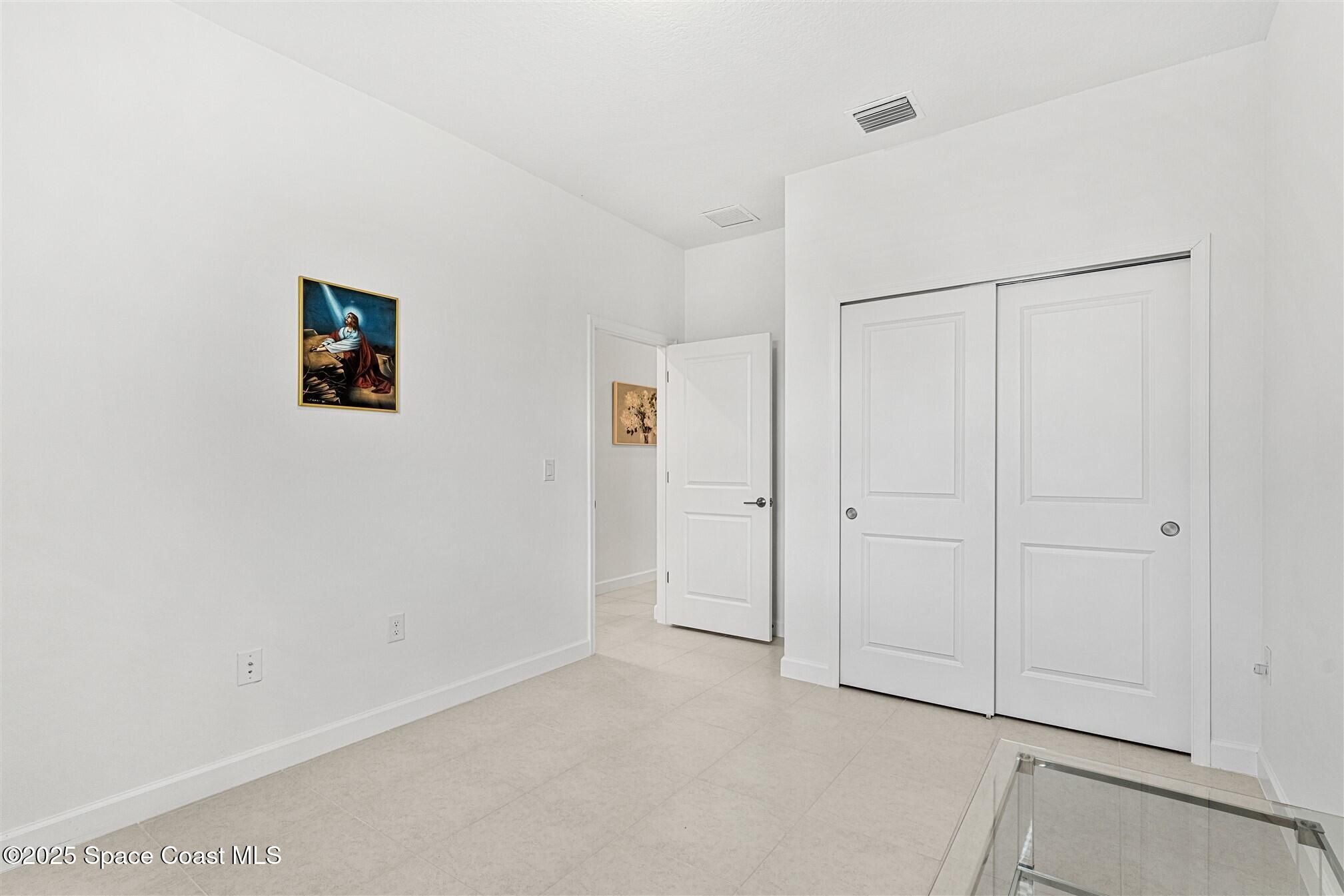 Must See, less than one year old, 1794 sq ft, 3 bedroom plus flex area, 2 bath, 2 car garage home in The Timbers at Everland, the sought after 55+ resort style community in Northwest Palm Bay! This 2024 built meticulous home backs up to a lush private conservation area and includes IMPACT WINDOWS and SLIDER, which make hurricane season stress free! Must have features including white kitchen cabinets with marble look quartz counters, tile throughout, and window blinds throughout are included in this beautiful home! All furnishings available for an additional $5,000. Unwind at the brand new private clubhouse, featuring a large heated pool and spa, fitness room, aerobics studio, card room, dog park, putting green, fishing dock, tennis and pickle ball courts, bocce, and even a movie theater! And the HOA covers your home's lawn care! Short car ride to Atlantic beaches! Close to shopping and dining. One hour drive to MCO, cruise port!