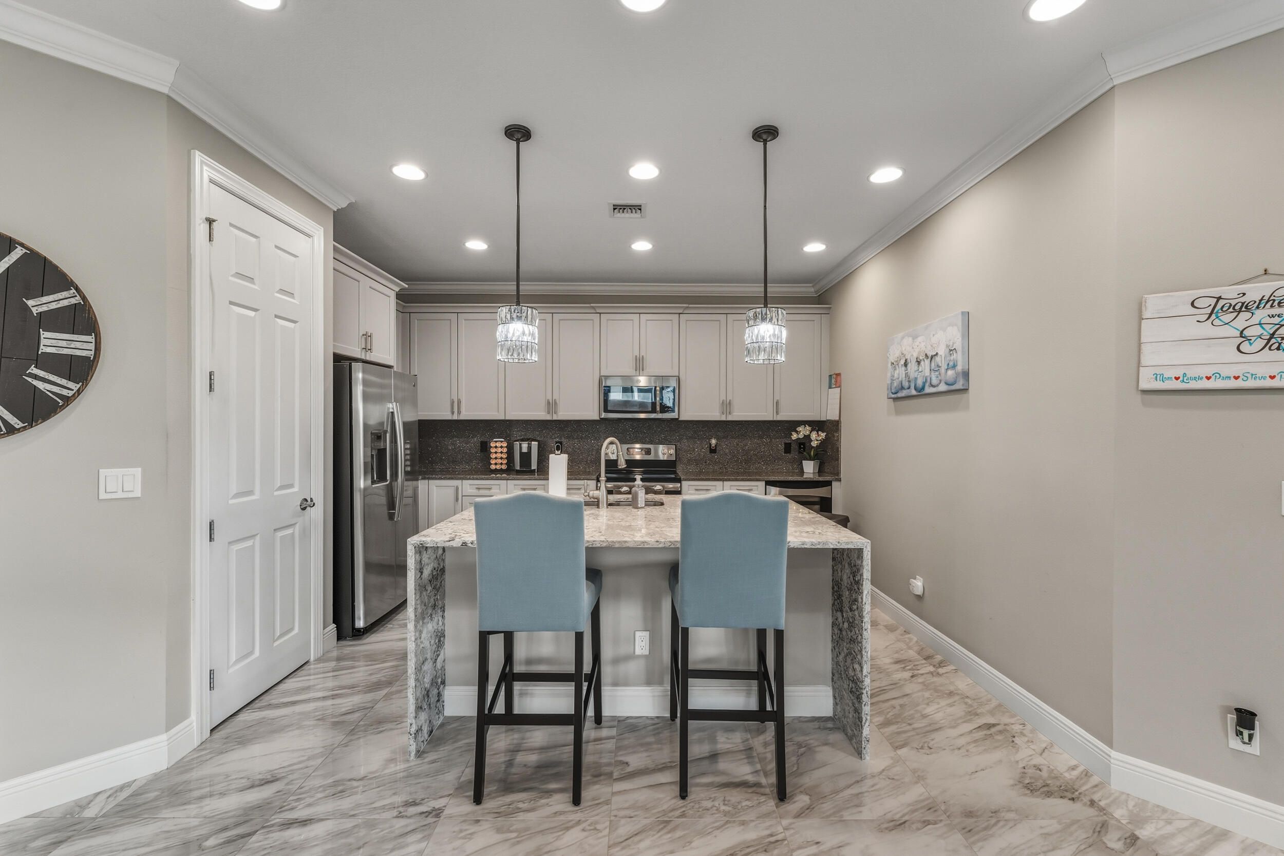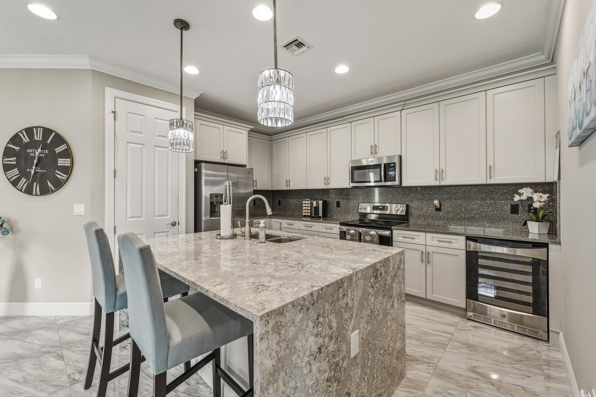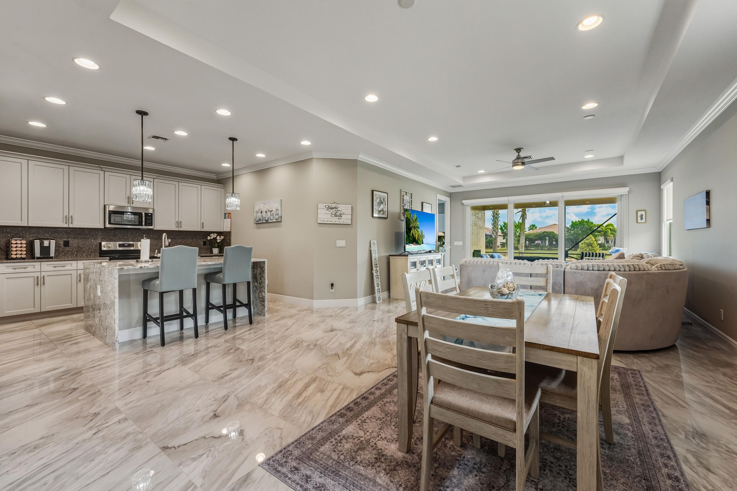 Here it is! This gorgeous completely upgraded waterfront 2 bed w/ DEN villa is stunning. The finishes are absolutely gorgeous and the extended patio is made for a morning beverage or a night cap. Some of the upgrades include the Quartz countertops with a waterfall edge and the two tone soft close cabinets are the perfect design choices. Cooking in this kitchen is really a place of happiness. The open concept floor plan has such a great feel with the primary suite situated in the back of home to overlook the water view. The primary bathroom is simply stunning with the tile details creating such a tranquil and spa moment. Impact glass throughout. The community has so much to offer including championship pickleball courts, indoor pool, resort pool, cabana seating, dog park, fitness & more!