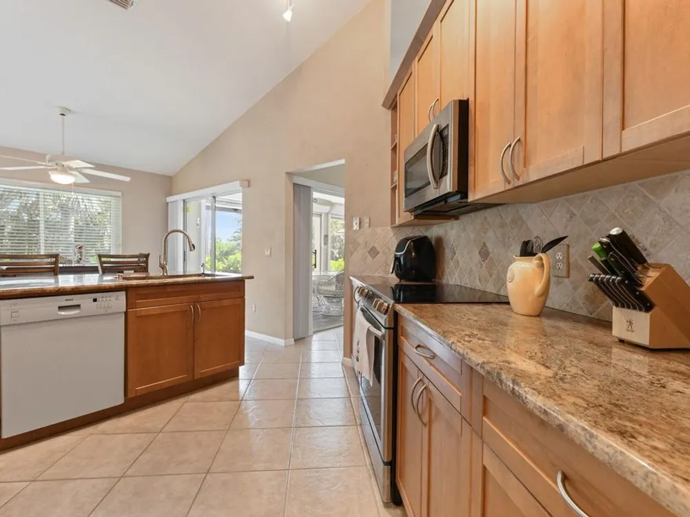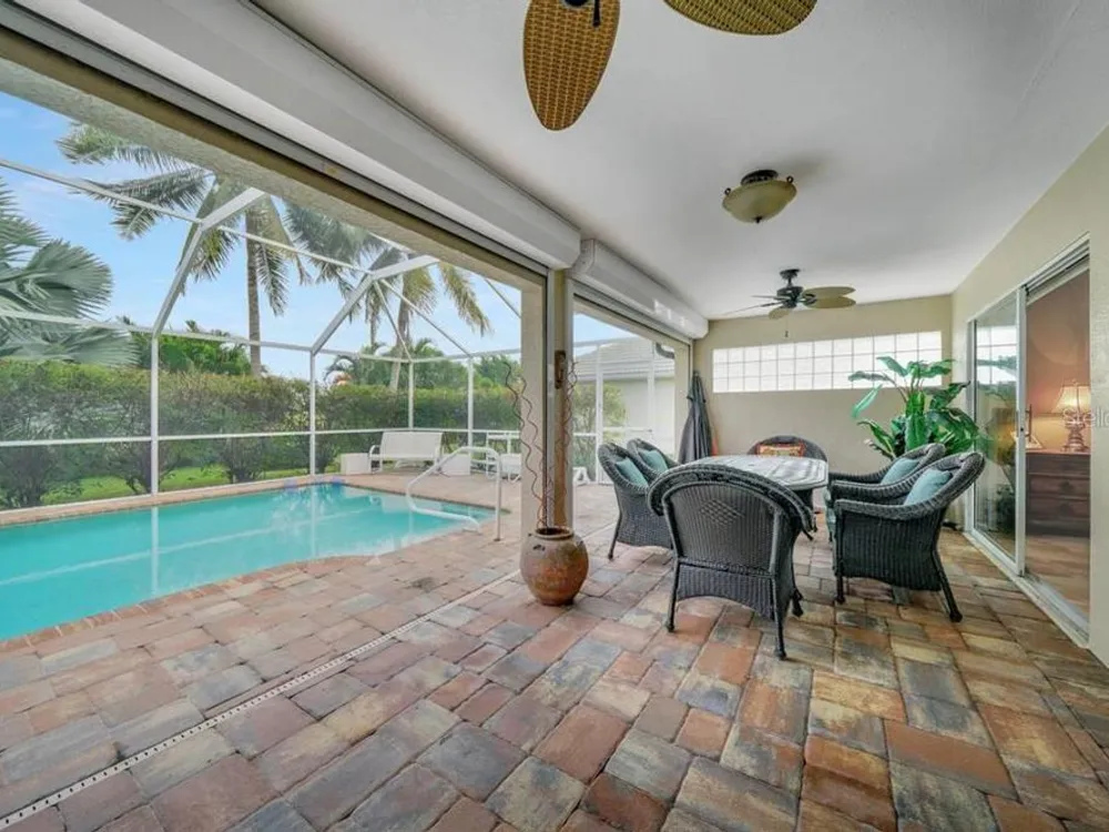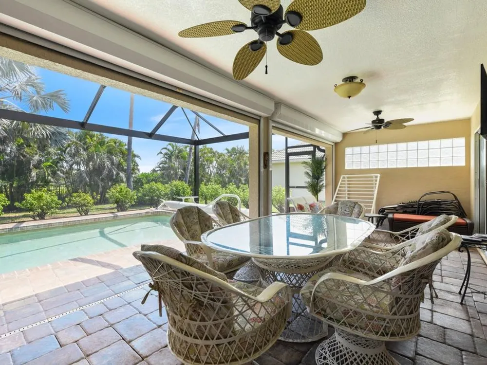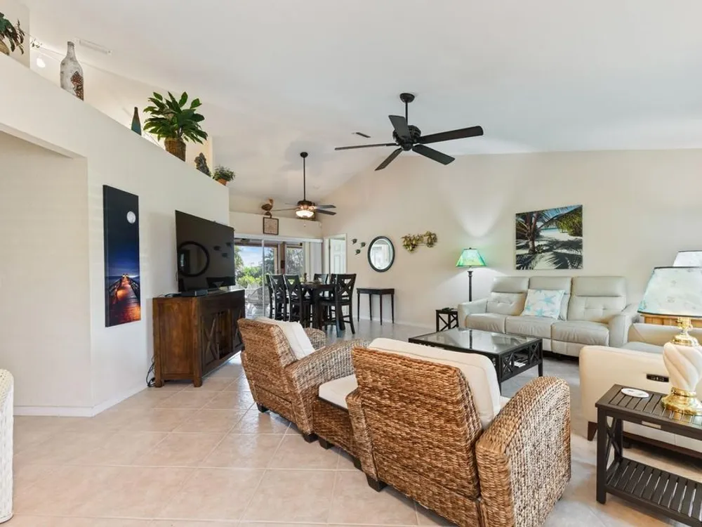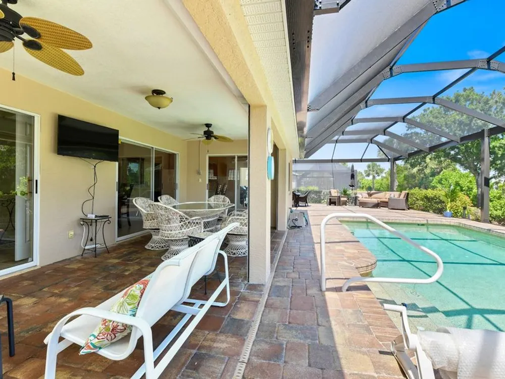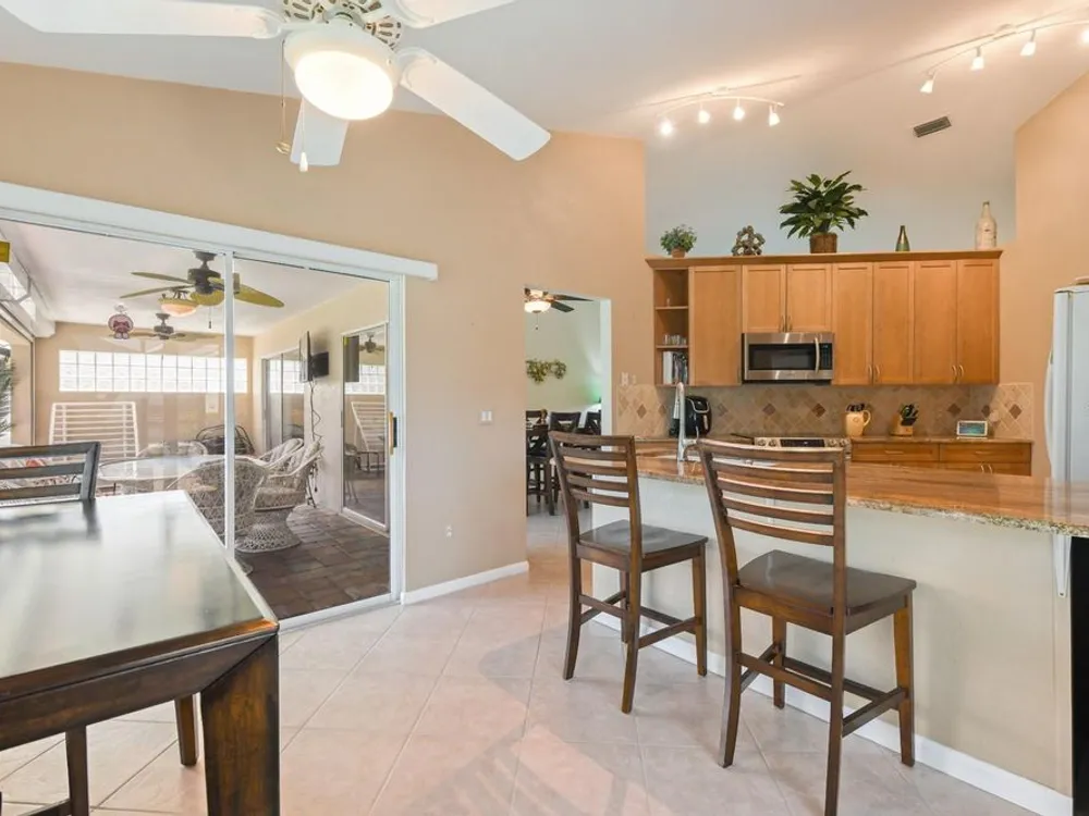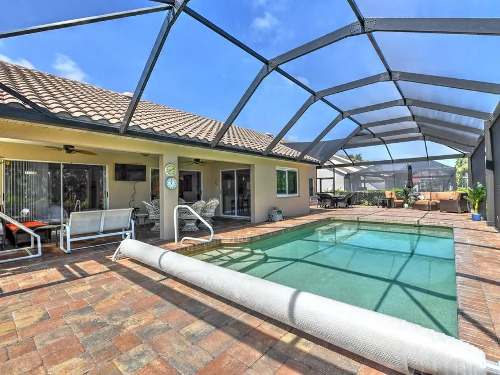 Ready to escape the cold and the crowds? This beautifully maintained, turnkey-furnished pool home in the gated, resort-style community of Burnt Store Marina offers the perfect tropical retreat where comfort, privacy, and peace of mind merge. On a quiet cul-de-sac deep within the community, this 3 bed, 2 bath pool home with 2-car garage welcomes you with lush landscaping and attractive curb appeal. Step inside to discover a bright and open layout with all-tile flooring throughout—ideal for easy maintenance and a clean, cohesive look. The split-bedroom floorplan offers maximum privacy with the primary suite on one side and guest suite on the other. At the heart of the home is an updated kitchen, featuring granite counters, 42” solid wood cabinetry, tumbled tile backsplash, and stainless appliances. The comfortable breakfast nook overlooks the tropical outdoors, while four sets of sliding glass doors flood the living space with natural light and provide easy access to the backyard oasis. Step outside where a sparkling saltwater pool, huge sun deck, picture window pool cage and deep covered lanai invite year-round outdoor living. Surrounded by lush tropical landscaping, this serene outdoor space offers the ideal setting for lounging, dining, and entertaining under the warm Florida sun. All new hurricane rated windows, slider to pool and front door offer protection year-round and when you're away, motorized hurricane shutters on the lanai protect your outdoor furnishings. Inside and out, you’ll find thoughtful touches—from attractive plantation shutters and soothing neutral paint tones to tasteful, move-in-ready furnishings. Within the waterfront community of Burnt Store Marina, you’ll enjoy access to SW Florida’s largest deepwater marina, a 27 hole of golf course, 2 onsite restaurants, active fitness center, tennis, pickleball, and miles of walking and biking paths. Whether you're looking for a full-time home, seasonal getaway, or investment property, this home offers everything you need to start living your Florida lifestyle. Come see all this community offers!