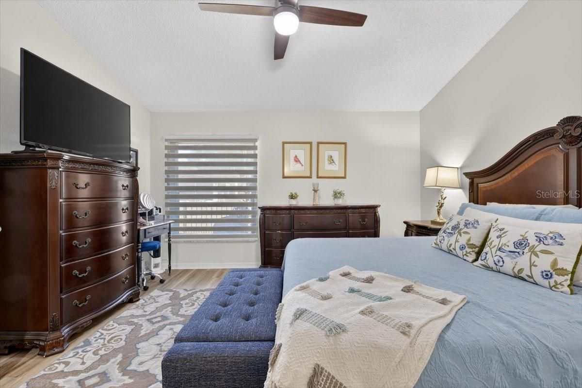- Cathedral Ceiling(s), Ceiling Fan(s), High Ceilings, Open Floorplan, Solid-Wood Cabinets, Split Bedrooms, Stone Counters, Thermostat, Walk-In Closet(s), Window Treatments
