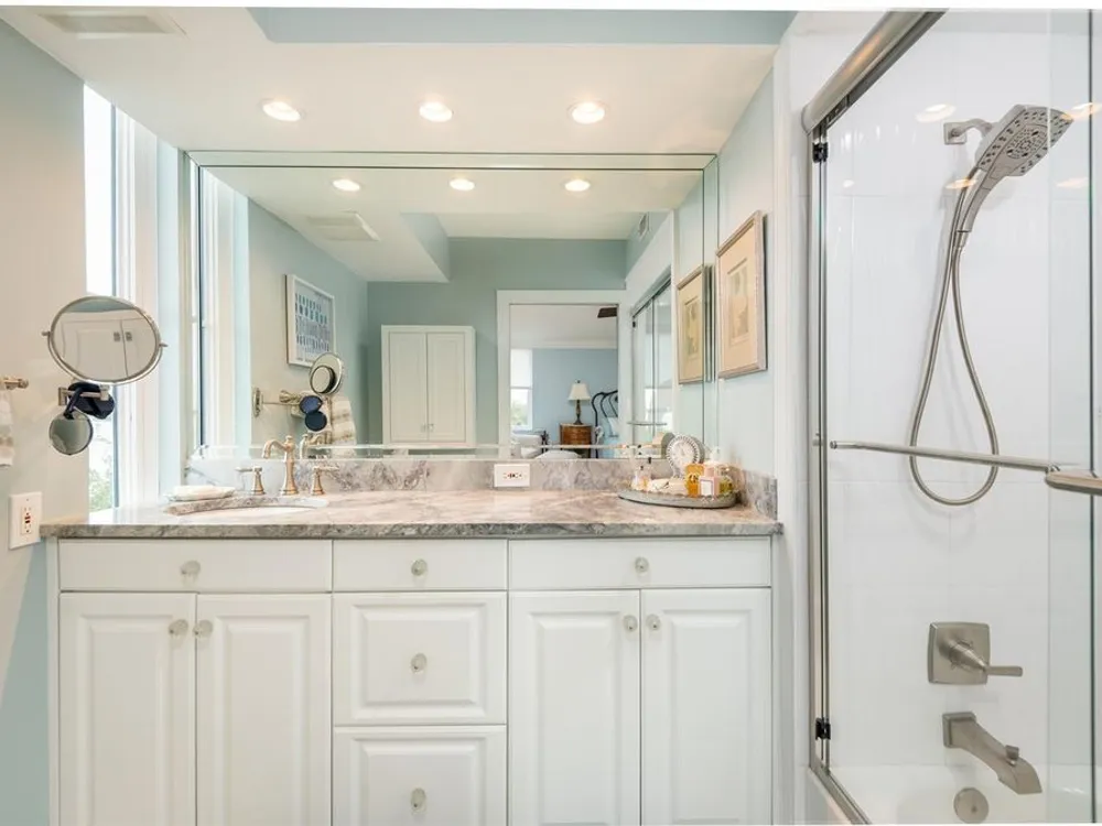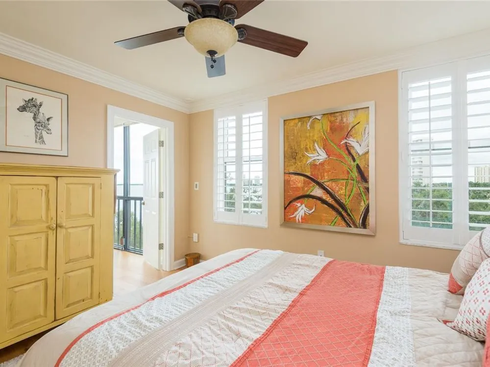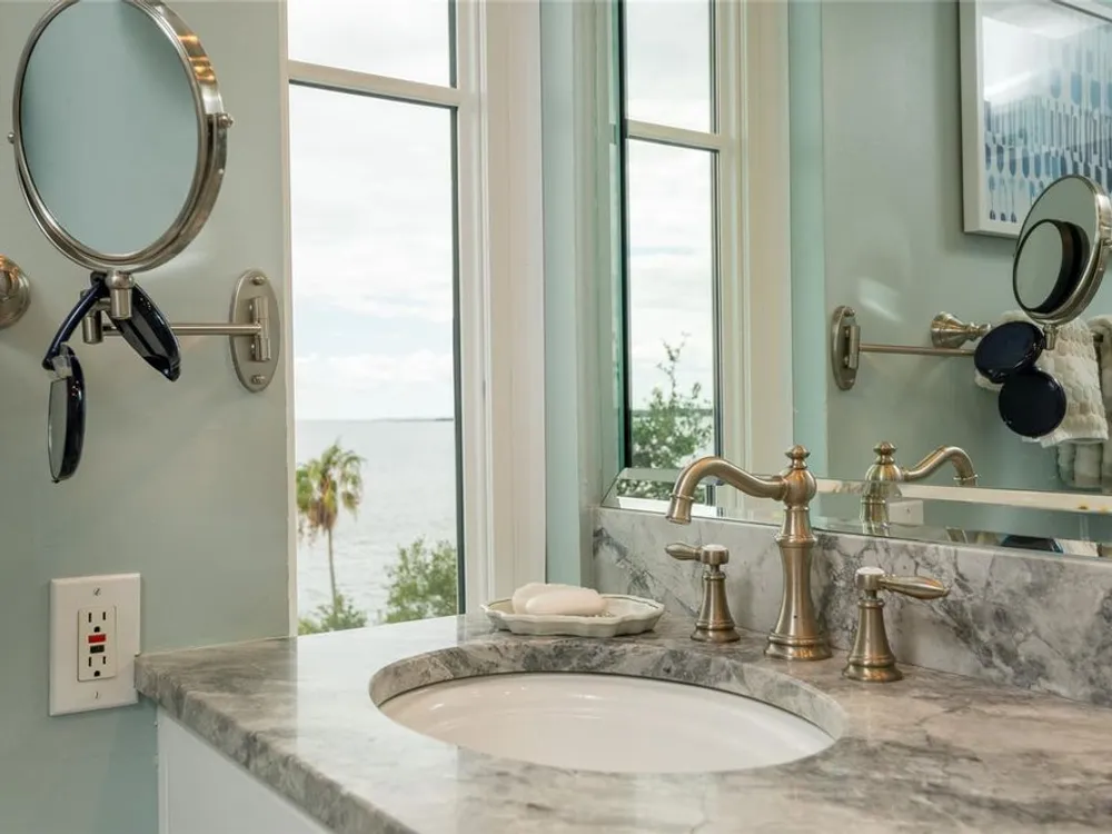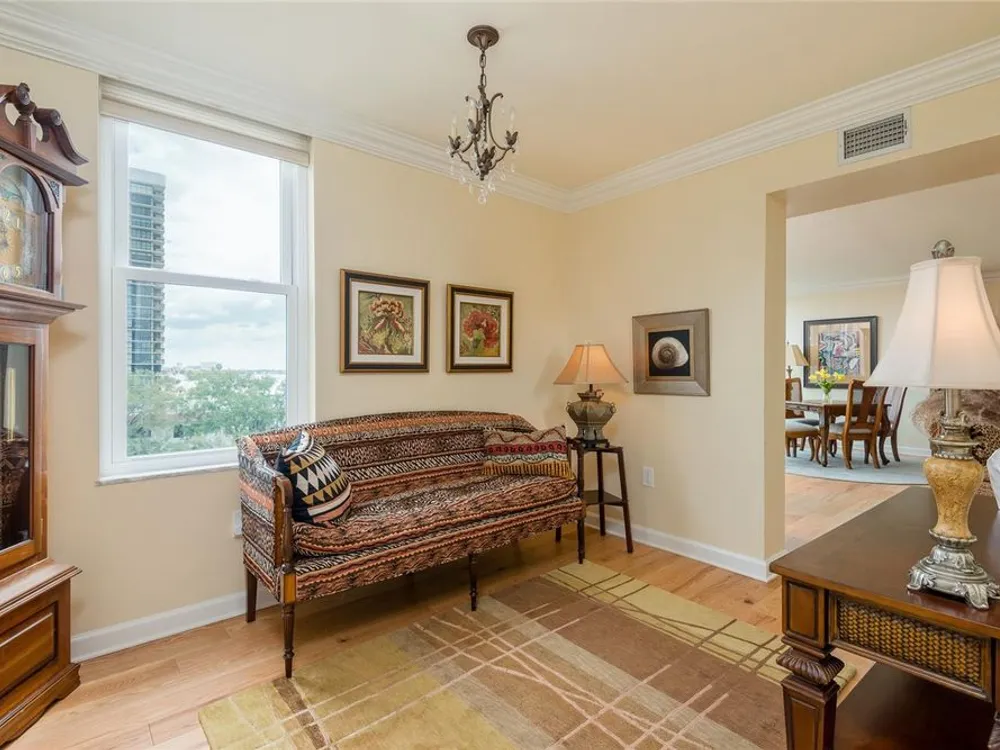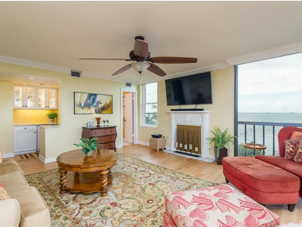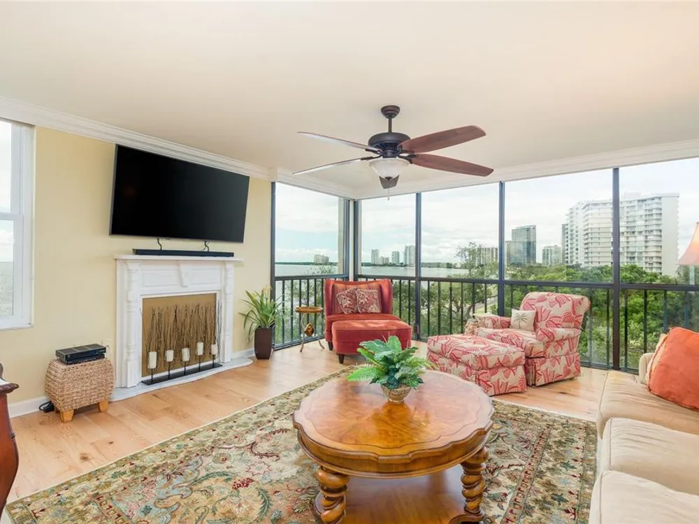Spacious and Elegant beautifully designed with panaromic views of the Bayshore – Prime Unit at Howell Park – turnkey. Freshly painted throughout, this 6th-floor condo in the sought-after 55+ Howell Park community offers unmatched views, privacy, and security. The bright living room features picture windows and a decorative fireplace. The primary suite has an en-suite bath, while the guest suite includes a sitting area, en-suite bath, walk-in closet, and bar area. The kitchen offers custom cabinetry, GE Café appliances, an eat-in space, and a walk-in pantry. Crown molding, built-ins, generous storage, and a covered parking space complete this exceptional home. Howell Park provides 24/7 gated security, a digital fire alarm system, landscaped grounds, and a pool, all in a prime location close to shopping, dining, downtown, and major roads.