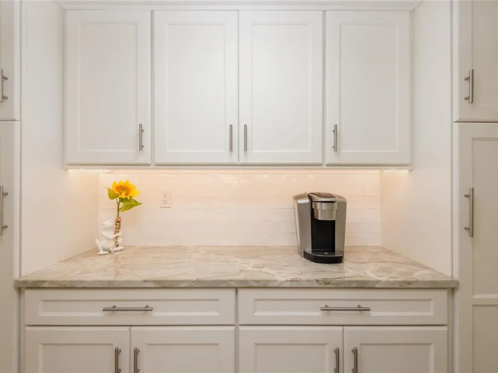 - Built-in Features, Ceiling Fan(s), Crown Molding, Eat-in Kitchen, Stone Counters, Thermostat, Window Treatments