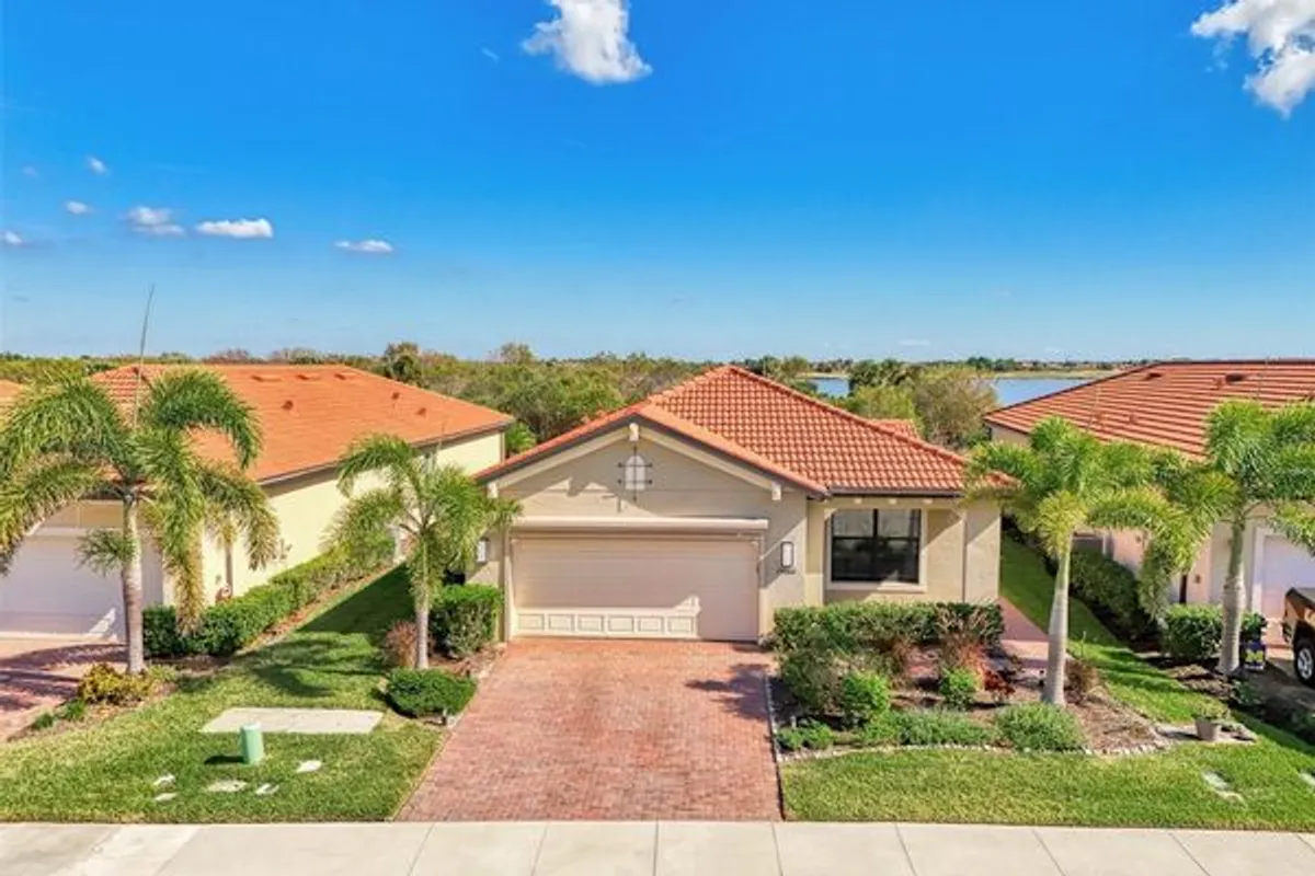 Now is your opportunity to own this beautifully upgraded pool home in the highly sought-after guard gated community of Sarasota National. Situated on a quiet street and close to both the amenities and the private owner’s gate for easy access, this popular Roma floor plan includes 2 GOLF MEMBERSHIPS with no initiation fees. Relax and unwind in your sparking heated pool and spa with a private preserve, expansive large lake, and golf course view! The lanai was upgraded with automatic Storm Smart hurricane protectors that roll down at the push of a button. As you step inside through the screened-in porch with glass entry door, you are greeted by a proper foyer with convenient storage closet. Around the corner is a spacious den/flex room with glass French doors that can transform into a space that fits your lifestyle. The main living space is open and airy and flooded with light thanks to large sliders and extra recessed lighting that was added. The builder basic kitchen was completely removed and a BRAND NEW chef’s kitchen was installed. No expense was spared in this $80,000+ renovation that includes solid KraftMaid cabinets that are stacked to the ceiling. You will enjoy wood rollouts in all the right places, large drawers in the lower cabinets for easy access, and decorative frosted glass cabinets to showcase some of your favorite pieces. A modern range hood was installed with a beautiful glass tile backsplash. Enjoy luxury built-in appliances and a large island with single-bowl sink. You will also find a separate custom built-in bar area with wine refrigerator that is conveniently located by the lanai. A large dining are that is flooded with light is a great space for gatherings. The private primary suite is large on space, with a walk-in closet, and a spa inspired bathroom with dual sink vanity, seamless glass walk-in shower, and separate water closet for privacy. The second bedroom in the front of the house overlooks a front porch, and there is a large second bathroom. The 2-car garage was upgraded with another Storm Smart automated screen that allows for air flow when working in the garage. There is an oversized laundry room with utility sink and extra cabinet storage that was added. Other upgrades include designer fans, light fixtures, crown moldings, and window blinds. Sarasota National is a maintenance free community managed by the coveted management team of Troon Prive. The HOA includes irrigation, mowing, trimming, edging, fertilization, re-mulching, cable, guard gate, resort style amenities, championship golf course, and so much more! Live like you are on a 5-star vacation with a 30,000sf clubhouse with resort pool, hot tub, outdoor tiki bar serving food and drinks daily, coffee house, 2 restaurant options, 7,000sf fitness center with top-of-the-line equipment and classes, day spa, card room, bocce ball, pickle ball, tennis, dog park, playground, and event lawn! Sarasota National is a coveted 2400-acre International Audubon Bird Sanctuary that offers some of the most beautiful water and preserve views in all of Venice. This home is minutes from the new and exciting town center of Wellen Park and the Atlanta Brave's spring training camp at the CoolToday Park Stadium. Explore 3 local beaches and historic downtown Venice, all less than 15 minutes from your front door! If you have dreamed of owning a piece of Florida's paradise, look no further than Sarasota National... one of Venice's premiere golf communities!