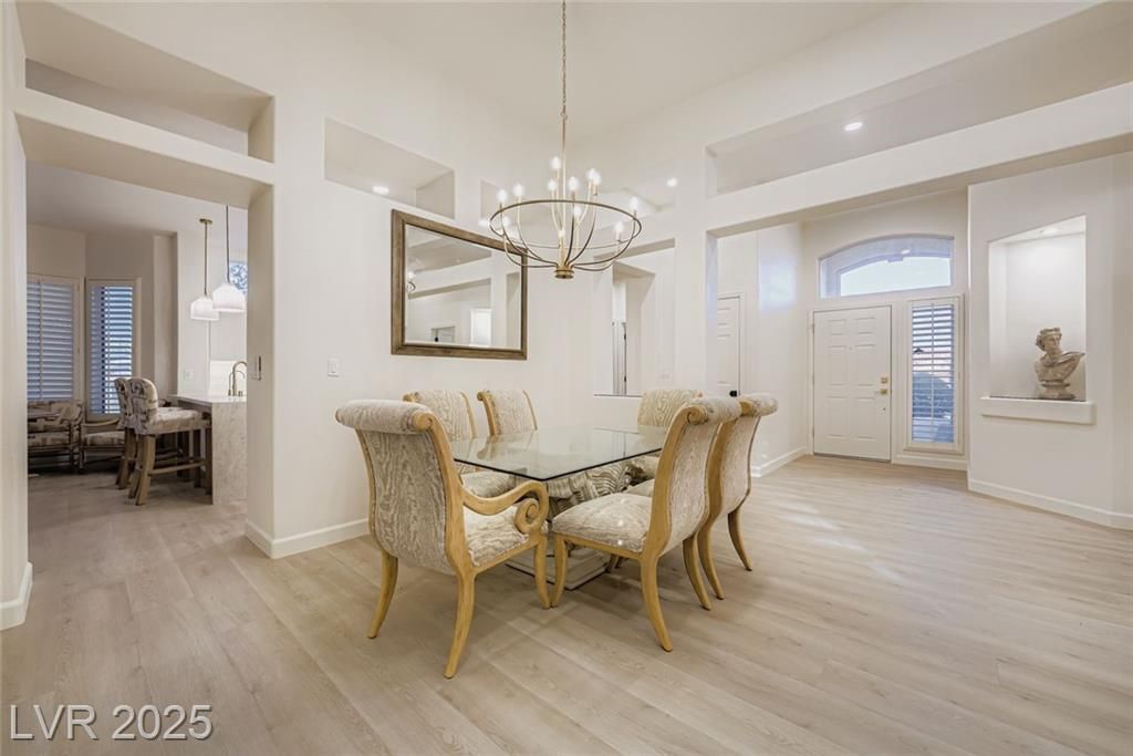 No expense was spared in this fully remodeled single-story home, set on an oversized corner lot in a tranquil cul-de-sac in the desirable Sun City Summerlin. Step inside & experience luxurious modern elegance at every turn. The chef’s kitchen impresses w/ custom two-tone cabinetry, quartz waterfall countertops, brand-new premium appliances, & a sleek backsplash. Upgraded flooring & custom lighting flow throughout the home create a seamless, elevated atmosphere. The bathrooms feature custom cabinetry, quartz countertops, upgraded lighting & designer mirrors that match the kitchen for a cohesive, high-end look. The large primary bedroom offers his-and-her closets. The spacious, private backyard is perfect for entertaining, complete w/ a covered patio, built-in BBQ, & mountain views. Other major updates include plumbing, electrical, a new AC in 2024, and a water heater. With over $150,000 in upgrades, this turnkey home offers the perfect opportunity to retire in comfort & style.