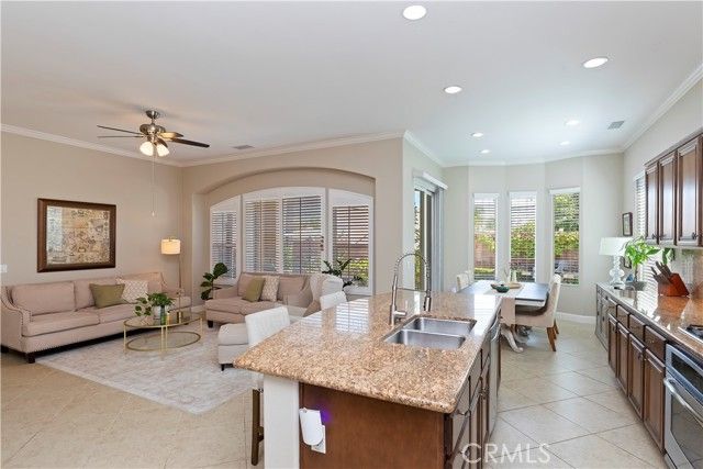 Amazing Trilogy home in pristine condition. Homes like this rarely come on the maket, original owners immaculate care and an absolutely perfect location just a short walk to clubhouse, pool, spa, tennis and golf. The most sought-after model, "LAGUNA", Located in Mojeska Canyon, 1888 Sq/Ft, very open floor plan with volume ceilings and numerous windows bringing in an abundance of natural light. There are 2 bedrooms plus a gorgeous office with built in desk and cabinetry, 2 baths, large master suite with access to rear yard, and walk-in closet with custom built-ins. The island kitchen is a great gathering place, granite counters, stained maple cabinets, under cabinet accent lighting, all stainless-steel appliances, built-in desk,and breakfast nook. The kitchen flow into the spacious family room, with fireplace and ceiling fan. Additional upgrades include 20"tile throughout, mirrored wardrobe closet doors, plantation shutters, beautiful glass/wood front door, mirrored closet doors, and crown molding. Rear yard is a nice place to unwind with a stucco patio cover and mountain views. Trilogy at Glen Ivy has its own Ted Robinson design 18-hole golf course, complete gym, exercise rooms, indoor, outdoor pools, BBQ's, walking/jogging tracks, bocce ball, billards,BBQ's, cabana's, amphitheater, lighted tennis courts, restaurant and club house. Close to Shopping, Tom Farms, World famous Glen Ivy Hot Springs and Orange County. Trilogy is a 55+ Active Adult Gated Community which prides itself on Resort Style Living!!! Truely an Amazing Home!!!