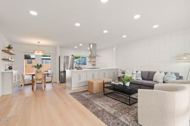 Revival on The Green welcomes you home with warmth, style, and seamless modern living. This fully remodeled 3-bed, 2-bath residence (plus a versatile bonus room) blends clean design with thoughtful functionality at every turn. Wide-plank light oak LVP floors, new entry door, dual-glazed windows and refinished ceilings, ground the home in cohesive quality, while the new mini-split HVAC system--complete with air conditioning--ensures year-round comfort.A beautifully reimagined kitchen showcases custom soft-closing shaker cabinetry, all-new appliances, floating shelves, and an expanded entertainer's island that naturally draws people together. Both bathrooms are entirely transformed with curated tilework, chic finishes, and elevated style.French doors open to a sun-filled private patio framed by drought-tolerant landscaping and a fluted wood screen that artfully conceals the garage entry--an unexpected design moment that makes everyday living feel elevated. The bonus room offers endless potential for crafts, storage, an office, or even pantry expansion.Located in the vibrant 55+ community of Hueneme Bay, residents enjoy a low-maintenance coastal lifestyle with a clubhouse, pool, spa, and golf course, plus easy access to dining, shopping, and Hueneme's charming pier and promenade. This is easy, turn-key living--with all the warmth of a home that simply feels good.