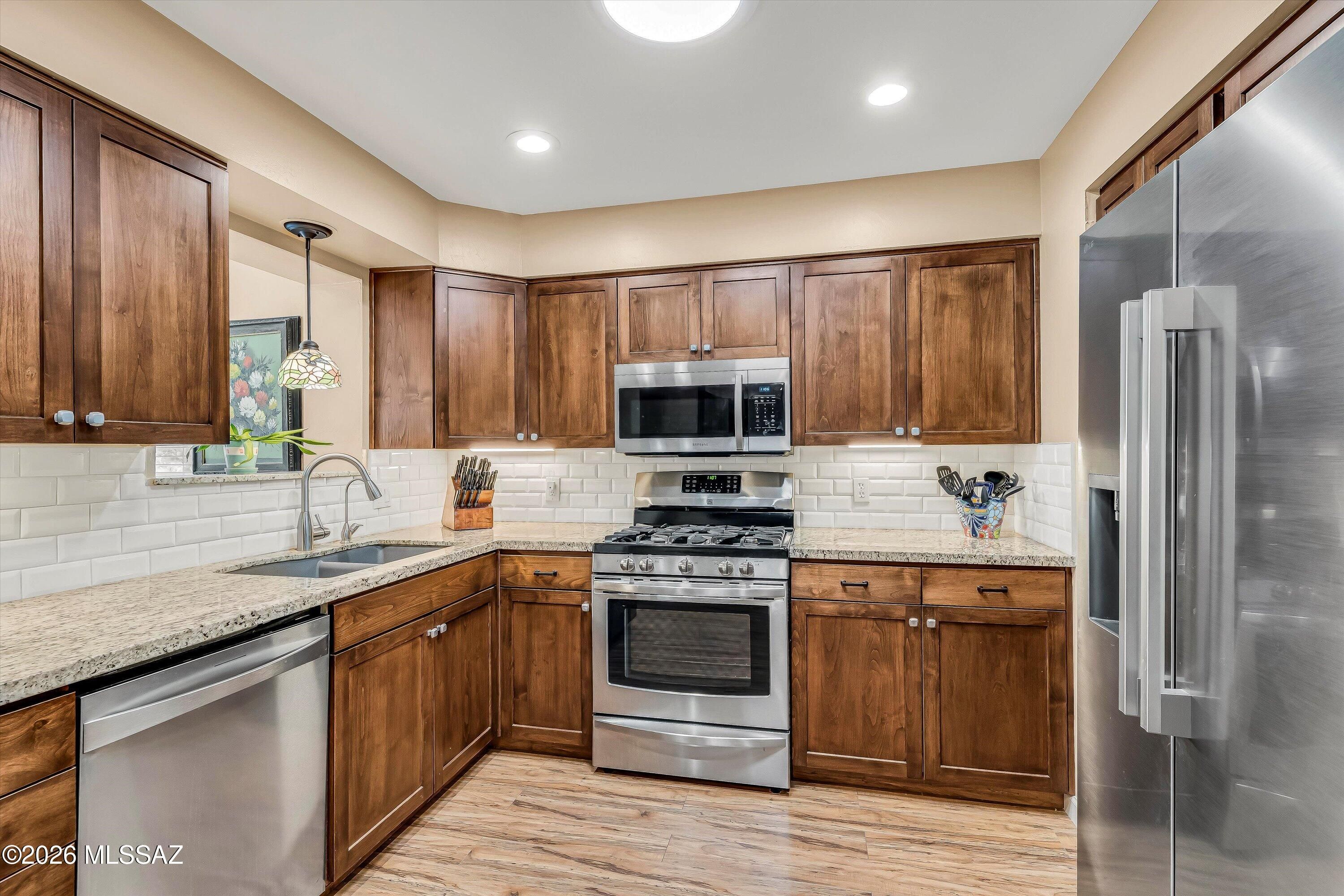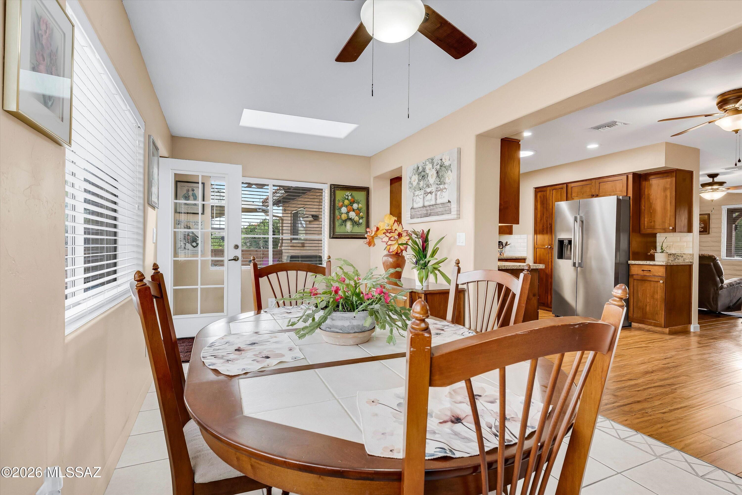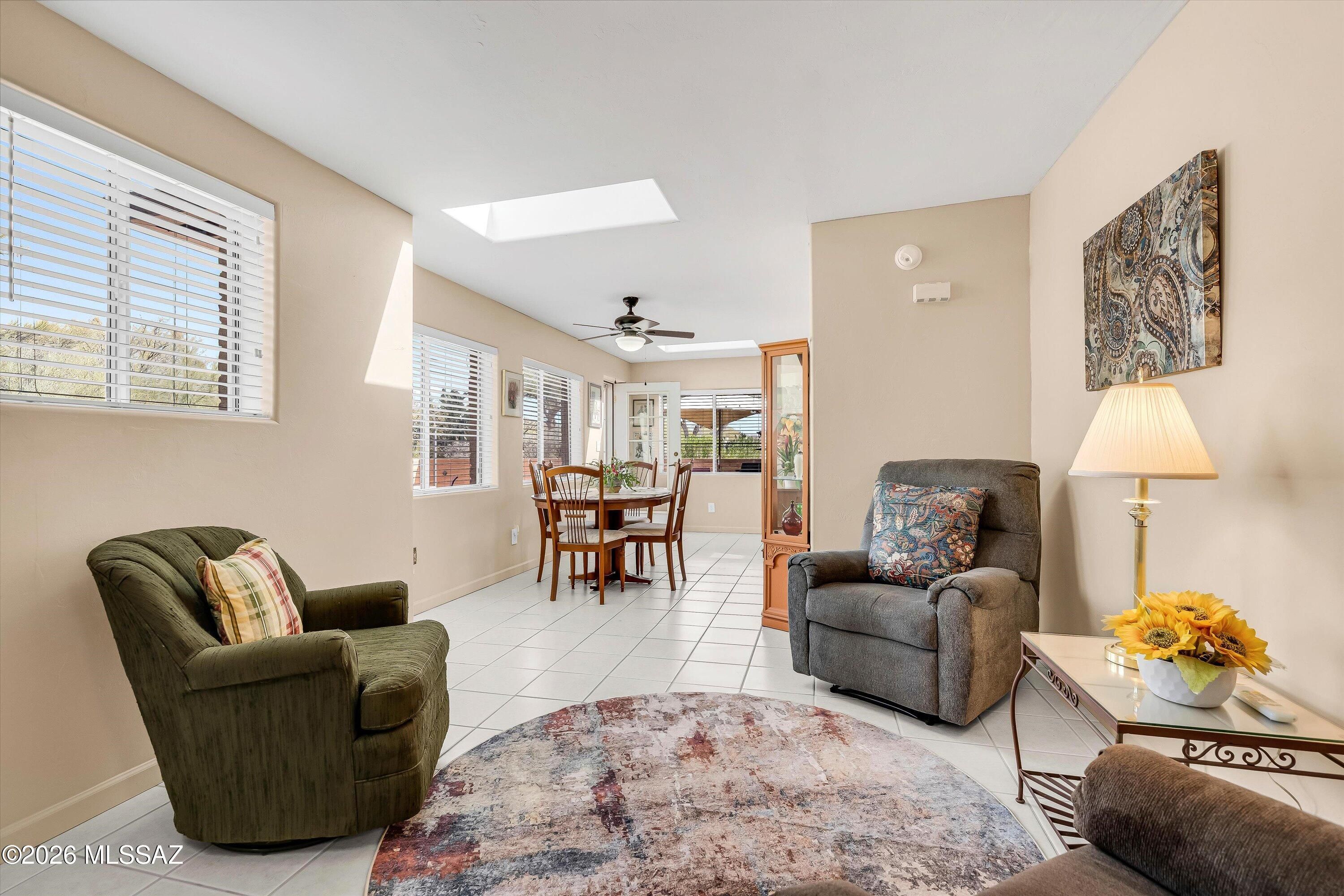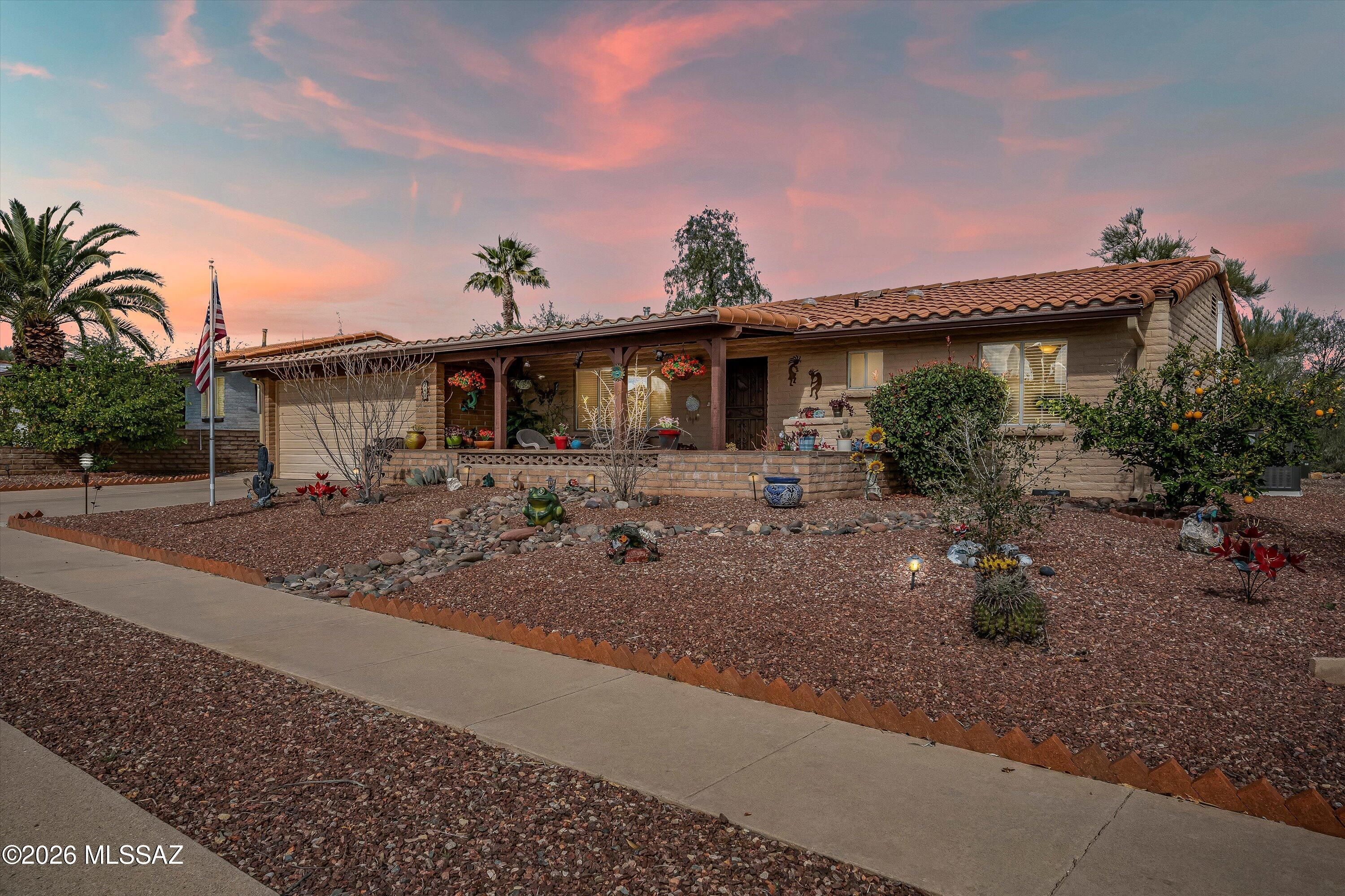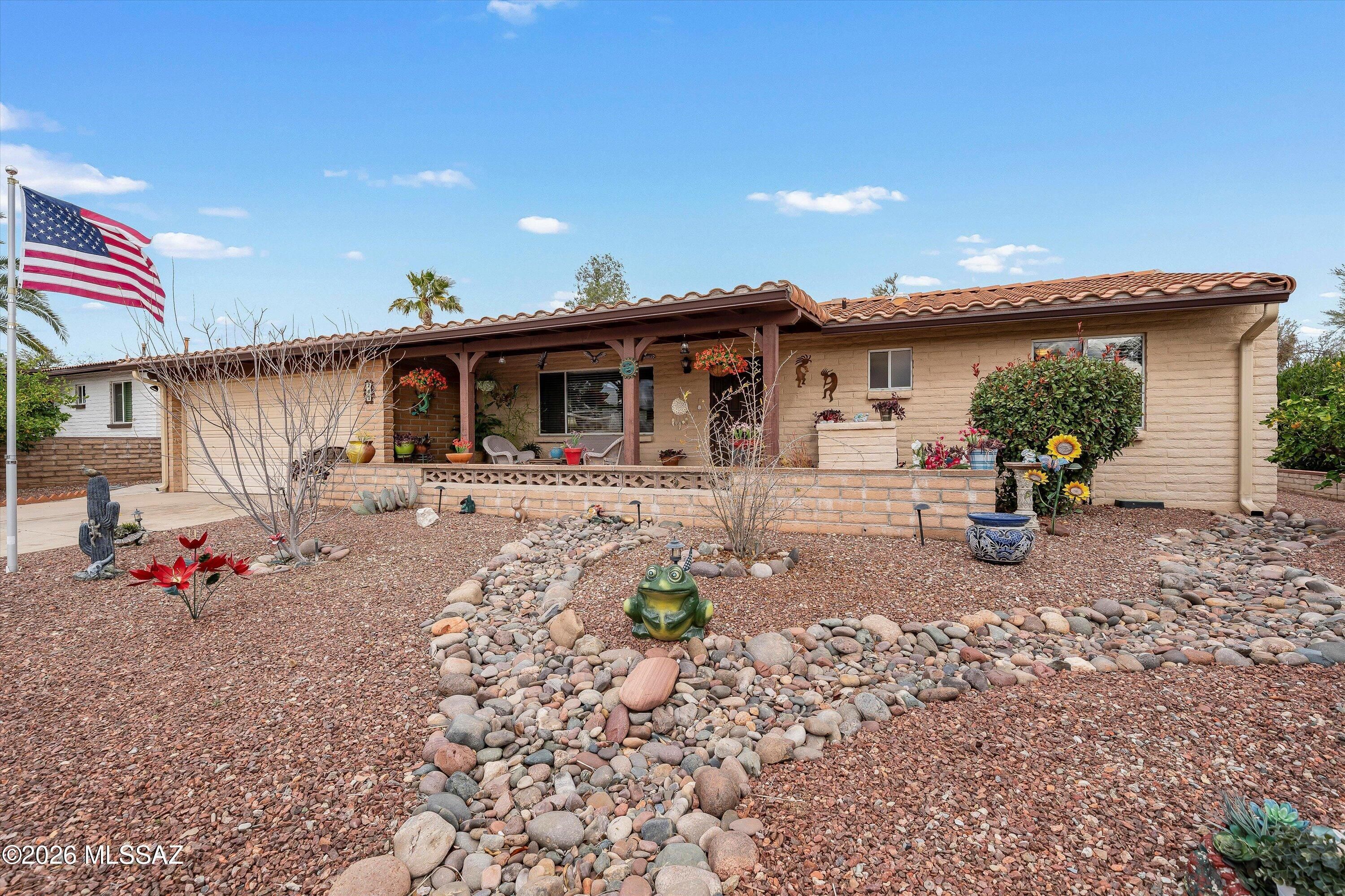 NO GVR(but avail), FULLY FURNISHED, Heated and cooled Arizona room not included in square footage - OVERSIZED GARAGE, NEWER HVAC!Nestled in the charming, character-filled Desert Meadows Neighborhood of Green Valley, this beautifully maintained, brick, single-story home offers comfort, flexibility, and an inviting sense of community. There is no requirement to join Green Valley Recreation, though membership is available on a voluntary basis for those who wish to enjoy additional amenities--an appealing and relatively rare option in the area.From the covered front porch, enjoy peaceful mountain views and the simple pleasure of morning coffee or evening relaxation while connecting with friendly neighbors. Just steps away, Desert Meadows Park enhances everyday living with