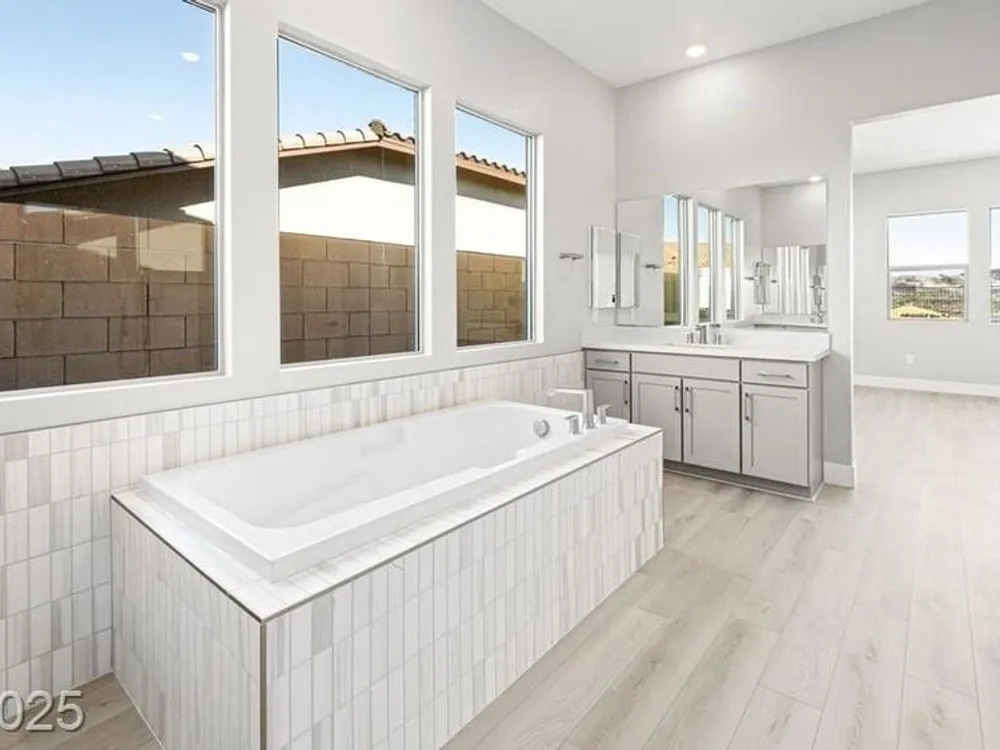 New Construction –Ready Now! Built by America's Most Trusted Homebuilder. Welcome to the Allium at 241 Paraggi Bay Drive in Verona at Lake Las Vegas. This open and bright floor plan offers 4 bedrooms, 3 baths, and a private guest suite with its own ensuite bath at the back of the home. Start your mornings on the front porch, then step inside to the foyer that flows seamlessly into the great room, dining area, chef-inspired kitchen, and covered outdoor living space. Off to the side, you’ll find three bedrooms, two bathrooms, a versatile flex space, and a laundry room with sink and built-in cabinetry. The stunning primary suite includes a spa-like bath and spacious walk-in closet. Additional Highlights Include: guest suite with extended patio and 12' sliding glass door, 15' stacking sliding glass at great room, electric fireplace, finished garage, barn door at primary, walk in shower at primary bath, and powder room. Virtually staged photos are for representative purposes only.