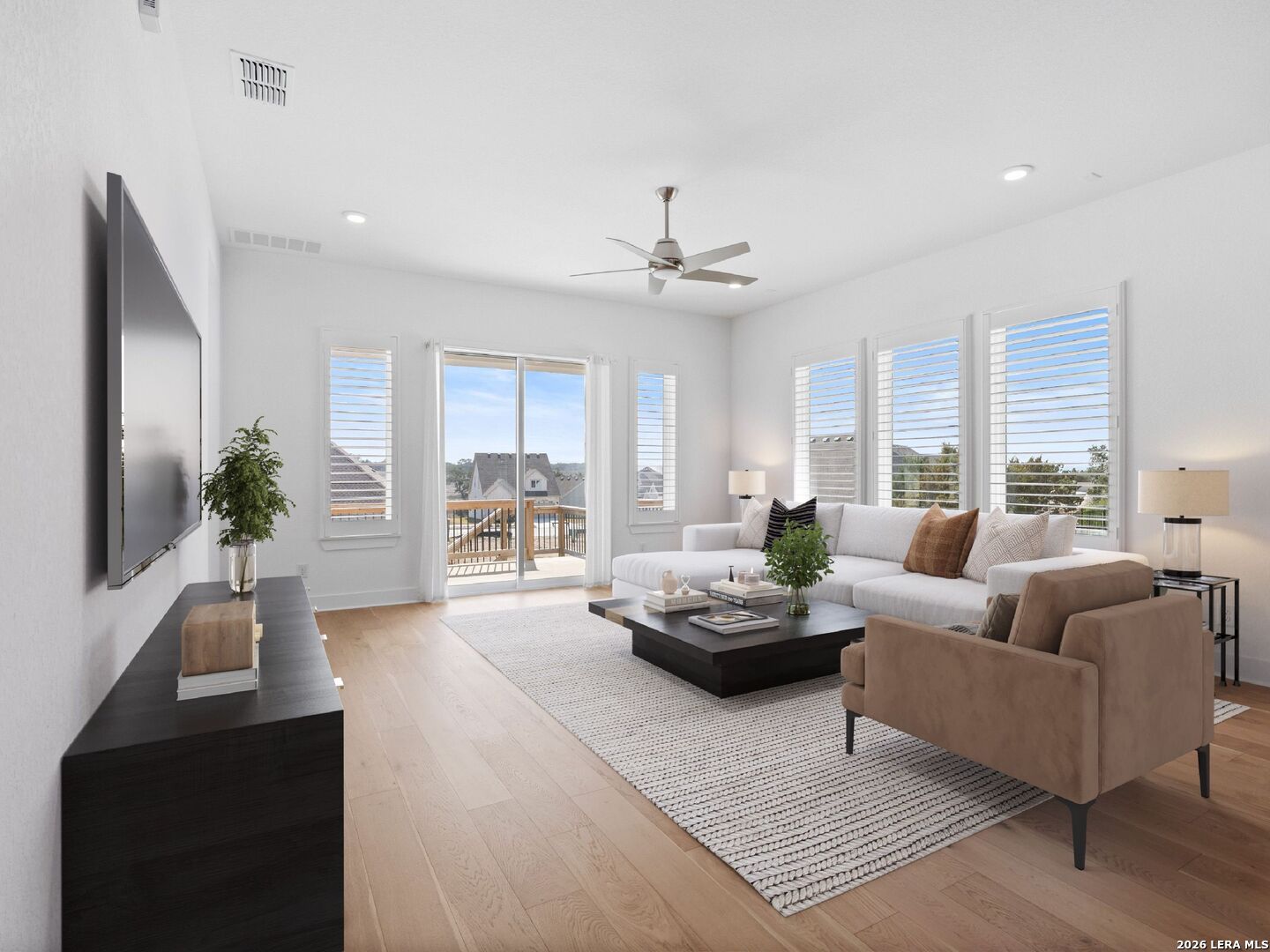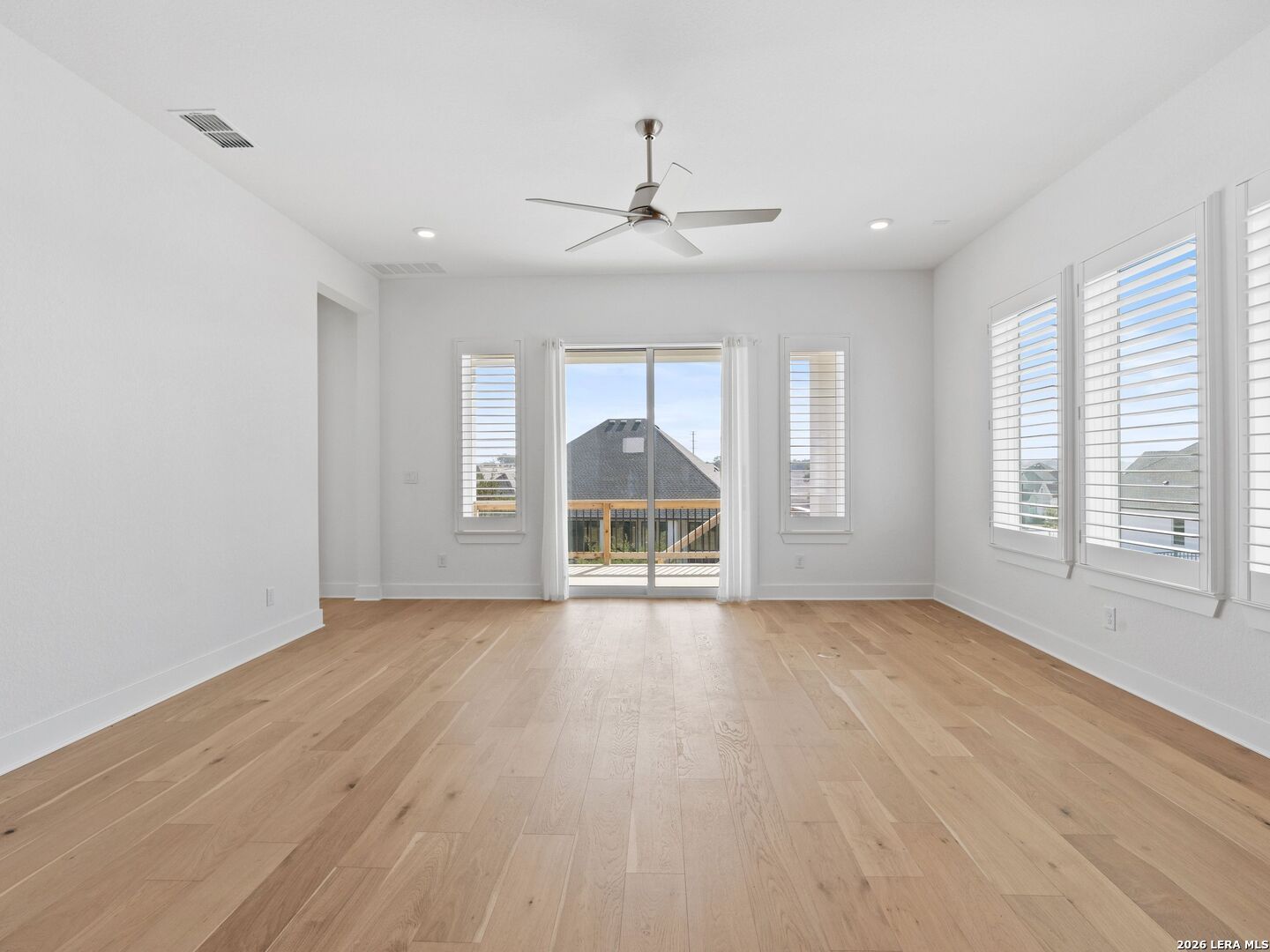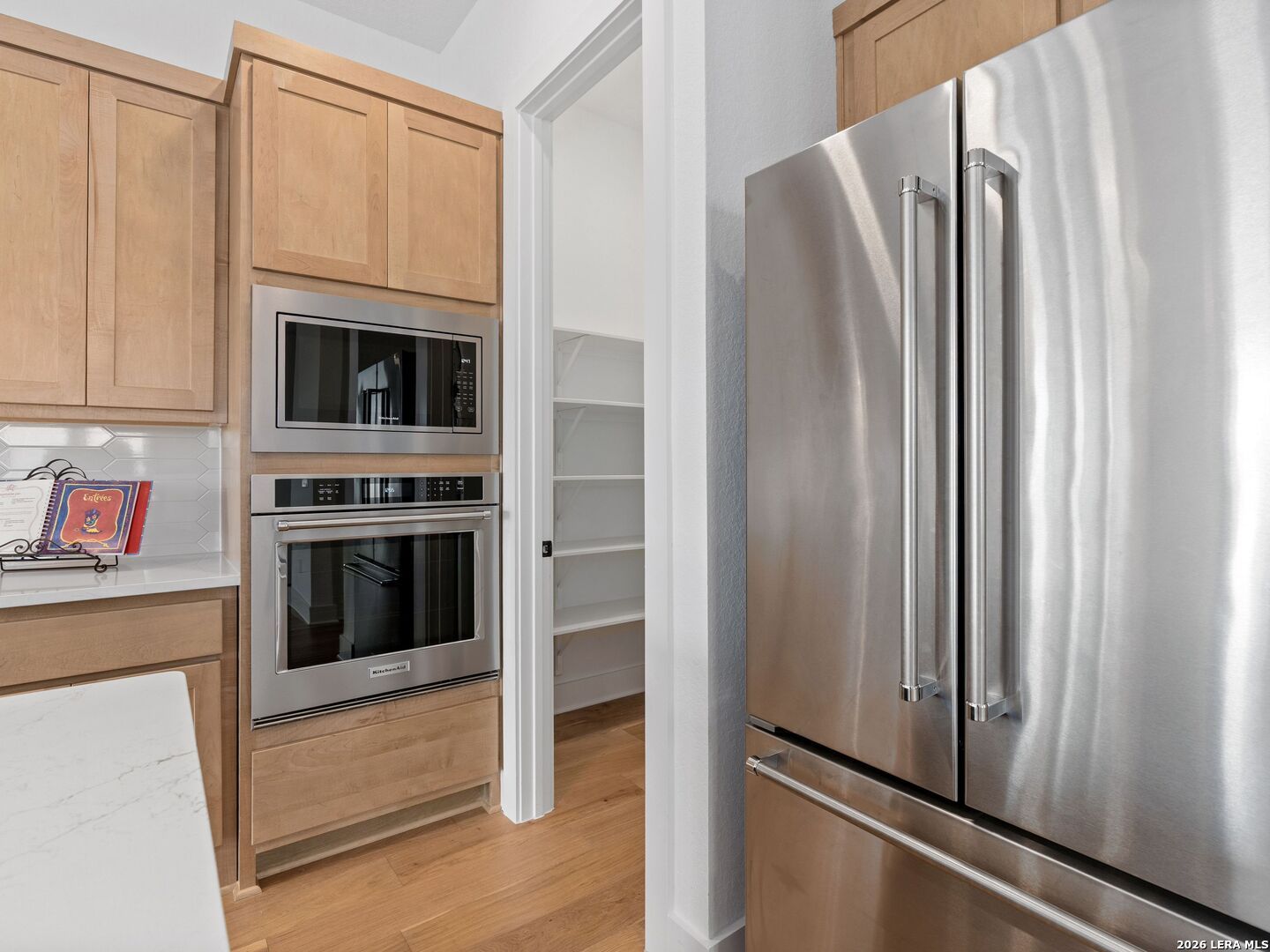 Enjoy a private club house, entertainment rooms, fitness center, pools, pickle ball and bocce courts! This Hill Country haven offers the ultimate blend of comfort and serenity. This Toll Bros one-story home in the Regency section (Active Adults 55+) embodies modern luxury while harmonizing with its natural surroundings. Open floor plan with plenty of natural light, gourmet kitchen with quartz counter tops and ample storage space. Upgraded engineered hardwood and tile flooring flow throughout! The Esperanza community also has a lazy river, fitness center, walking and biking trails, sand volleyball, multiple pools, dog park, live music area, food truck court. Quick 5 minutes to Center of Boerne.