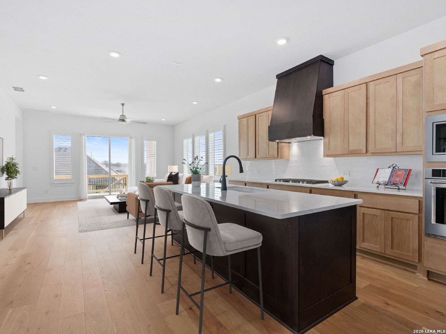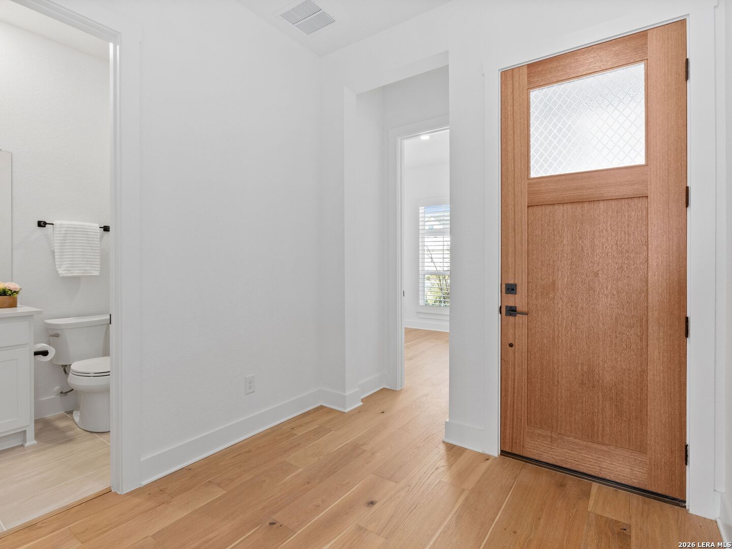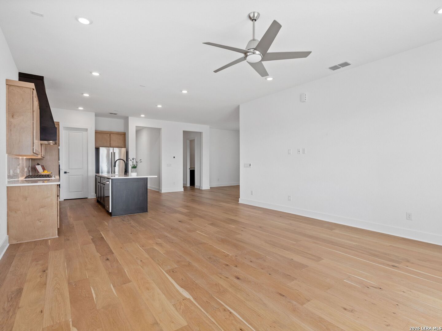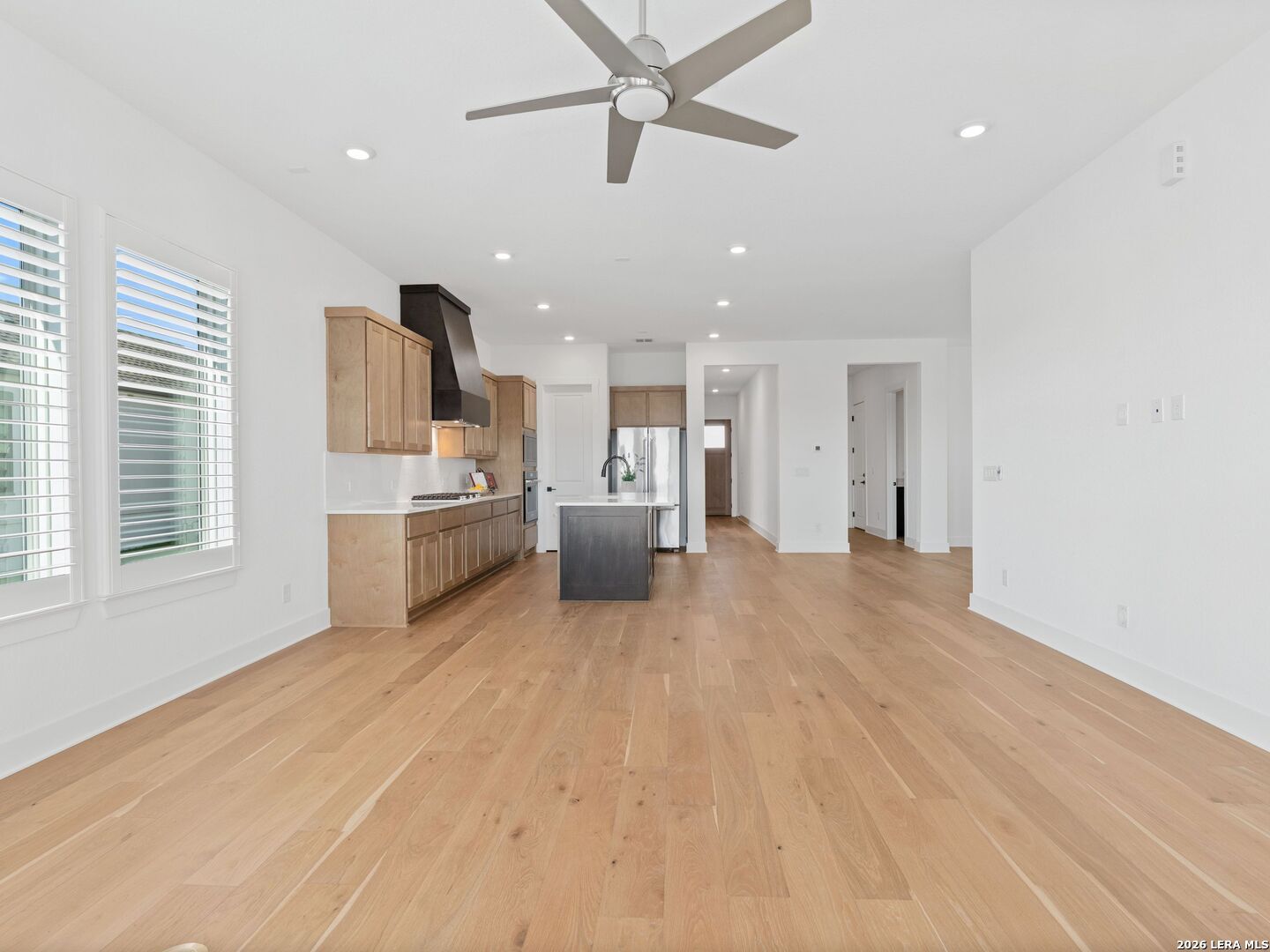 Enjoy a private club house, entertainment rooms, fitness center, pools, pickle ball and bocce courts! This Hill Country haven offers the ultimate blend of comfort and serenity. This Toll Bros one-story home in the Regency section (Active Adults 55+) embodies modern luxury while harmonizing with its natural surroundings. Open floor plan with plenty of natural light, gourmet kitchen with quartz counter tops and ample storage space. Upgraded engineered hardwood and tile flooring flow throughout! The Esperanza community also has a lazy river, fitness center, walking and biking trails, sand volleyball, multiple pools, dog park, live music area, food truck court. Quick 5 minutes to Center of Boerne.