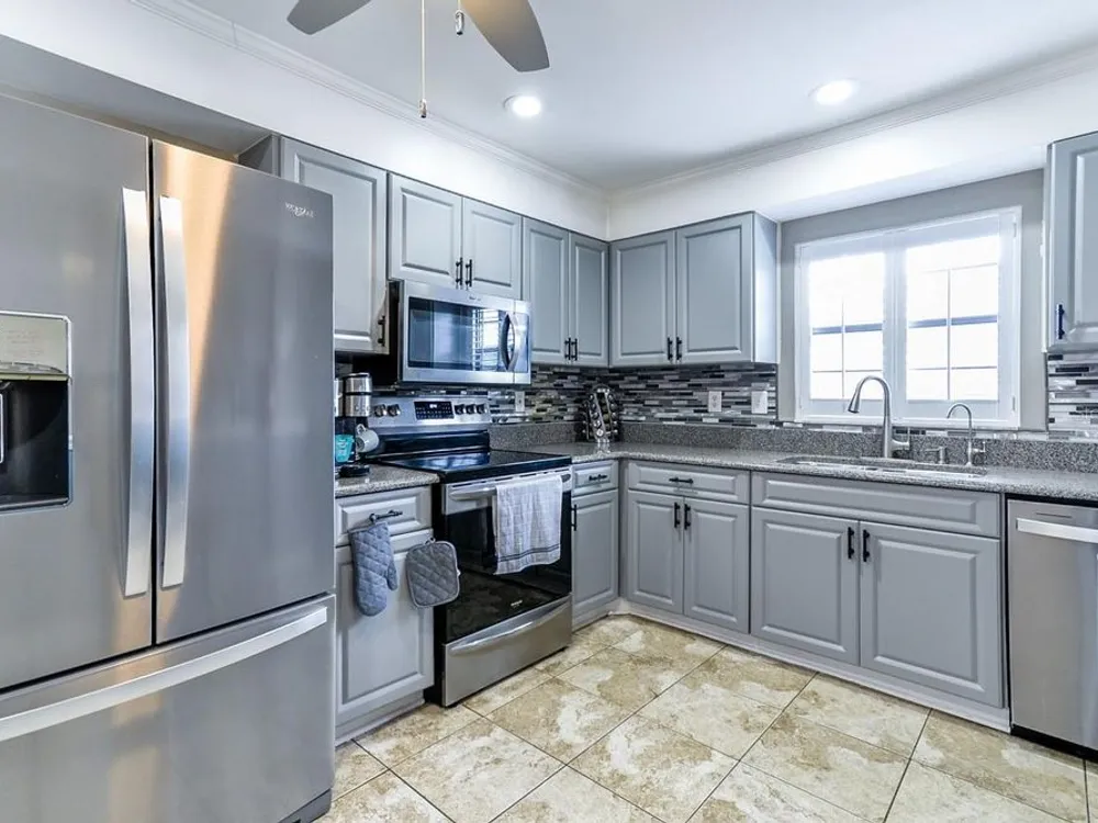 - Chair Rail, Living/Dining Room, Solid Surface Counters, Split Bedrooms, Thermostat, Walk-In Closet(s)