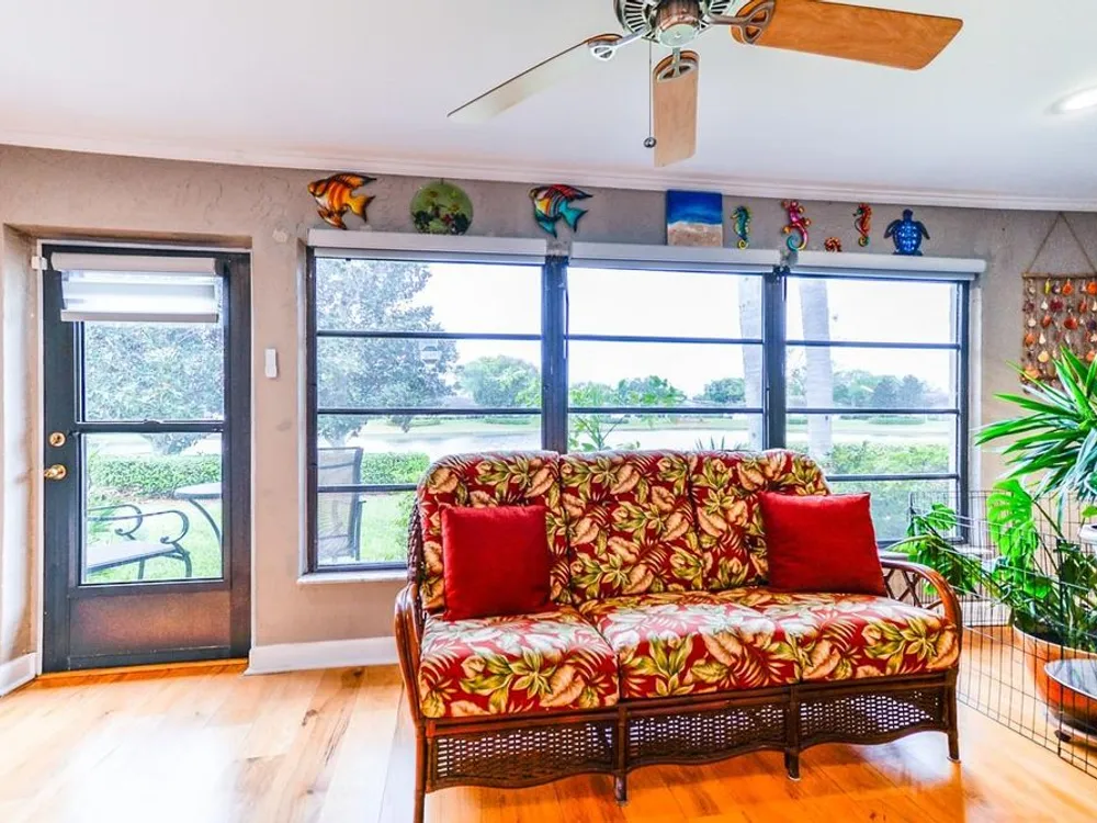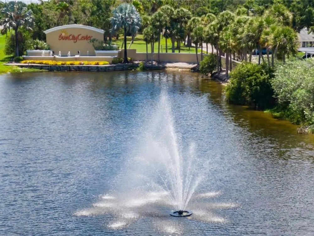 This home has a brand new roof 2025. MOVE IN READY! Embrace sunny mornings and stunning sunsets from the comfort of this condominium, featuring mesmerizing water views. Welcome Home to Gated Kings Point! Maintenance-free living in Sun City Center includes all Community Amenities. This home is in the beautifully landscaped area of Lancaster Association. A 2-car epoxy floor garage with a screened front door, 2-bedroom, 2 bath home features a Florida room (motorized sun shades) and split bedroom floor plan. ***Complete repipe 2023, A/C 2023, Water Softener, Water Heater 2023, Dishwasher 2023, and Kitchen cabinets resurfaced 2024. This is Florida living at its best! The bright and cheery Great Room with wood flooring and perfect. The open floor plan boasts ceilings adorned with custom moldings and arched openings, creating an elegant ambiance. The kitchen is designed for efficiency, offering over-sized cabinets, new appliances, and a pantry for all your culinary needs. The granite sink and countertop feature a raised second level, perfect for setting up a buffet or accommodating bar stools for casual dining. Privacy for guests is ensured with the thoughtful split bedroom layout. Ample storage space is available in the two-car garage, equipped with surrounding cabinets for your organizational convenience. Outside yard maintenance is included, and a KPW Home Warranty is available, granting you more time to fully immerse yourself in the luxurious Kings Point Resort lifestyle, which offers an array of unbelievable amenities! Experience the best of waterfront living and resort-style indulgence in this captivating condominium. Don't miss out on the opportunity to make this dreamy retreat yours.***The condo fee includes water, sewer, cable tv, internet, pest control, exterior paint, exterior maintenance, lawncare, reserves for roof and outside painting, condo insurance exterior. Electric separate. **There is a transfer fee of $150 to Kings Point Federation and also $100 to Lancaster Condo Association to be made 10 days prior to close with association application. All real estate agents must provide a copy of their RE license at the gate.