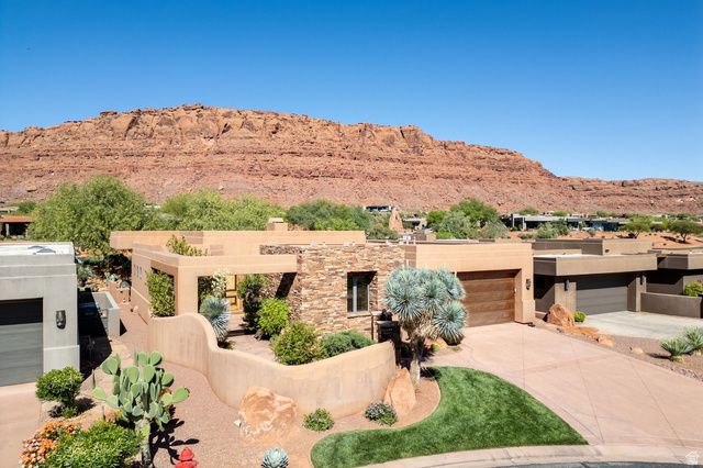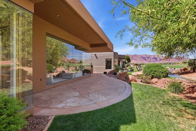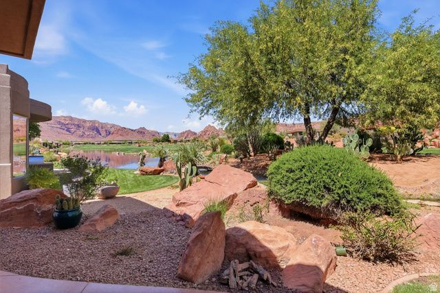 Set within the sought-after community ofEntrada at Snow Canyon Country Club, this home offers a rare position backing directly to the 7th tee box with unobstructed views stretching across the course and into Snow Canyon. The layout features 3 bedrooms and 3 bathrooms, designed for comfortable everyday living or easy hosting. Large windows bring in natural light and frame the surrounding landscape, creating a strong connection to the outdoors from nearly every space. Enjoy elevated desert living with striking lava rock, red mountain backdrops, and one of Southern Utah's most iconic golf courses right out your backyard.