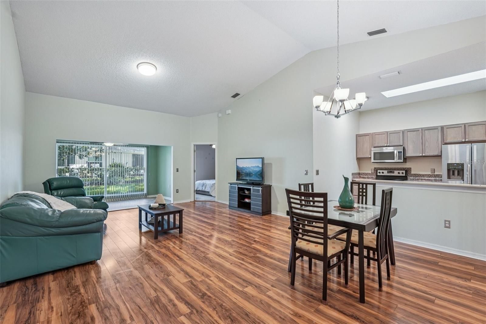 Welcome to this beautifully maintained 2-bedroom, 2-bath condo with 1-car garage in the sought-after 55+ community of Kings Point, Sun City Center. Enjoy lush landscaping as you approach along a designer brick driveway and walkway that leads to a charming screened-in front porch. BRAND NEW AC. Step inside to soaring ceilings and elegant laminate flooring that flow seamlessly through the open dining and living area. The spacious Florida room with oversized screened sliders offers peaceful views and the perfect spot to relax or entertain. The kitchen features a convenient eat-at bar, abundant cabinet space, and sleek stainless steel appliances. The split floorplan provides privacy, with a spacious primary suite offering a walk-in closet, ample storage, and an en suite bath with walk-in shower. The generous second bedroom also boasts excellent closet space. A dedicated laundry room connects the kitchen to the garage for added functionality. You’ll love the gated community of Kings Point, which has amazing facilities, pools, clubs and events just waiting for you to enjoy. Located between Sarasota and Tampa, this home is perfectly positioned for a convenient ride to airports, great shopping, dining, and professional entertainment. With easy access to award-winning, sandy beaches, you’ll experience the best of all worlds—without the stress of big city life. Leave the hustle behind and embrace a new chapter in Sun City Center, Florida, the state's top-ranked and most affordable 55+ retirement community.