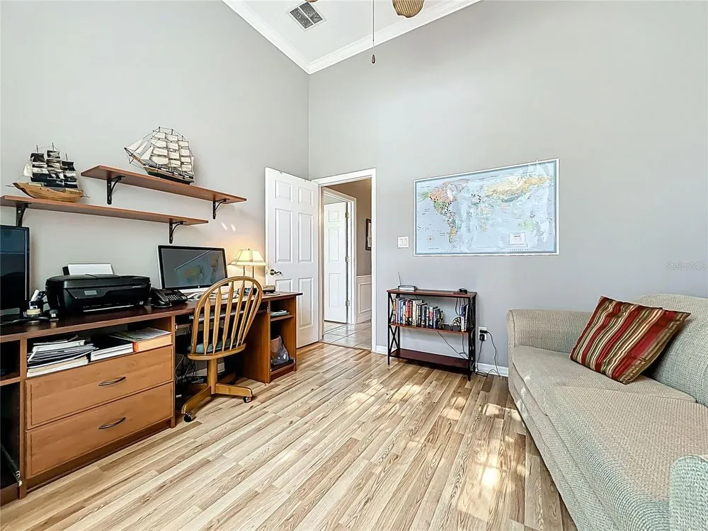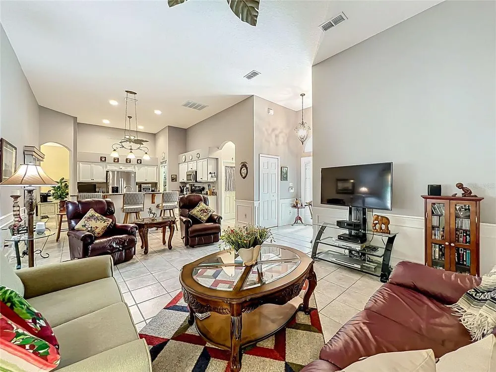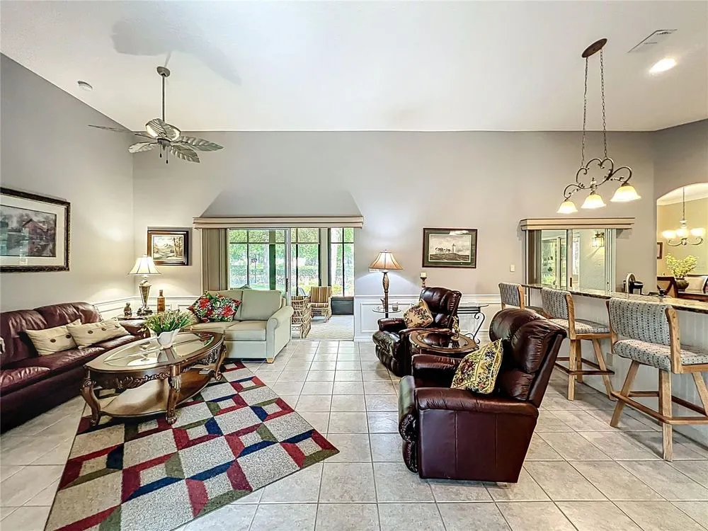 MOTIVATED SELLERS. ROOF 2025. HVAC 2024. WINDOWS 2024. The two-car Garage with a TANDEM ADDITION offers Golf Cart Parking. New Exterior Paint. Upon Entering, you'll appreciate how open, bright, and functional this meticulously-kept 2/2 w/Office home is. Neutral Tones & Custom Features are throughout. High ceilings and an abundance of Natural Light adds to the luxurious OPEN KITCHEN with WHITE COTTAGE CABINETRY, GRANITE counter tops, SS Appliances, DOUBLE-OVEN Range, under-counter lighting, Walk-in Pantry and a family-sized breakfast bar. Classic white CHAIR RAIL and Wainscot with SHADOW BOXES adorn the Foyer, Family Room, Hallway and FULL-SIZED Dining Room. The open and bright Family Room has two sets of sliding glass doors which access the CLIMATE-CONTROLLED 10’x29’ FLORIDA ROOM, complete with NEW WINDOWS. The Primary Bedroom, Guest Bedroom and Office/Bedroom #3 have wood laminate flooring. A 17’6” REMOTE-CONTROLLED RETRACTABLE AWNING provides shade to the backyard’s PAVER PATIO. The Plantation at Leesburg, situated in Central Florida, is a well-established, access-controlled community that offers 3 activity centers, heated pools & spas, fitness facilities, two 18-hole golf courses, driving range & putting green, Restaurant & Tavern, Pro Shop, woodworking shop, optional RV & Boat Storage, courts for tennis & pickleball, and a variety of clubs & activities. Only a short drive to main highways, shopping, health care facilities, attractions and beaches. And, you do not have to be 55 years old to live here! Equal Opportunity Housing. Easy To Show!