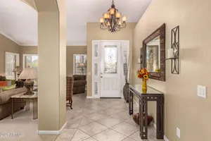 Located in the highly desirable Oakwood Country Club nestled between golf courses and near the clubhouse, pools, restaurant and sport courts, this home is ready for you to move in. The oversized backyard is an entertainer's paradise, featuring a resort-style pool with grotto, built-in fireplace, BBQ area, and expansive paver patio ideal for hosting gatherings or relaxing in style. Inside, the spacious chef's kitchen is the heart of the home, complete with double ovens, abundant counter and cabinet space, separate wet-bar, and vaulted ceilings that create an open, airy feel. The primary suite offers a private retreat with a cozy seating area, while additional bedrooms provide flexibility for an office, guest accommodations, or creative spaces.