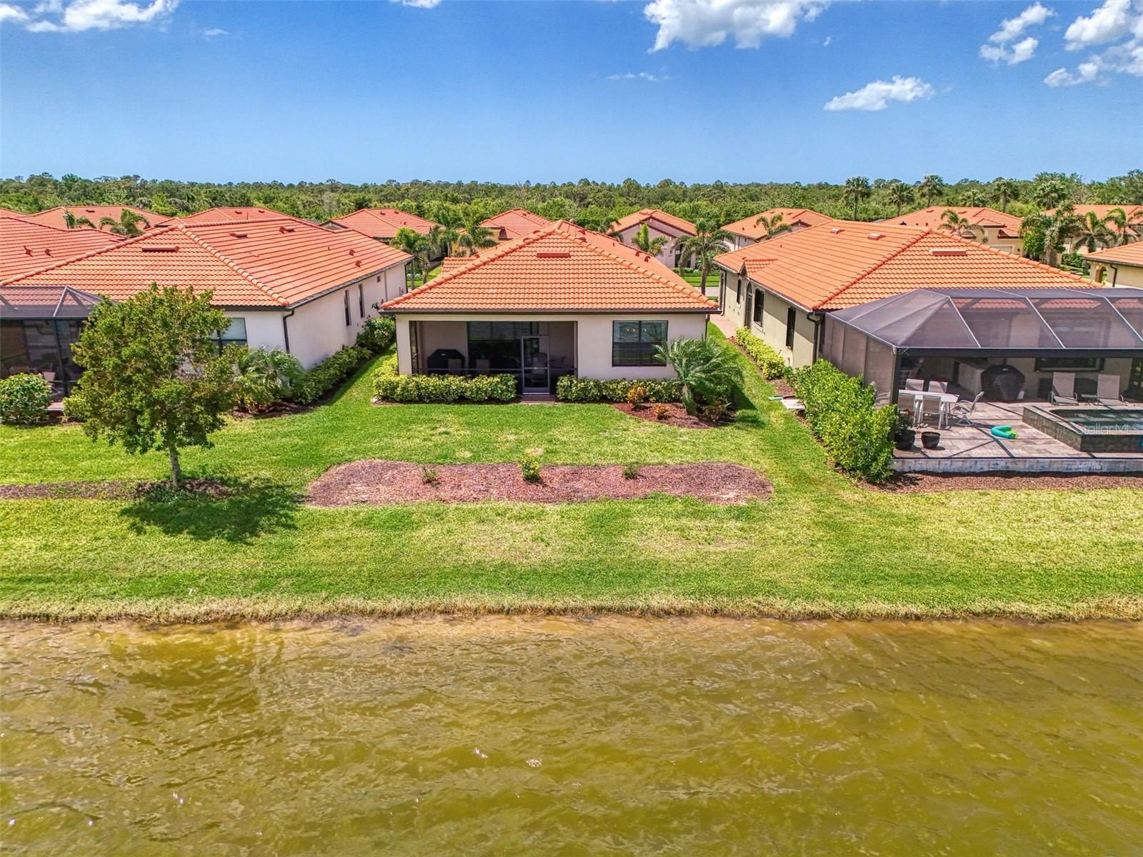 PRICE REDUCED! Seller will pay the entire Golf Course assessment of $15,600! Incredible Waterfront and Golf Course Views from the center of the largest lake in Sarasota National Golf and Country Club includes 2 Golf memberships for the 18-hole Gordon Lewis championship golf course and all amenities. Sarasota National is an Audubon International Certified Signature Sanctuary surrounded by lakes and wetlands with beautiful wildlife. Stylish home comes with Elegant High-End furnishings from Havertys, hosting 2 bedrooms, 2 baths, Den-Office with glass French doors, one of the best lake views and maintenance free. Private screened entrance to 8 ft. beveled glass door leads to the foyer with arched architecture, an extraordinary great room boasting high ceilings with decorative crown molding, Hunter ceiling fan, Whole house water filtration system, New Sun Shade for the 3 sliders. Screened lanai includes Storm Smart electric roll-down Hurricane Shutters leading to a large backyard with room for a pool! Chefs’ kitchen with 42-inch wood cabinets, granite counters, deep pot sink, Large Breakfast Island, upgraded stainless steel appliances, new oven with air-fryer, wine refrigerator, glass tile backsplash, under cabinet lighting and walk-in pantry. Spacious dining room has designer lighting and peaceful views of the lake. The king-sized primary suite boasts a large walk-in closet with built-in organizer, a beautiful glass walk-in shower, dual sink vanity with granite counters and private water closet. Separate guest area bedroom and new designer glass shower in the bath. The entire home is freshly painted with neutral colors, stylish lighting, custom window treatments, large tile on the diagonal throughout with carpet in the bedrooms, inside laundry has built-in sink and cabinets for storage, Security system, 2 car garage with sealed brick paver driveway and lanai. Fantastic open floor plan, perfect for entertaining! Amazing Amenity Campus has state-of-the-art clubhouse, 3 full-service restaurants, coffee lounge with TV’s-internet-library and pool side “Tiki Bar” to watch your favorite sports. “Dragonflies” on site Spa for facials and massage, well-appointed fitness center, locker room-showers and instructed classes, Resort style swimming pool, lap pool, water aerobics, tennis, pickle ball, bocce ball, playground, 2 dog parks and managed events for you to enjoy! Sarasota National is located close to the Atlanta Braves Spring training facility, Wellen Park for shopping and restaurants, historical downtown Venice and beautiful beaches. Call today for your private appointment to view this exceptional home!