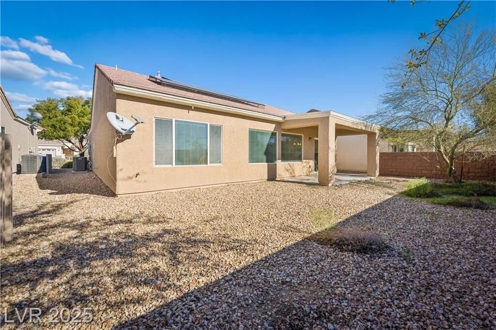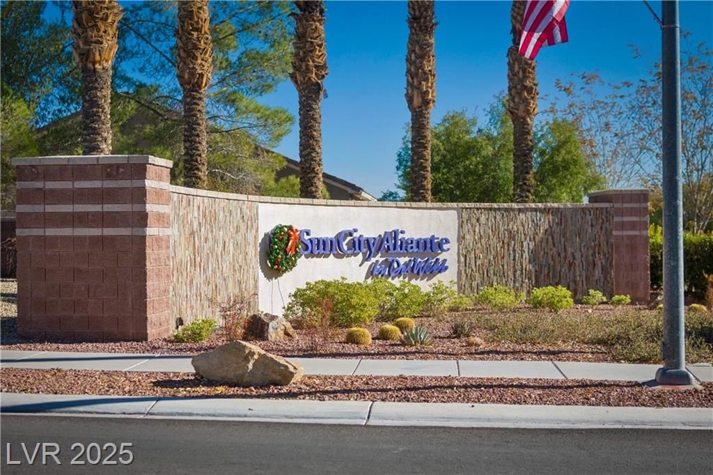 WELCOME HOME to this single-story residence in the premier 55+ community of Sun City Aliante.This home is sure to impress with its mature landscaping, spacious gated courtyard, and wonderful curb appeal. Inside, the open-concept great room flows seamlessly into the stylish kitchen.Offering 1,570 square feet, this well-maintained residence features two bedrooms, two bathrooms, and a flexible den, perfect for a home office, hobby room, or guest space. Save money monthly with solar panels. Enjoy an exceptional active-adult lifestyle with access to an 18-hole championship golf course, resort-style clubhouse, fitness center, pools, pickleball courts, game rooms, and a full calendar of social activities. Set within a welcoming neighborhood, this home offers comfort, convenience, and the relaxed lifestyle Sun City Aliante is known for.