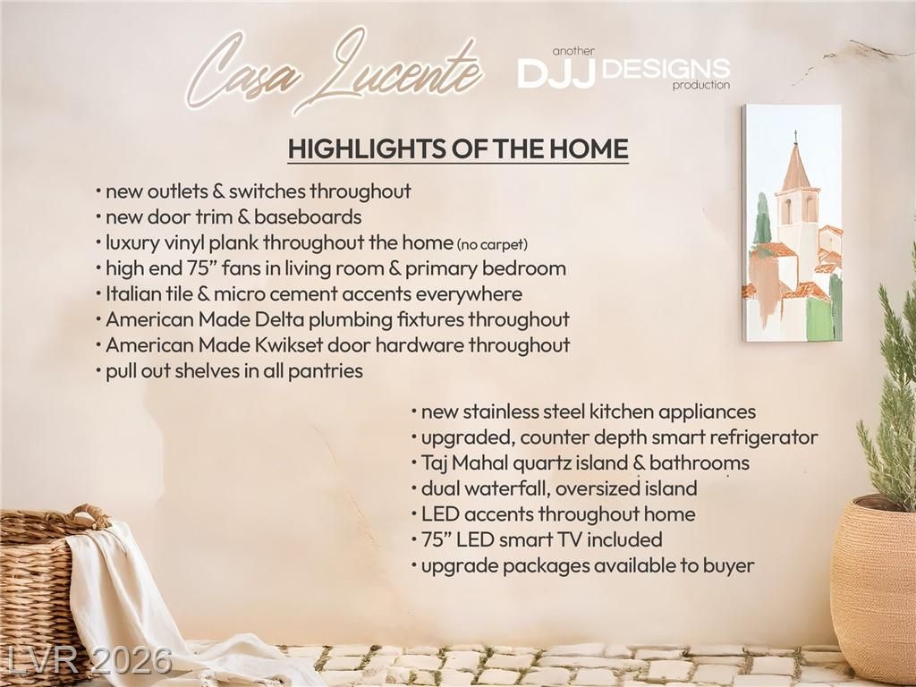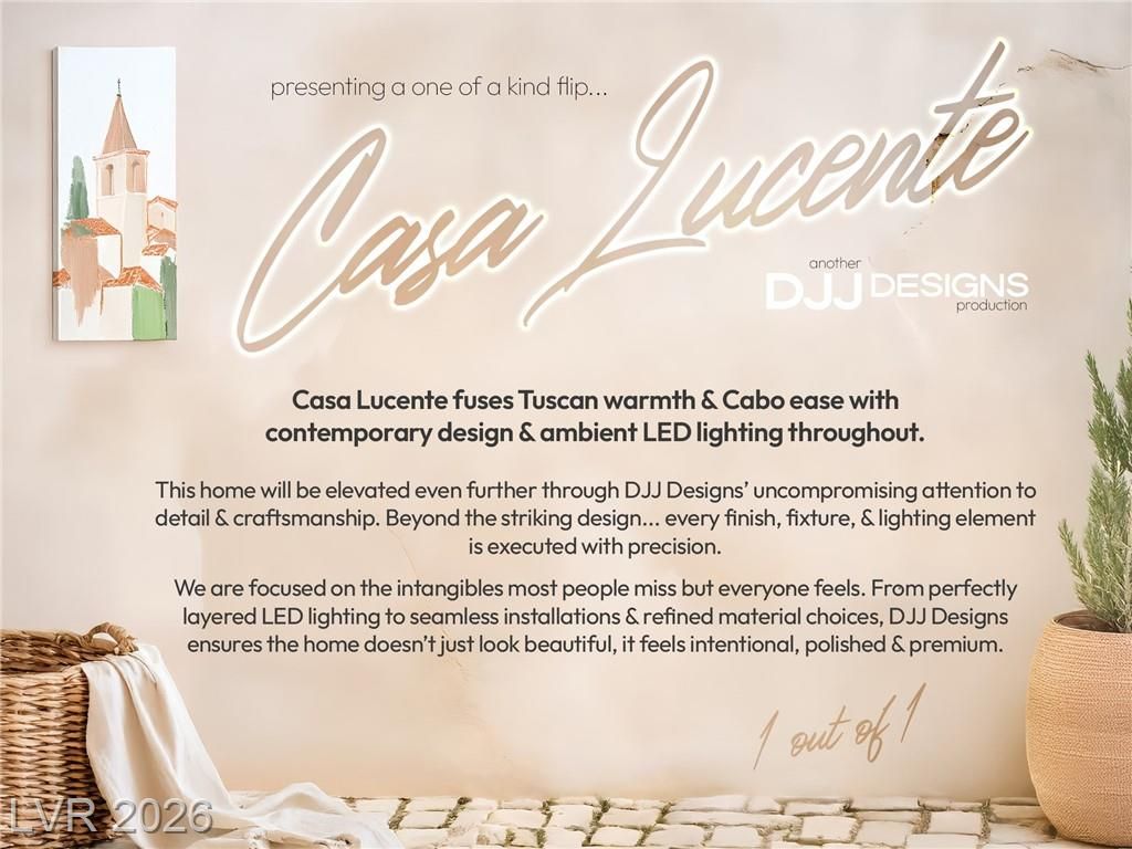 Welcome to 'Casa Lucente'. A ONE OF A KIND property fusing Tuscan warmth & Cabo ease with contemporary design & ambient LED lighting throughout. This IS NOT just "another flip". We have double stacked cabinets in the kitchen, new kitchen appliances, dual waterfall Taj Mahal quartz island, gorgeous living room accent wall equipped w/ a 75" smart TV, a gorgeous primary bathroom + the little things that truly make this home special like all brand new outlets & switches, high end 75" fans, Delta plumbing fixtures throughout, Kwikset door hardware throughout. We provide TRUE VALUE! A few words about the investor: putting people above profits, they pride themselves on digging deep into every detail. They offer features, upgrades & craftsmanship that is beyond what is needed to simply "sell the home". We take pride in educating our visitors on what a true high-quality renovation should look like. Call today & we can show you what sets DJJ Designs work apart from EVERYONE else.