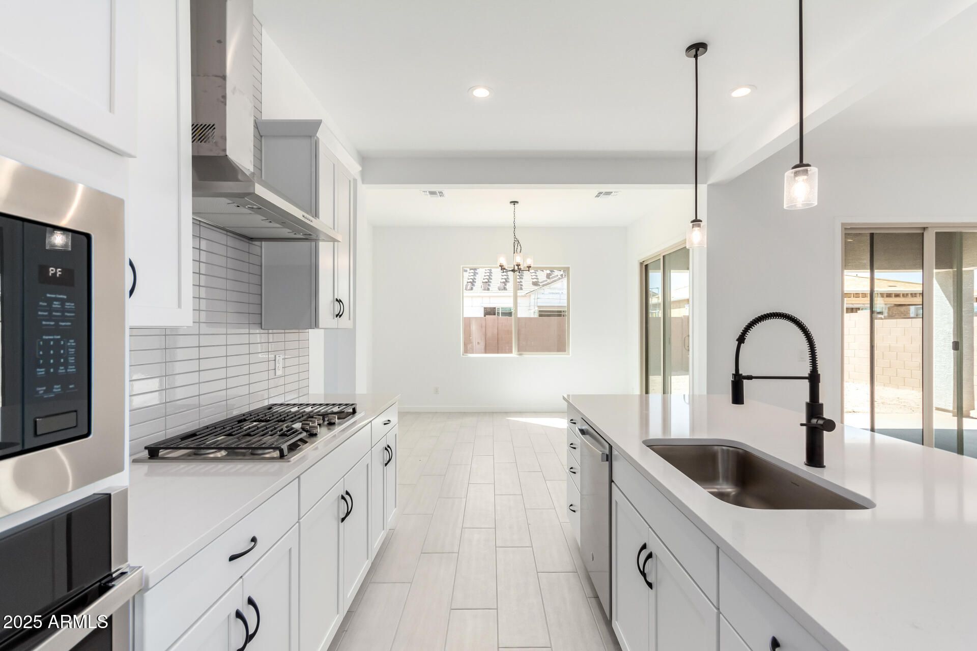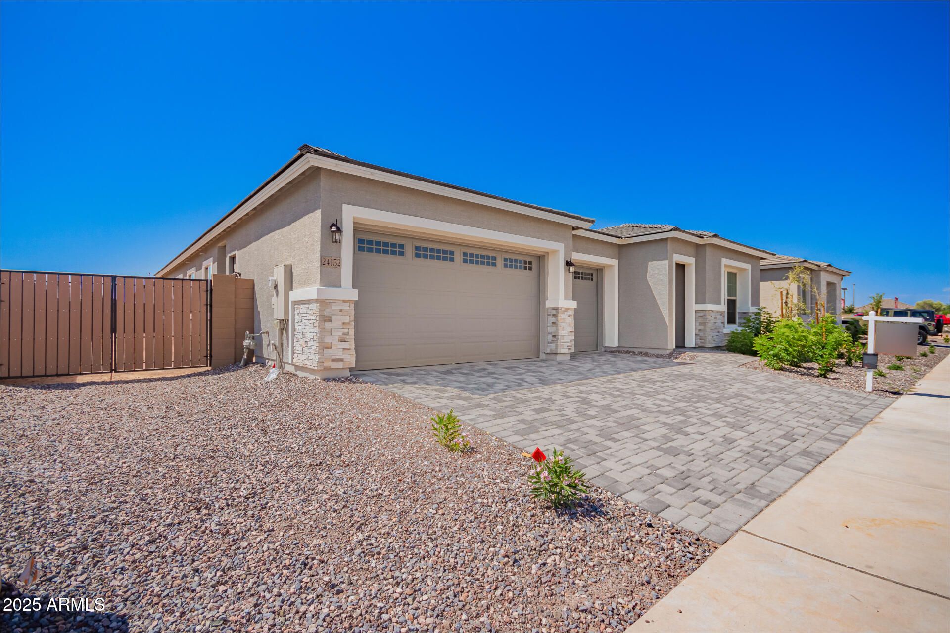 Discover this almighty NEXTGEN Darius home, ready for quick move-in! This is the perfect option for multi-generational living situations as it has a nicely upgraded en suite featuring wet bar, walk-in shower and cabinets with separate entry door to outside. Included features: a covered entry; a beautiful study; an immense great room with center-meet patio doors; a gourmet kitchen showcasing 42'' cabinets, quartz countertops, stainless-steel appliances, a large island, and a walk-in pantry; an inviting dining area; a serene primary suite boasting a generous walk-in closet and a private bath with double sinks; two secondary bedrooms with a shared bath. Central laundry and powder rooms; and a charming covered patio. This home also offers soaring 10' ceilings, 9" x 35" stone tile flooring, cultured marble bath countertops, ceiling fan prewiring and extra windows in select rooms, front yard landscaping, and concrete pavers at the driveway and walkway. Close to the new Frys marketplace with convenient access to the Loop 303 and US-60, nearby TSMC, Lake Pleasant, Surprise Stadium, Wildlife Zoo, Aquarium & Safari Park in the fast-growing NW Valley. This beautiful home is done right and has so much to offer!