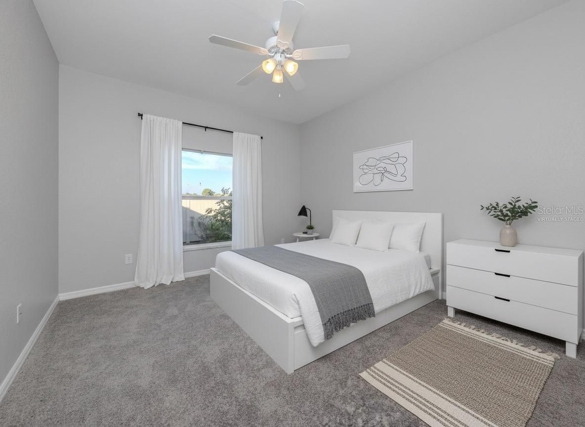 - Ceiling Fan(s), Main Level Primary, Solid-Wood Cabinets, Thermostat