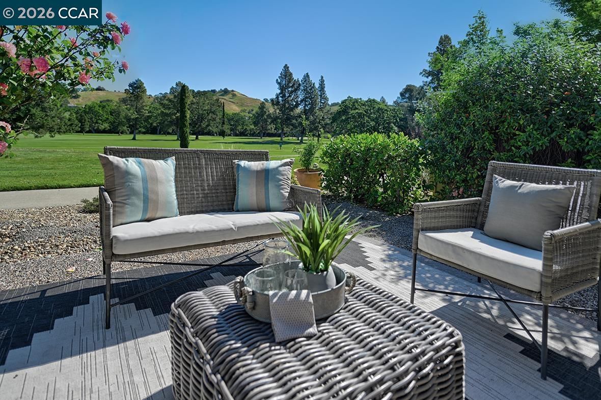 Charming level-in Yosemite model in the heart of Rossmoor’s vibrant 55+ community. This 2-bedroom, 1.5-bath home offers a private setting with a wall of windows showcasing serene golf course views and abundant natural light. The open floor plan flows to an inviting east-facing patio—perfect for morning coffee or evening relaxation. The updated kitchen features freshly painted white cabinetry and all-new appliances. The refreshed hallway bath includes quartz countertops, new fixtures, and a shower-over-tub, while the primary suite offers an updated half bath with a spacious vanity and quartz surfaces and a stacked washer dryer for your convenience. Enjoy fresh two-tone paint, new carpet, and vinyl flooring throughout, plus a park-like setting with walking paths and access to Rossmoor’s exceptional amenities including golf, clubhouse, fitness center, pools, and more.