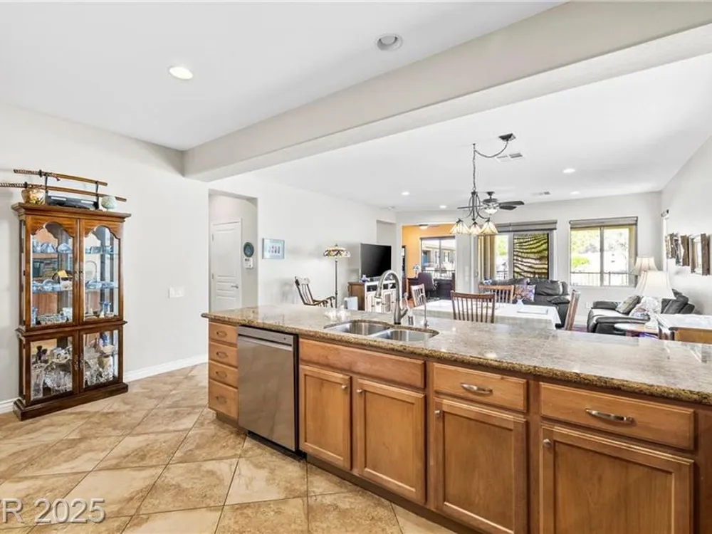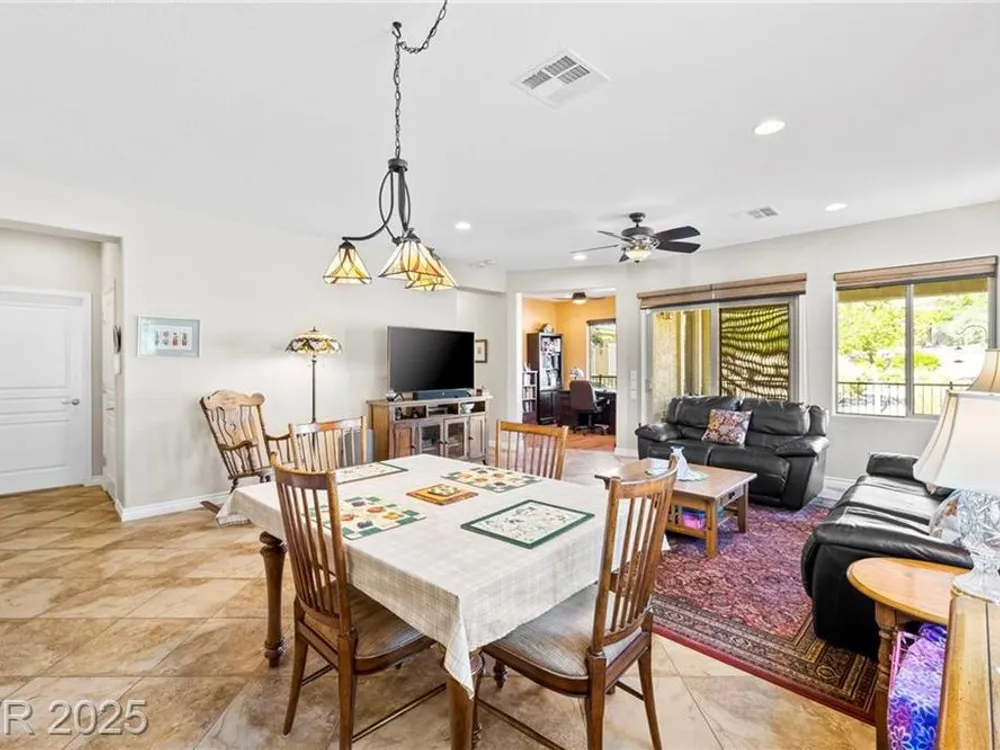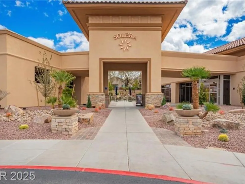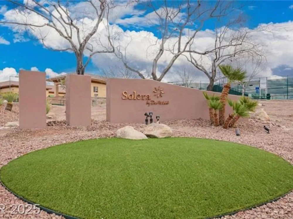Beautiful, move-in ready townhome in Solera Villas, Henderson.This natural light filled 2 bed / 2 bath residence offers 1,520 SF of comfortable, single-level living with an open-concept great room ideal for easy entertaining. The spacious kitchen features custom cabinetry, granite countertops, stainless steel appliances, and a pantry, flowing seamlessly into the dining and living areas. The primary suite includes a walk-in closet, dual sinks, and a new oversized shower. Additional highlights: oversized tile flooring and an attached 2-car garage. Residents have access to Solera’s amenities, including indoor & outdoor pools, sports facilities, exercise classes, pickle ball courts and a vibrant calendar of social activities. Move-in ready and designed for lock-and-leave convenience… experience 55+ living at its best.