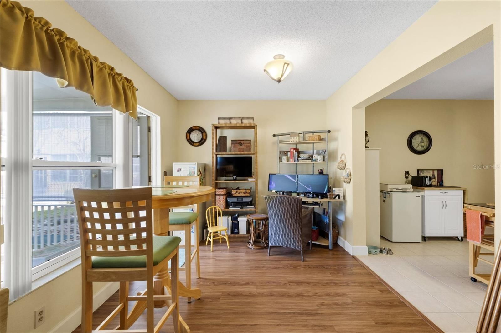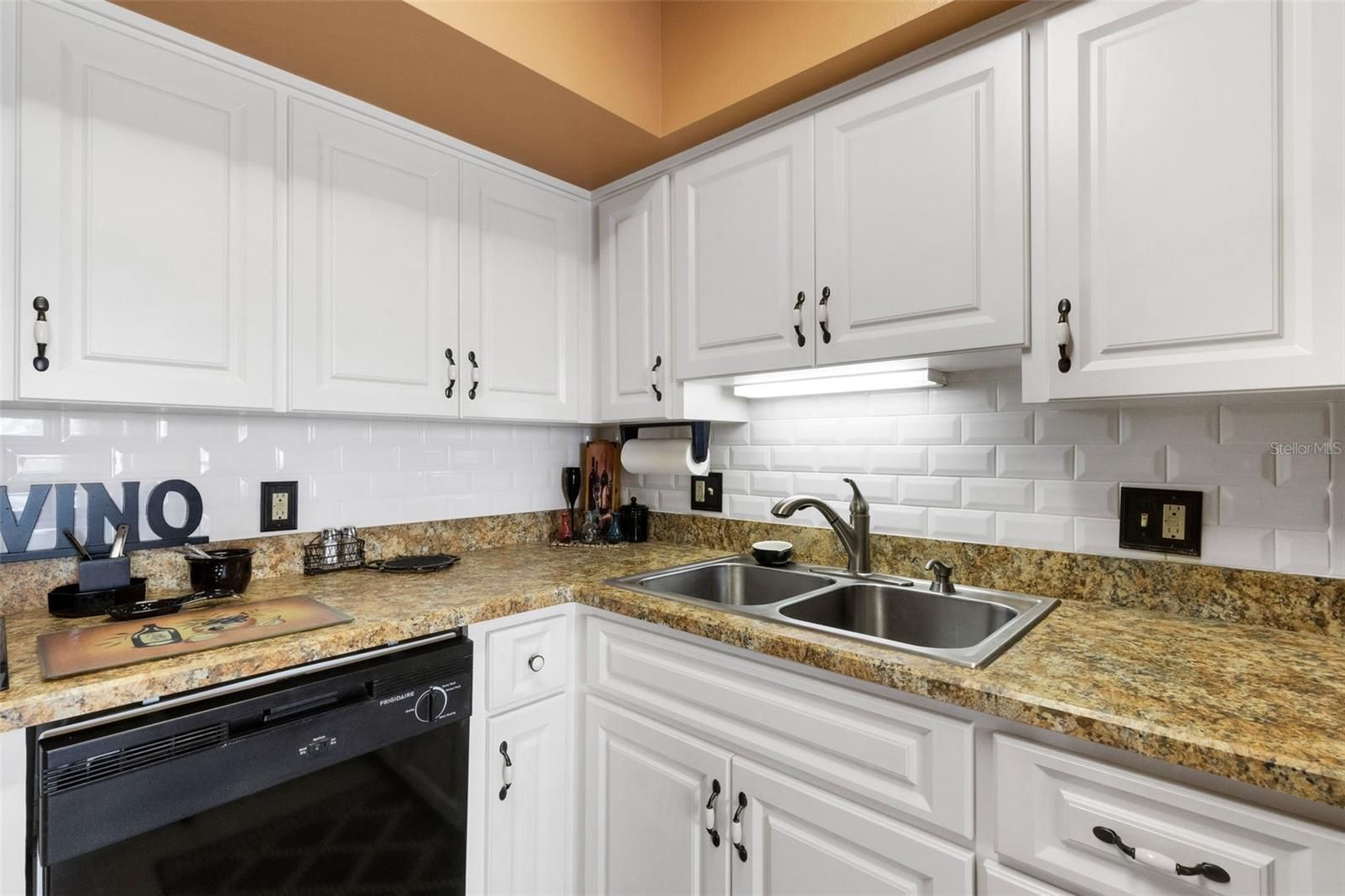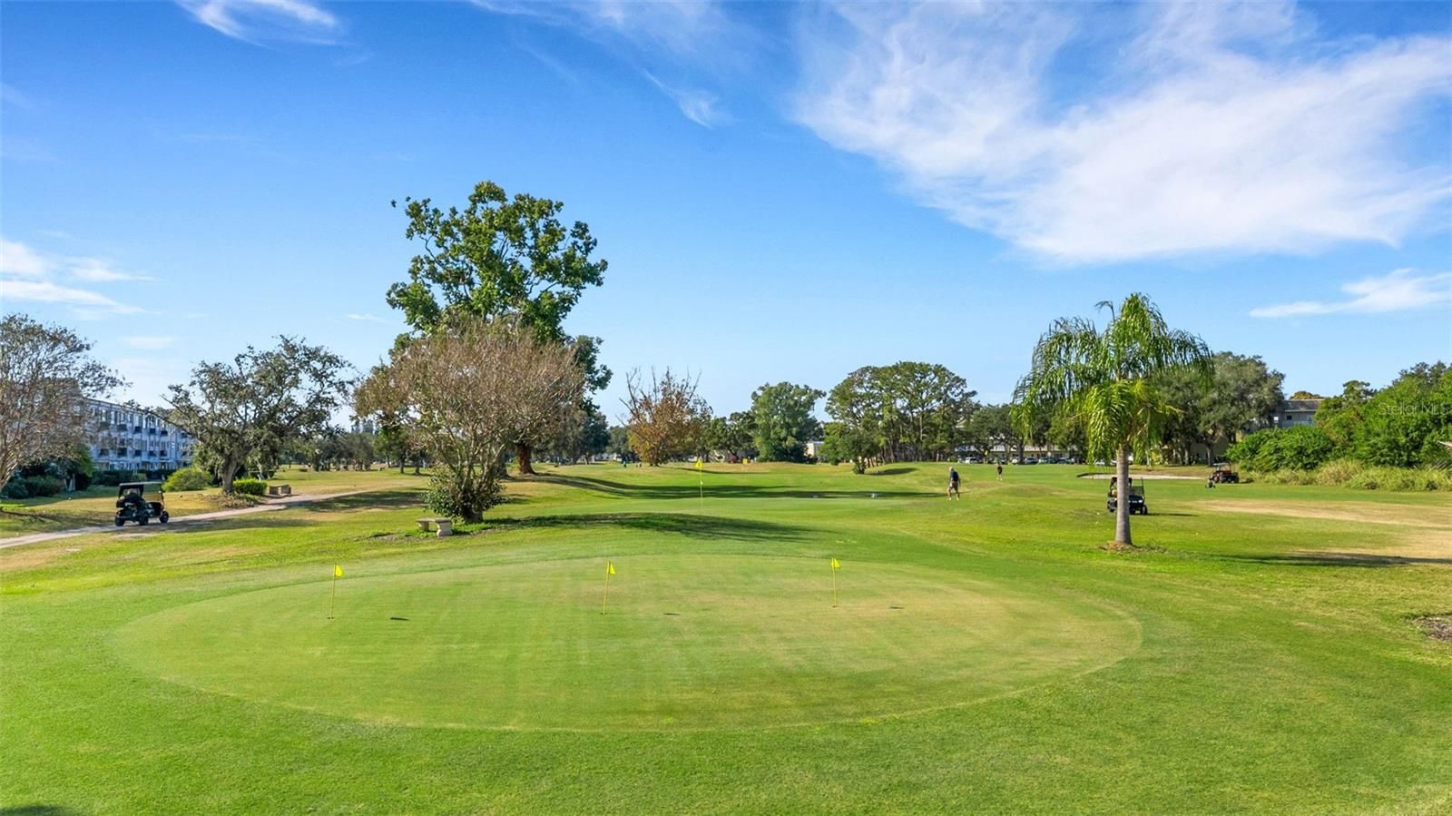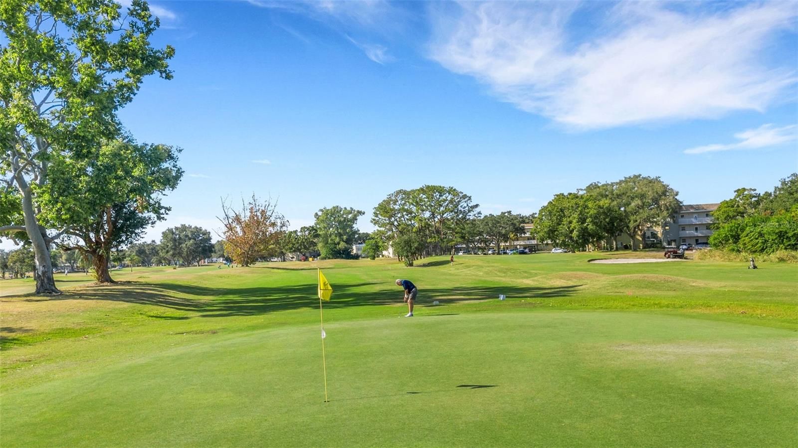 Golf Course view! Welcome home to this beautiful 1st FLOOR, 1400 sq. ft., 2-bed, 2-bath condo with a highly sought after washer and dryer in the Florida room utility closet! This condo has many upgrades, including Luxury Vinyl Flooring, kitchen cabinets, countertops, and backsplash. The primary bedroom was used as a second living room but can be easily converted back to a bedroom. Bathrooms feature updated vanities, glass door, lights, and faucets. IMPACT WINDOWS throughout. Enjoy picturesque golf course sunsets and sunrises from the front patio or the COVERED rear patio. This building is also home to a variety of birds, adding even more charm to the setting. Water heater was replaced in 2021. This condo has it all! Assigned parking. The 55+ community has two activity centers, and two private golf courses with 9 and 18 holes, free exclusively for resident owners. There are two heated swimming pools. The remodeled Cardio Gym has the latest exercise equipment. A very pet-friendly community, there is a fenced dog park with covered seating. There are hobby studios, and a wood shop for the exclusive use of the residents. Activities include fitness classes, dancing, clubs, cards, billiards, entertainment, classes, and much more. The on-site Good Karma Café has take & bake meals and snacks. Close to beaches, transportation, shopping, entertainment, and fine dining. All room sizes, floor plans and square footage are approximate. This property is being transferred by a leasehold estate deed. Association approval is required. If financing, a 35% down payment is required. Washer, dryer and hook ups must be approved by the association.