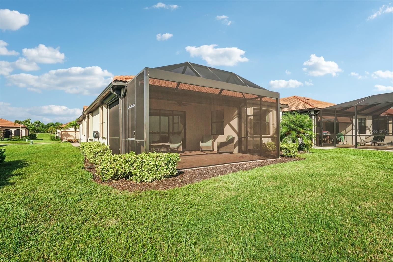 Breathtaking lake views and resort-style living set the tone for this beautifully designed Roma floor plan home, offering 2 bedrooms, 2 bathrooms, a versatile den, and a spacious 2-car garage across 1,907 sq. ft. of living space. Step inside to find upgraded light fixtures, custom window treatments, and a gourmet kitchen with granite countertops and an oversized island—perfect for entertaining or casual dining. The open layout flows seamlessly to the extended screened paver lanai with a clear-view panoramic screen, where you can unwind while taking in the tranquil lake views. What truly sets this home apart is the lifestyle it offers. Your HOA fee already includes two golf memberships to the community’s 18-hole championship golf course, unlimited play, access to a private golf clubhouse, and exclusive entry to the 19th Hole Restaurant—the community’s third dining venue. Beyond golf, the amenities are unmatched. Surrounded by 1,300 acres of preserved land, the community provides a serene and natural backdrop while delivering resort-style luxuries: a sparkling pool and spa with a Tiki Bar, tennis and pickleball courts, bocce ball, a coffee lounge, a library, a card room, fitness and wellness classes, a day spa, and a grand clubhouse with full dining. This home is more than a residence—it’s a retreat that combines elegance, comfort, and a vibrant social lifestyle.**Free 1/0 Interest Rate Buy Down when using our preferred lender**