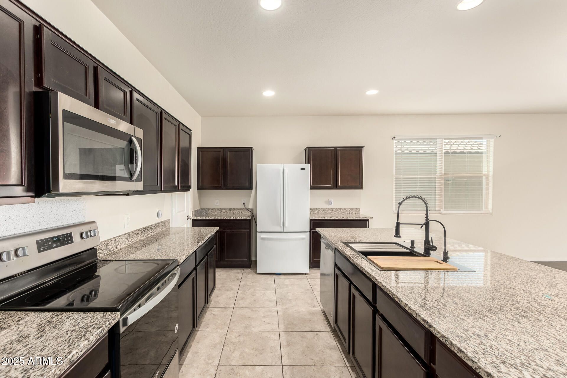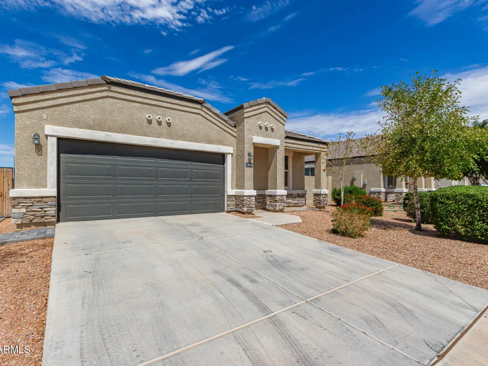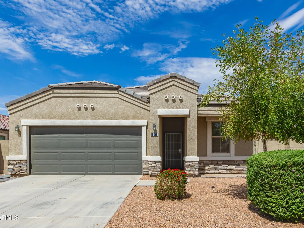 VA loan assumption 3.125%!!! Welcome to this cozy 3 bedroom, 2 bathroom home in the heart of Casa Grande, built in 2020 by D.R. Horton and featuring the popular Pelican floor plan. With a bright open-concept layout, 9-foot ceilings, this home offers the perfect blend of style and functionality. The kitchen is a chef's dream with rich espresso cabinets, granite countertops, a large island, and appliances—all included. A split master bedroom provides privacy and boasts an amazing walk-in closet! Step outside to a beautifully landscaped backyard with low-maintenance turf, a covered patio, and convenient RV gate access—perfect for entertaining or relaxing. Enjoy breathtaking mountain views and take advantage of the community pool!