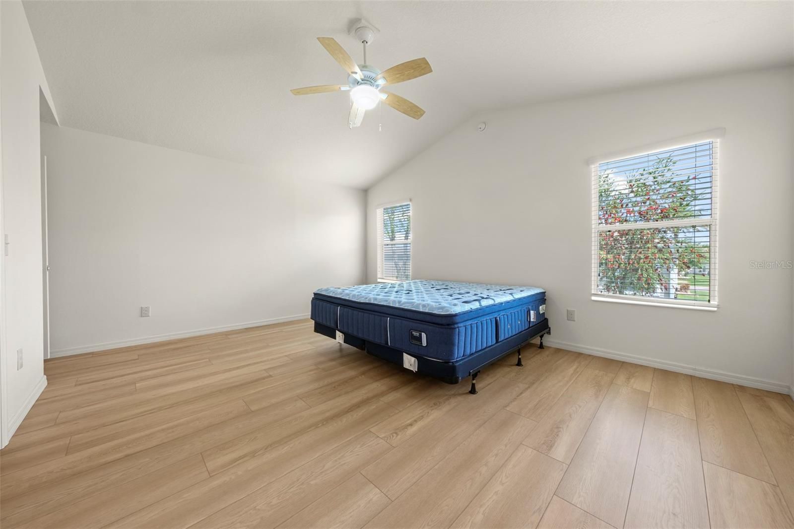 - Ceiling Fan(s), Eat-in Kitchen, High Ceilings, Open Floorplan, Main Level Primary, Stone Counters, Thermostat, Walk-In Closet(s)