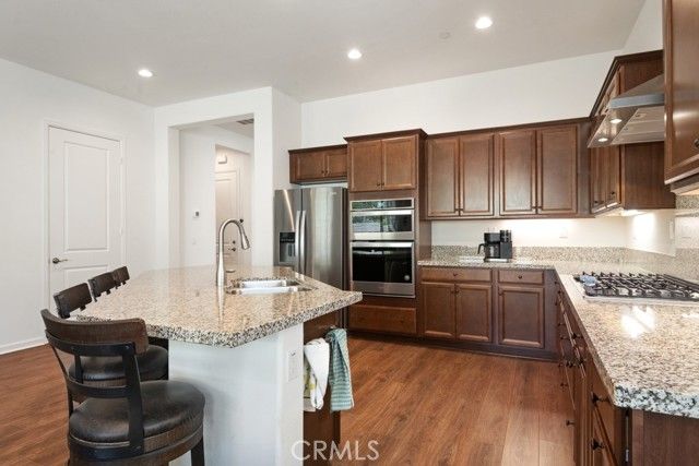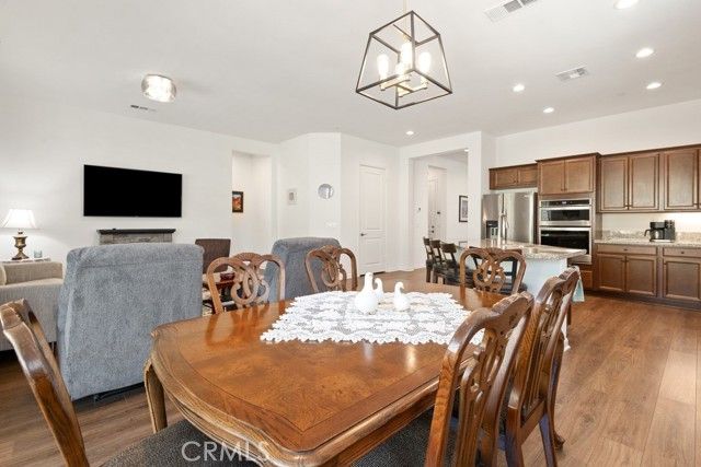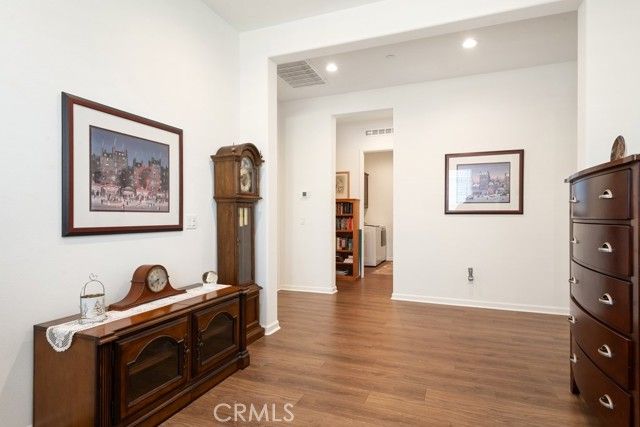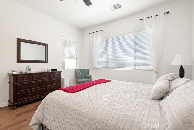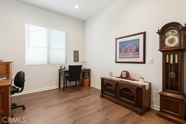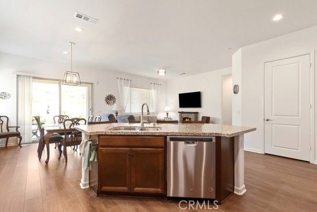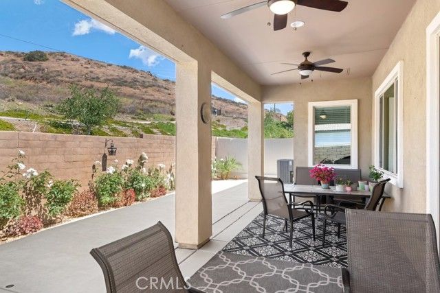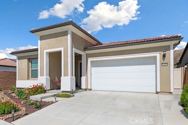 Mortgage savings may be available for buyers of this listing!! upgraded 2-bedroom, 2-bath home with a large den, located in the prestigious Terramor community. This property offers an open-concept layout with 10' ceilings, recessed lighting, premium light fixtures, built-in ceiling fans, and luxury vinyl plank flooring throughout. PAID OFF SOLAR adds exceptional value and energy efficiency. The kitchen is designed for both functionality and style, featuring a large center island, stainless steel appliances, granite countertops, a walk-in pantry, and cabinetry with pull-out shelves. It opens seamlessly to the living and dining areas, creating a spacious environment ideal for entertaining. The primary suite offers mountain views and a well-appointed ensuite bath with dual sinks, an oversized walk-in shower with bench, private toilet room, and a walk-in closet. The living room opens to a fully hardscaped, private backyard complete with a covered California room, recessed lighting, built-in fans, and blooming rose bushes-an ideal space for indoor-outdoor living. A separate laundry room, located near the entrance from the attached 2-car garage, provides ample storage with upper and lower cabinetry. Residents enjoy access to Terramor's resort-style amenities, including 5 miles of walki