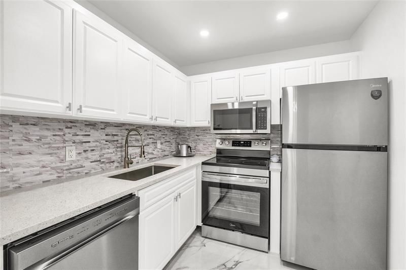 This BEAUTIFUL first floor condo is located in Century Village; an active 55+. The Florida Room features glass enclosure windows with tranquil garden views. GREAT amenities - clubhouse, theater, fitness center, pools, transportation within and outside the community. CLOSE TO BEACH, SHOPPING, DINING and LOTS MORE. Completely RENOVATED, BRAND NEW Appliances, spa like bathrooms, lots of closets, stunning floors throughout. All NEW appliances, UNIQUE fixtures. Light & bright! Make this house YOURS today. MUST SEE. Hurry, don't wait. Call today.