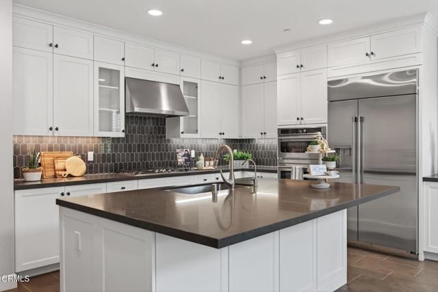 Beautiful, turn-key home in Camarillo's desirable 'The Grove' 55+ community. Meticulously maintained with high-quality finishes throughout, every bedroom and bath reflects pride of ownership. Thoughtfully designed for comfort and effortless living, this light-filled residence features an open floor plan with two spacious bedrooms--each with an en-suite bath--on the main level. Upstairs, a private third bedroom and full bath create the perfect retreat for guests or multigenerational living. An additional downstairs office/den offers flexible use and could serve as a fourth bedroom if needed.The gourmet kitchen shines with ceiling-height cabinetry, quartz countertops, a striking Italian tile backsplash, top-tier stainless steel appliances, and abundant storage. A large island anchors the space and flows seamlessly into the family room for easy entertaining. Host memorable gatherings in the open-concept Great Room, then step into the private California Room/lanai to enjoy the soothing fountain and lush, low-maintenance landscaping--beauty and privacy all in one.Start living your best years at this active adult resort community designed and loved with the intention of being a forever home. The Grove's resort-style amenities encourage an active lifestyle: a state-of-the-art fitness center, pickleball, ping-pong, bocce ball, putting green, large walk-in pool with cabanas, spa, BBQ areas, outdoor fireplaces, two dog parks, and even The Grove Library. Discover the perfect blend of luxury, convenience, and community--don't miss this exceptional home.