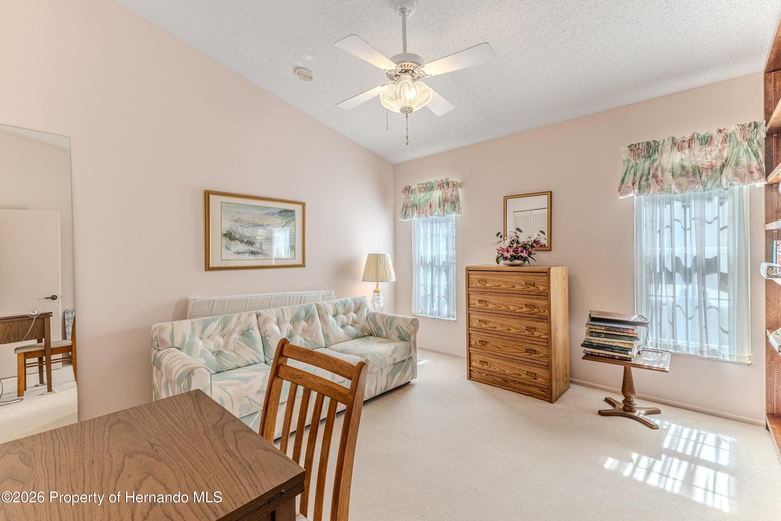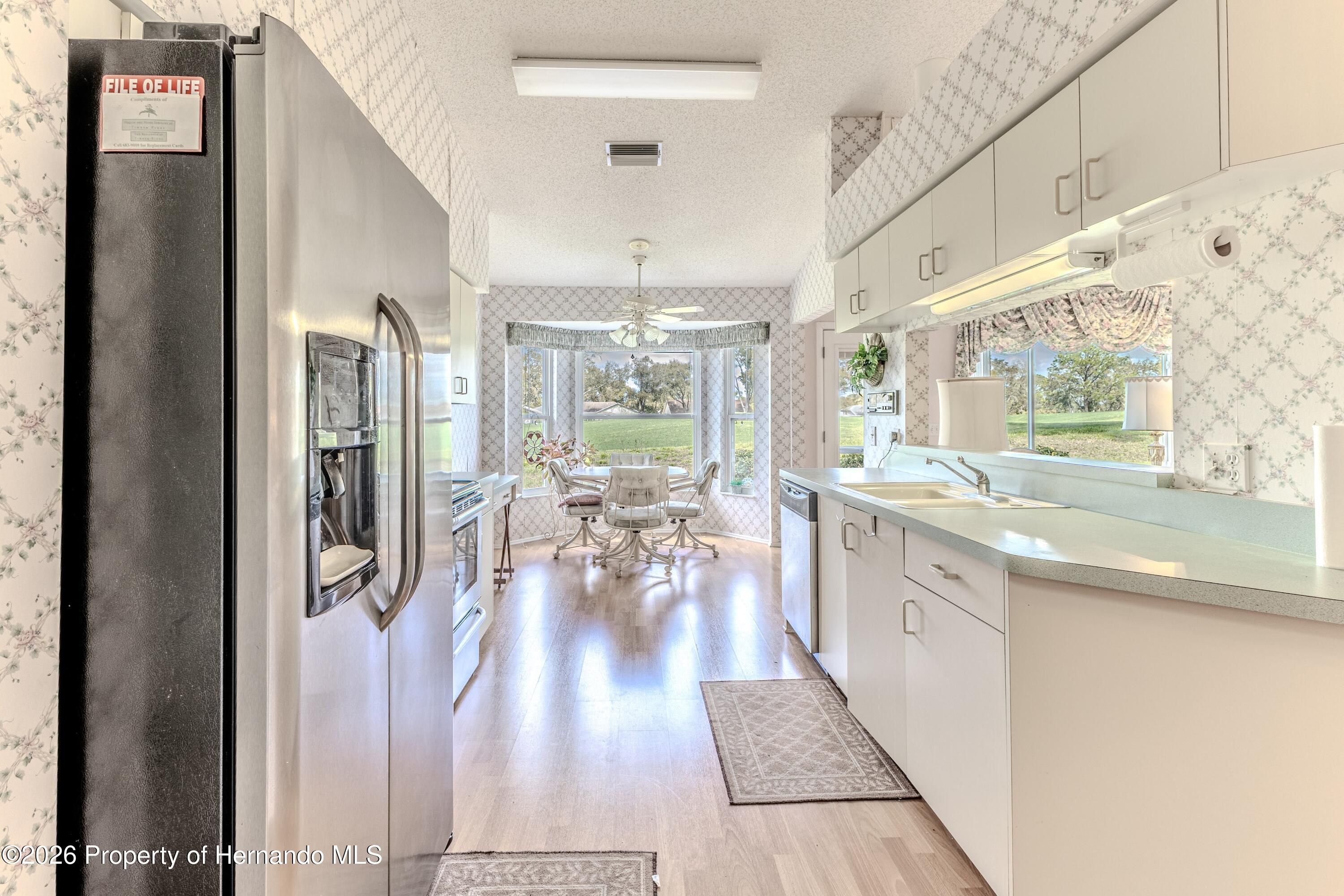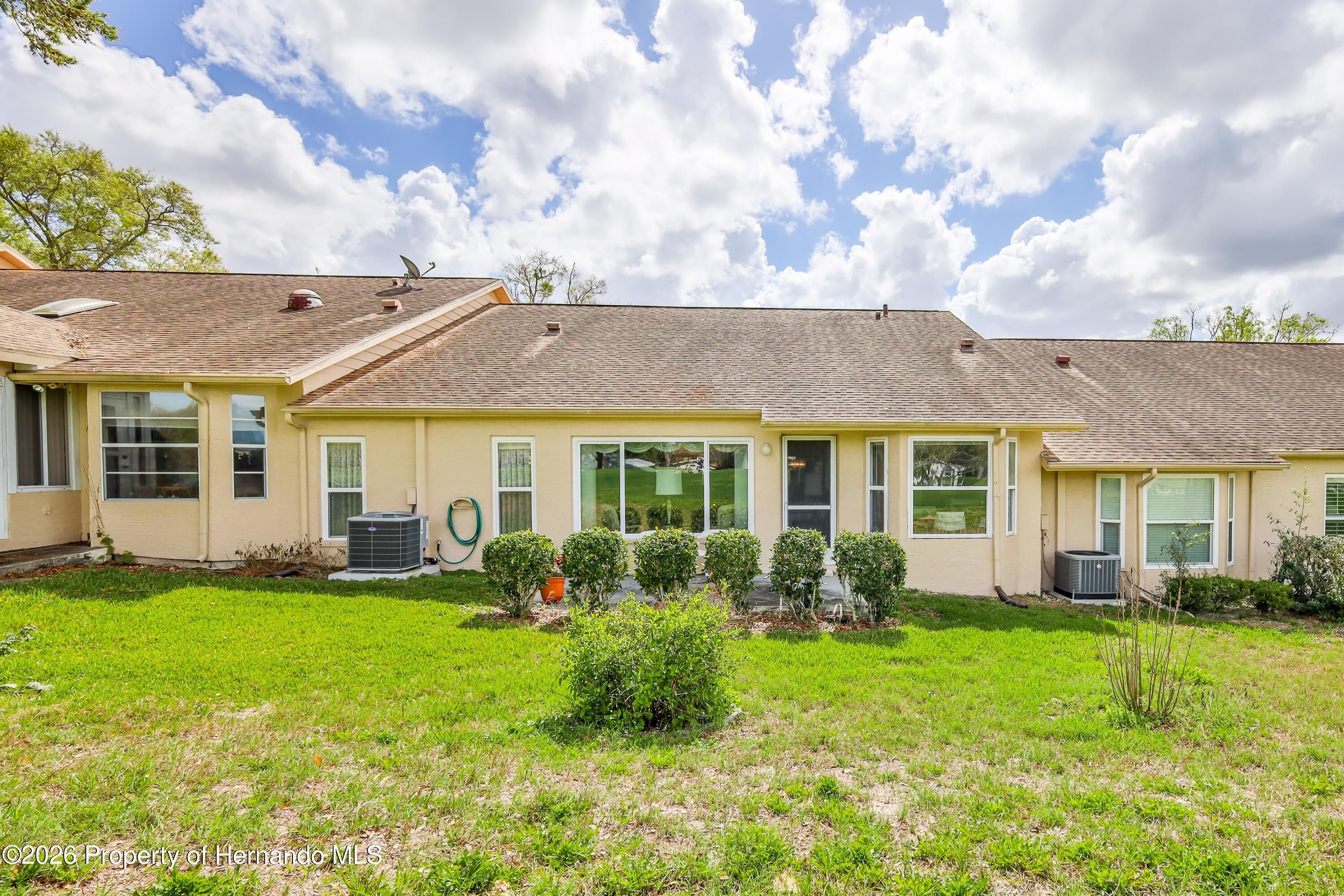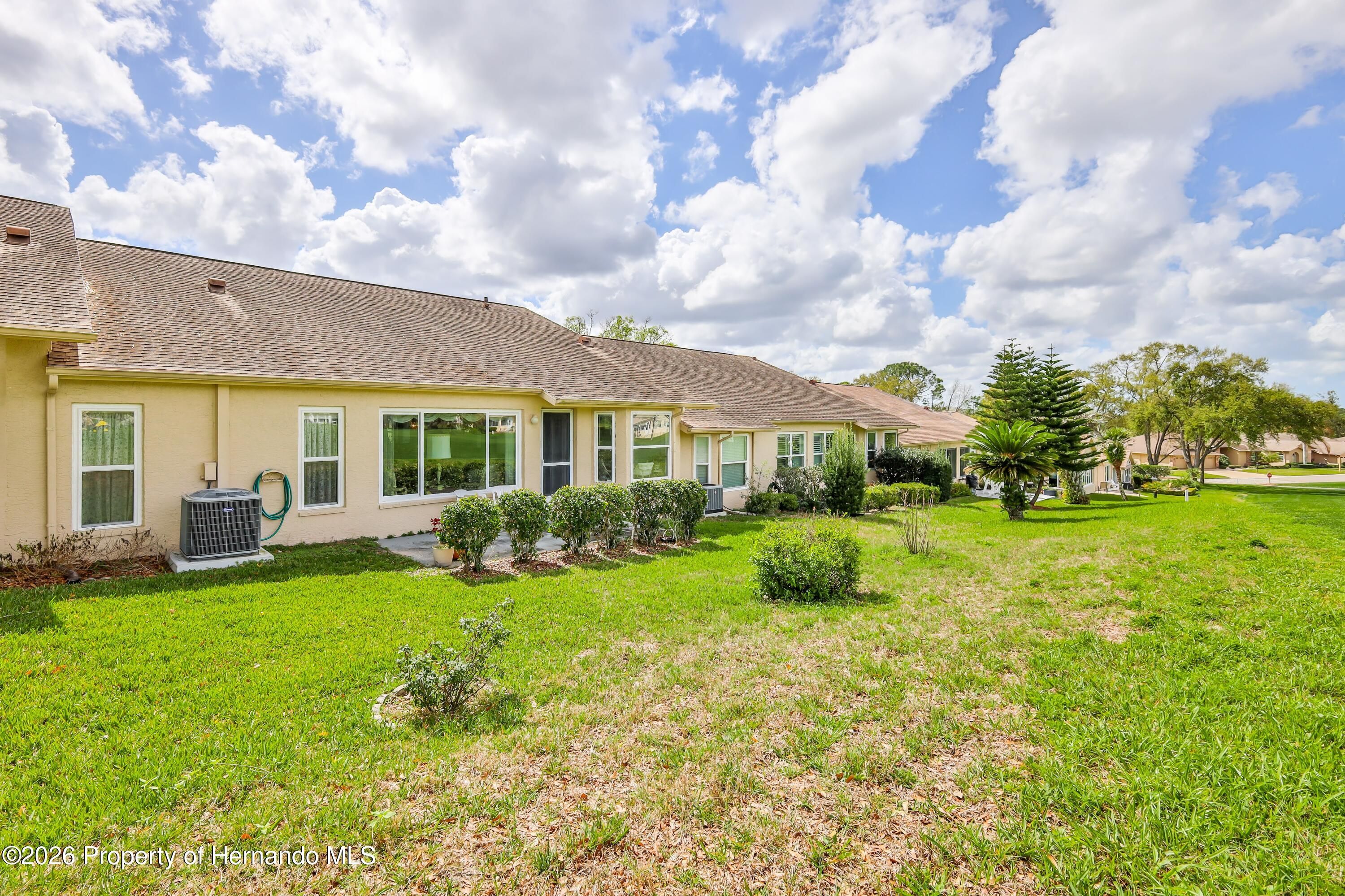 Welcome to award-winning Timber Pines, one of the area's most sought-after 55+ gated golf communities, where resort-style living meets comfort and convenience. This beautifully furnished, turn-key villa in desirable Hillside Village is move-in ready and waiting for its next owner. This well maintained 2-bedroom, 2-bath home offers an inviting open-concept living and dining area that welcomes you through a covered entry. Natural light fills the home creating a bright and relaxing space perfect for everyday living or entertaining. The guest bedroom and bathroom provide a comfortable retreat for visitors, featuring a well-lit vanity with storage, tub/shower combination, and a nearby linen closet. The spacious primary suite includes room for a sitting or reading area and offers the convenience of two walk-in closets. The kitchen features a charming breakfast nook with bay windows, tray ceiling with fan, recessed lighting, and multiple pantry cabinets for storage. An inside laundry room with washer and dryer sits just off the kitchen and leads directly to the two-car garage, which includes a utility sink, storage cabinet, and retractable screen door. Residents of Hillside Village enjoy a friendly neighborhood atmosphere with monthly gatherings at the community picnic area set within a peaceful park-like setting. Life in Timber Pines means access to exceptional amenities including four pristine golf courses, an award-winning pickleball complex, a state-of-the-art fitness and wellness center, clubhouse and restaurant, performing arts center, residents activity center, tennis courts, billiards, bocce, woodworking shop, arts and crafts center, two geothermal pools, and over 100 social clubs and activities. The monthly Timber Pines Master Association dues includes Spectrum cable TV with two boxes and high-speed internet, while the Hillside Village dues covers lawn care, irrigation, exterior painting and exterior termite protection. If you are looking for carefree living in a vibrant active adult golf community, this beautifully furnished villa offers the perfect opportunity to start enjoying the Timber Pines lifestyle. Beyond the home and community borders, a wealth of Central Florida recreational opportunities awaits. Enjoy the renowned tarpon fishing waters of the Gulf of America, explore the historic Tarpon Springs Sponge Docks, or visit nearby scalloping hotspots. Outdoor enthusiasts will appreciate the abundance of kayaking, tubing, biking trails, horseback riding, and motocross. The area also offers numerous golf courses, as well as convenient access to shopping, dining, and medical facilities along Highway 50 and U.S. 19. Plus, easy access to major highways puts you within a comfortable drive of Central Florida's world-famous theme parks, Tampa's cultural attractions, Cruise Ship Ports, and both Tampa International and Saint Pete Airports. Top-rated healthcare facilities, including Tampa General Hospital, are also within close reach--making this home the perfect blend of relaxation, recreation, and convenience for your next chapter in Florida living. Schedule your private showing today and start living the good life.