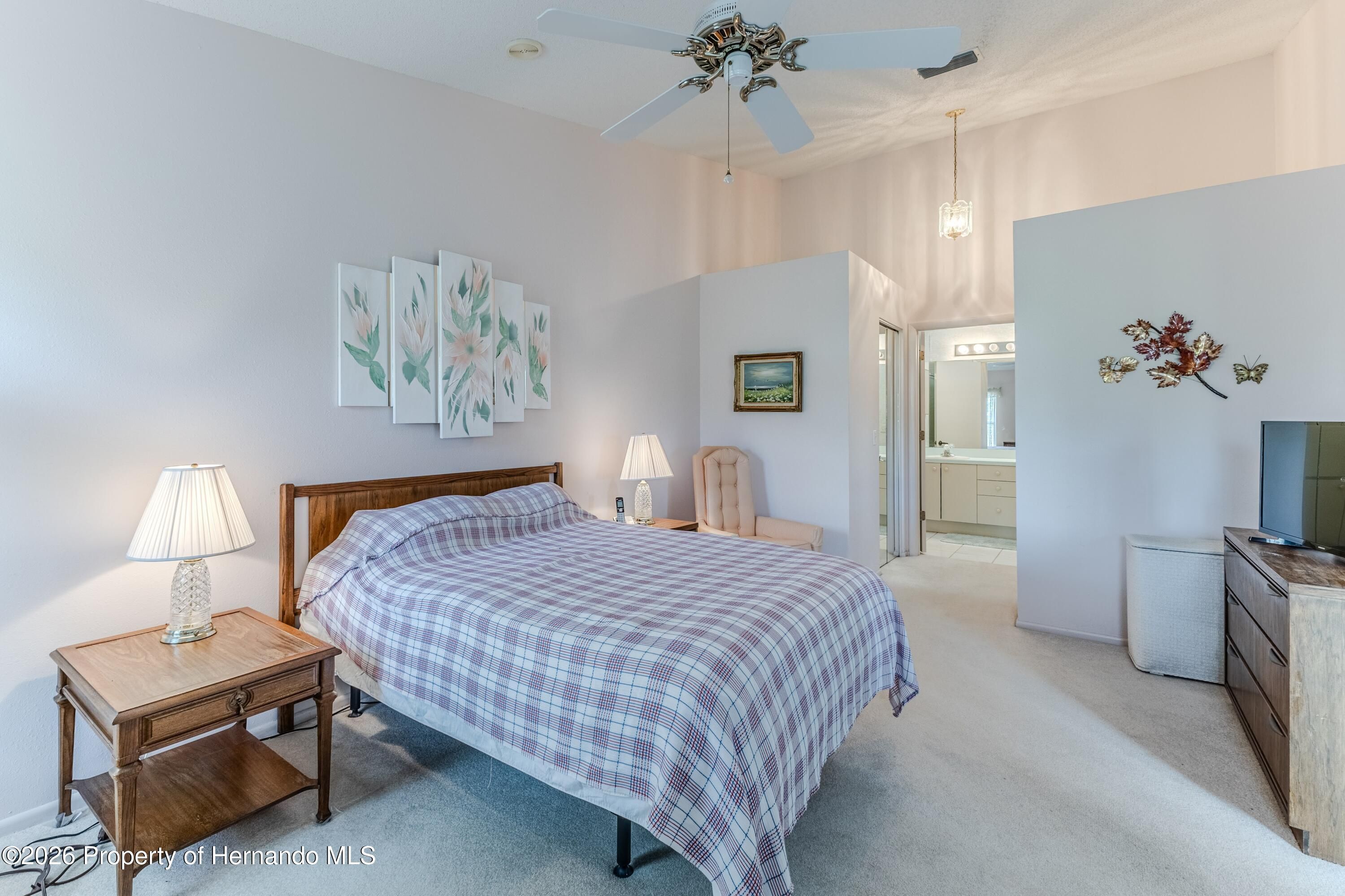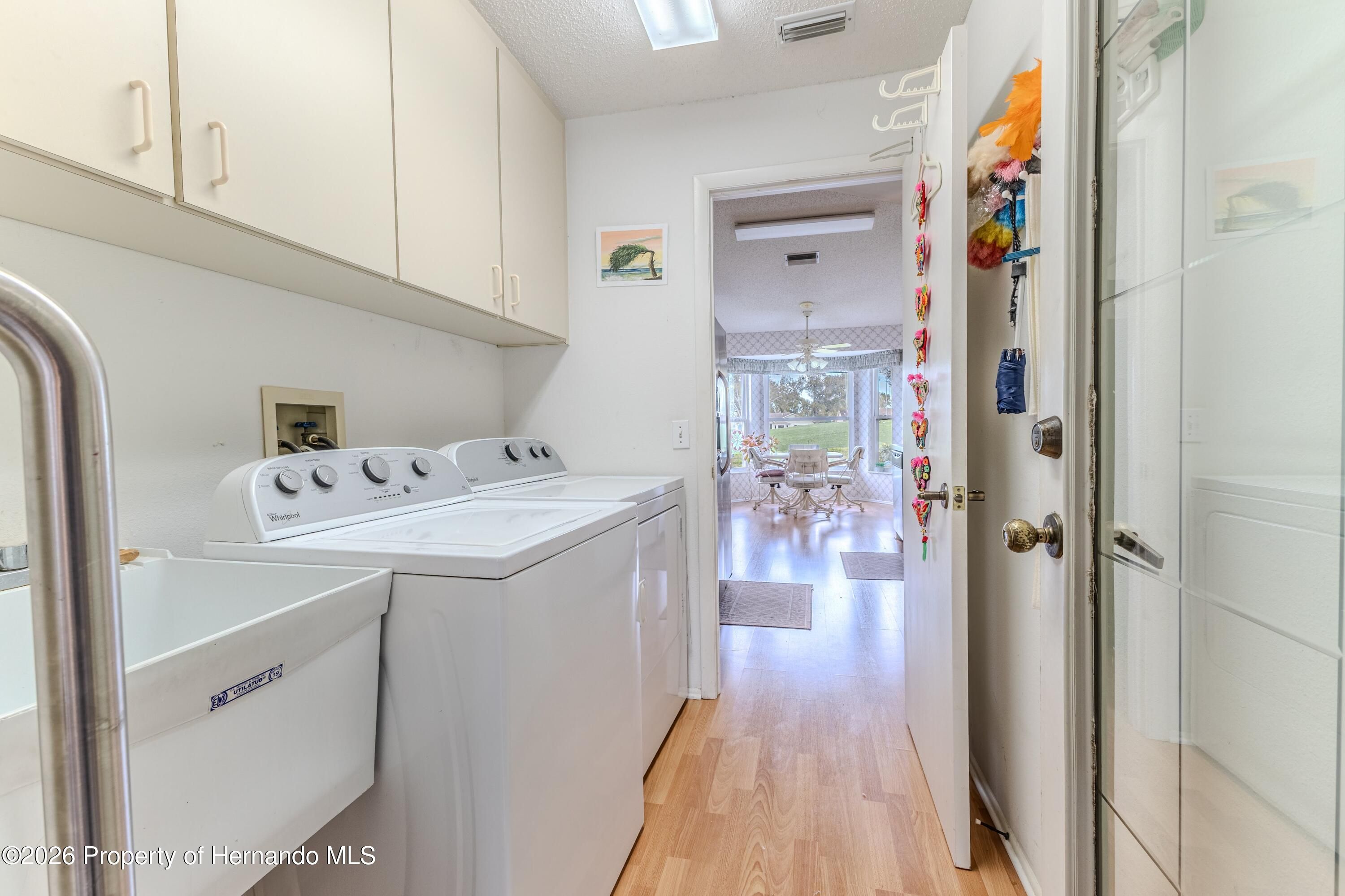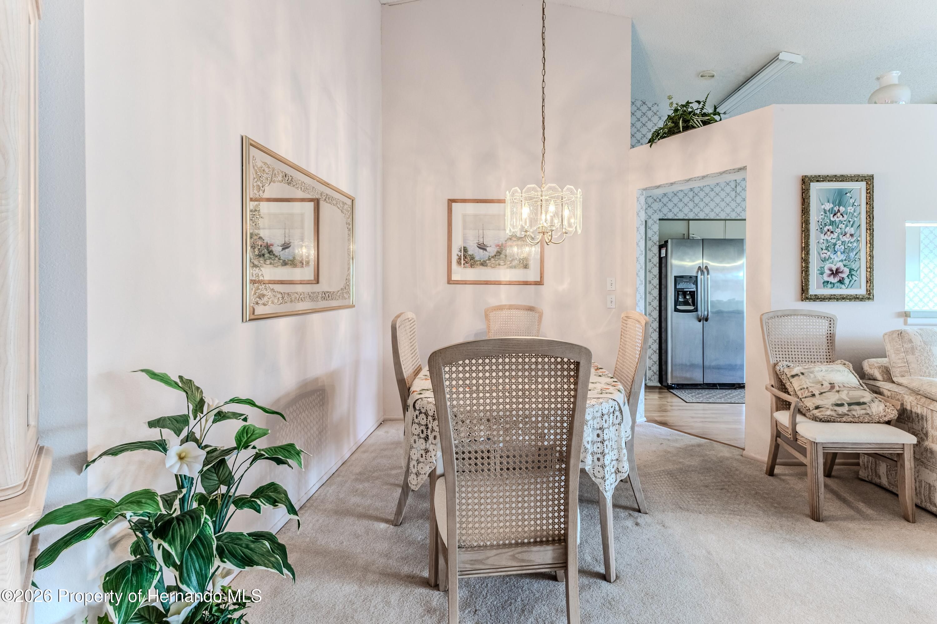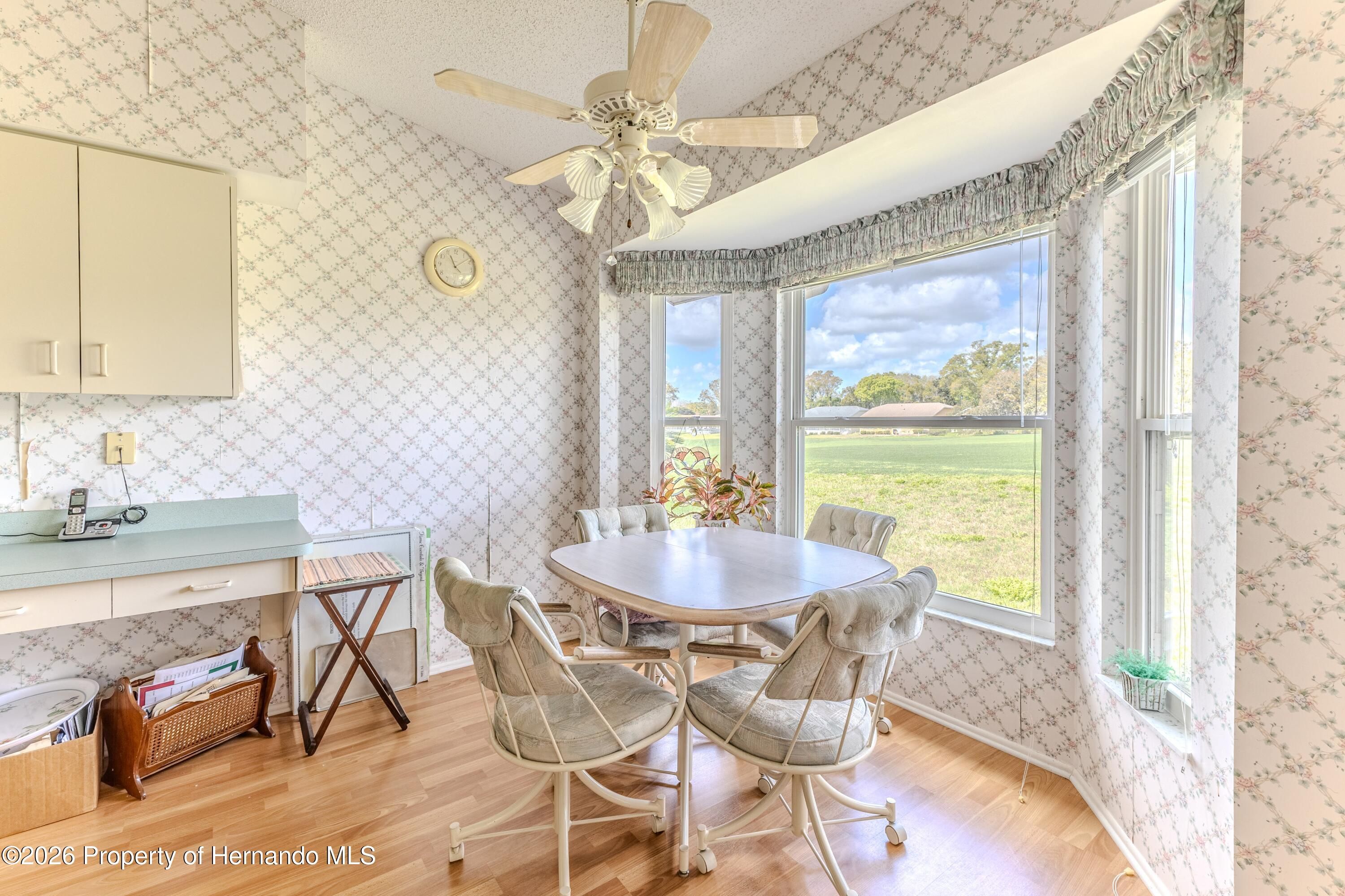 Welcome to award-winning Timber Pines, one of the area's most sought-after 55+ gated golf communities, where resort-style living meets comfort and convenience. This beautifully furnished, turn-key villa in desirable Hillside Village is move-in ready and waiting for its next owner. This well maintained 2-bedroom, 2-bath home offers an inviting open-concept living and dining area that welcomes you through a covered entry. Natural light fills the home creating a bright and relaxing space perfect for everyday living or entertaining. The guest bedroom and bathroom provide a comfortable retreat for visitors, featuring a well-lit vanity with storage, tub/shower combination, and a nearby linen closet. The spacious primary suite includes room for a sitting or reading area and offers the convenience of two walk-in closets. The kitchen features a charming breakfast nook with bay windows, tray ceiling with fan, recessed lighting, and multiple pantry cabinets for storage. An inside laundry room with washer and dryer sits just off the kitchen and leads directly to the two-car garage, which includes a utility sink, storage cabinet, and retractable screen door. Residents of Hillside Village enjoy a friendly neighborhood atmosphere with monthly gatherings at the community picnic area set within a peaceful park-like setting. Life in Timber Pines means access to exceptional amenities including four pristine golf courses, an award-winning pickleball complex, a state-of-the-art fitness and wellness center, clubhouse and restaurant, performing arts center, residents activity center, tennis courts, billiards, bocce, woodworking shop, arts and crafts center, two geothermal pools, and over 100 social clubs and activities. The monthly Timber Pines Master Association dues includes Spectrum cable TV with two boxes and high-speed internet, while the Hillside Village dues covers lawn care, irrigation, exterior painting and exterior termite protection. If you are looking for carefree living in a vibrant active adult golf community, this beautifully furnished villa offers the perfect opportunity to start enjoying the Timber Pines lifestyle. Beyond the home and community borders, a wealth of Central Florida recreational opportunities awaits. Enjoy the renowned tarpon fishing waters of the Gulf of America, explore the historic Tarpon Springs Sponge Docks, or visit nearby scalloping hotspots. Outdoor enthusiasts will appreciate the abundance of kayaking, tubing, biking trails, horseback riding, and motocross. The area also offers numerous golf courses, as well as convenient access to shopping, dining, and medical facilities along Highway 50 and U.S. 19. Plus, easy access to major highways puts you within a comfortable drive of Central Florida's world-famous theme parks, Tampa's cultural attractions, Cruise Ship Ports, and both Tampa International and Saint Pete Airports. Top-rated healthcare facilities, including Tampa General Hospital, are also within close reach--making this home the perfect blend of relaxation, recreation, and convenience for your next chapter in Florida living. Schedule your private showing today and start living the good life.