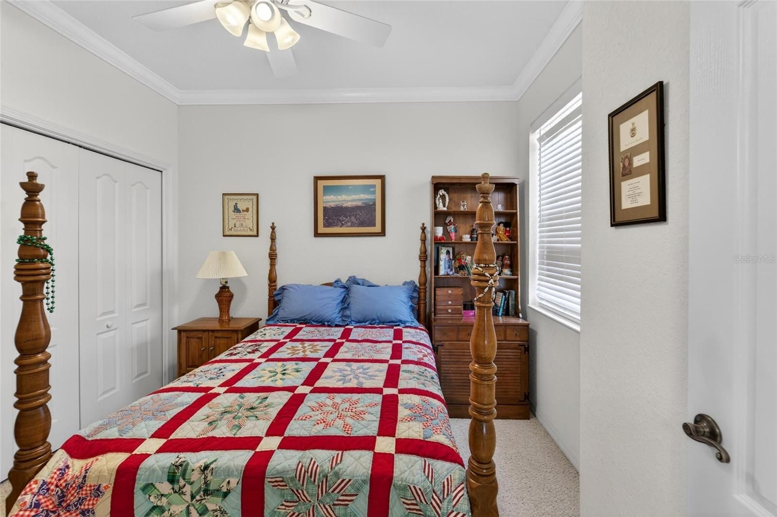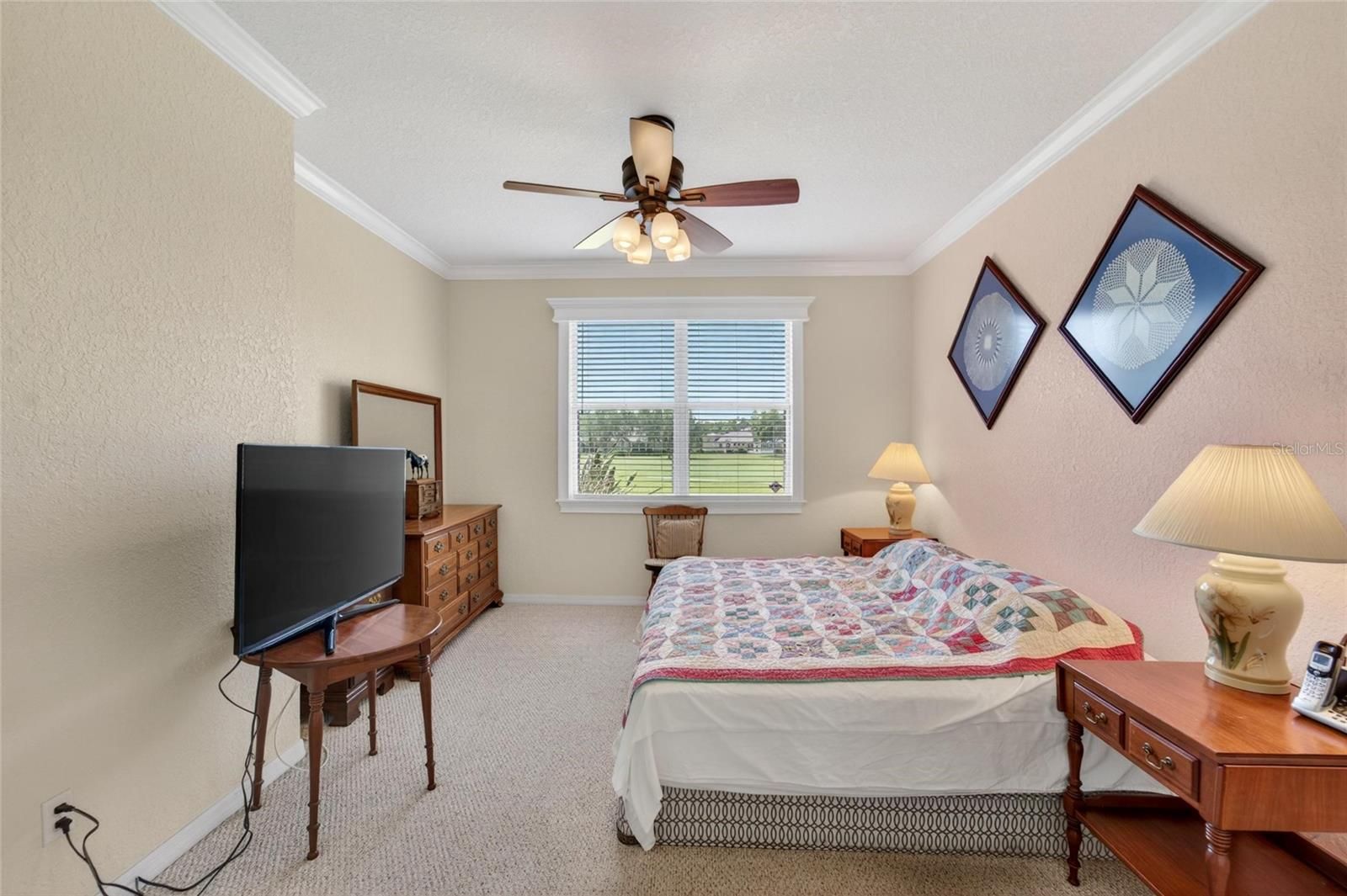 - Ceiling Fan(s), Crown Molding, High Ceilings, Open Floorplan, Main Level Primary, Solid Surface Counters, Solid-Wood Cabinets, Split Bedrooms, Thermostat, Walk-In Closet(s), Window Treatments