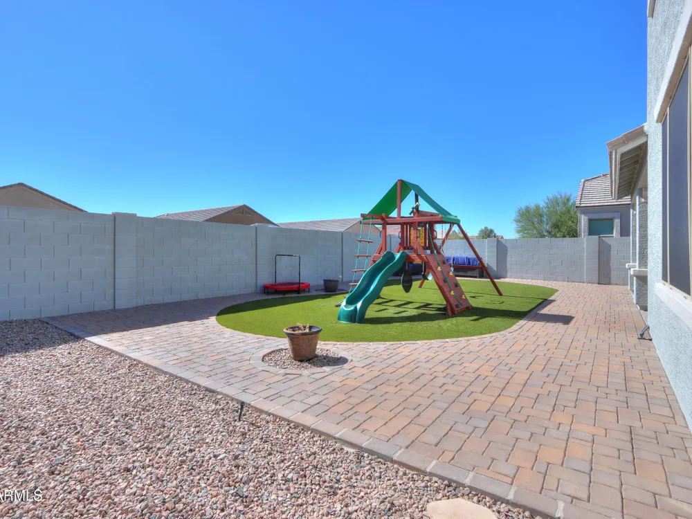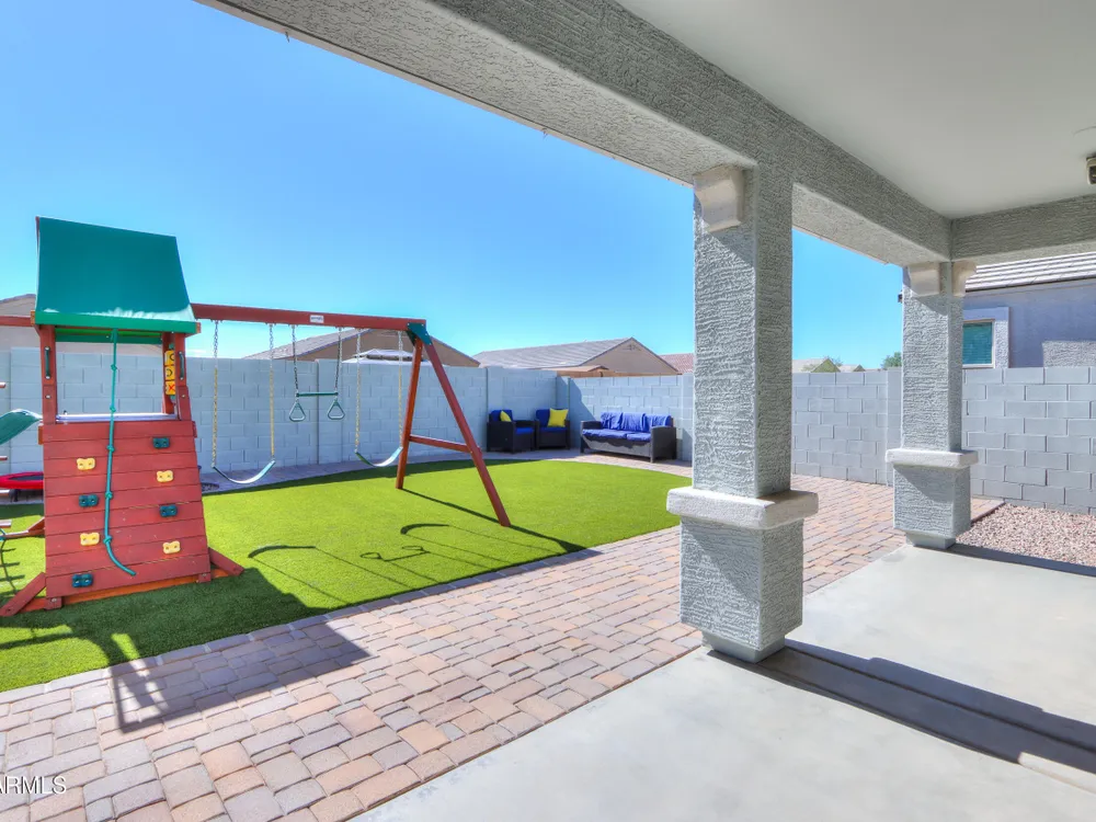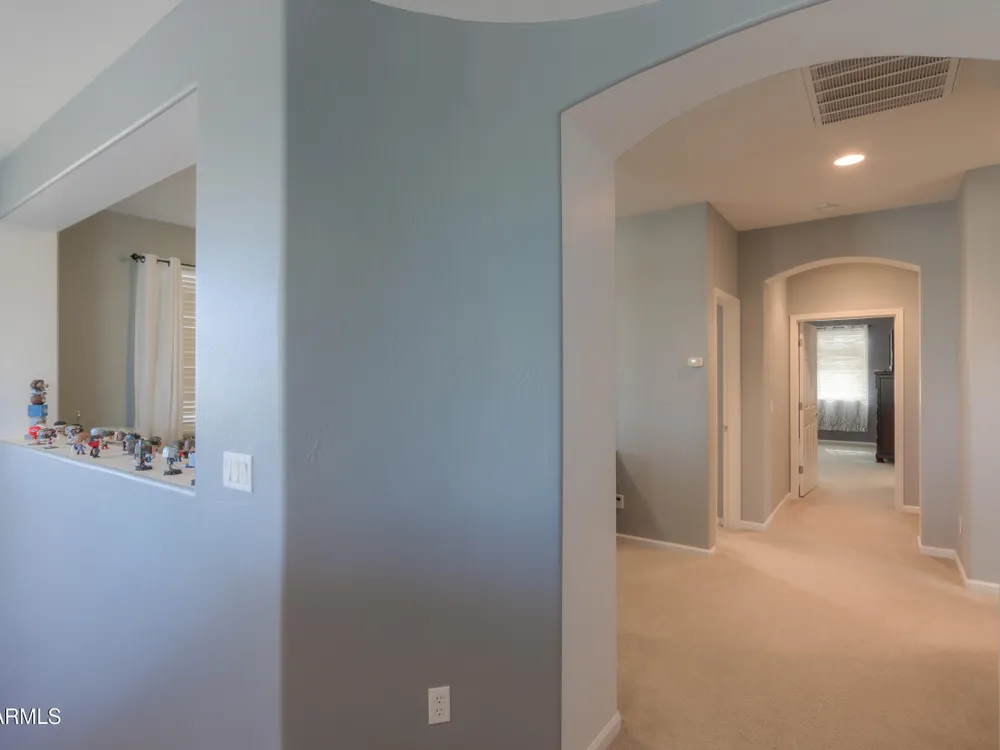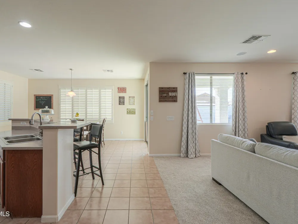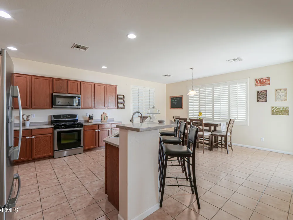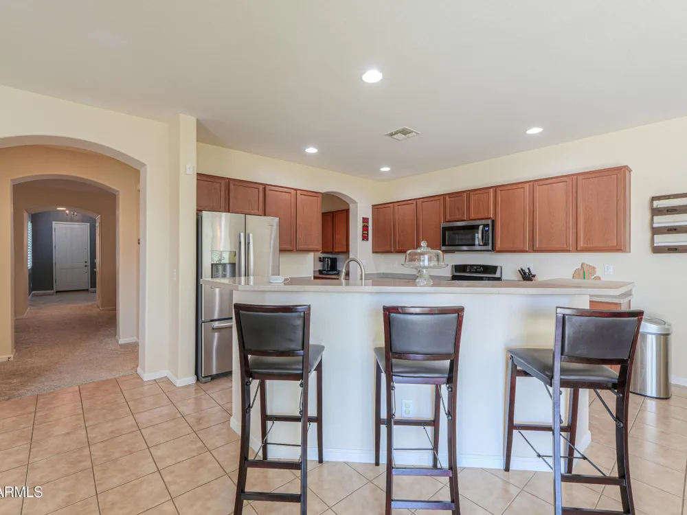 Step into this stunning Casa Grande residence, ideally positioned on a corner lot next to a serene park-like common area. This beautifully maintained home boasts an expansive open-concept layout featuring 4 generously sized bedrooms, 2.5 bathrooms, and soaring ceilings that create a bright, airy atmosphere. The kitchen is a chef's dream, complete quartz countertops, island with breakfast bar, sleek SS appliances, & elegant pendant lighting. The luxurious primary suite offers bathroom with dual vanities, a soaking tub, shower, & a spacious walk-in closet. Upstairs, a versatile loft provides a living space alongside well-appointed bedrooms. Outside, enjoy entertaining or quiet relaxation under a covered patio. Located in a vibrant community w/resort style amenities w/pool & kids area.