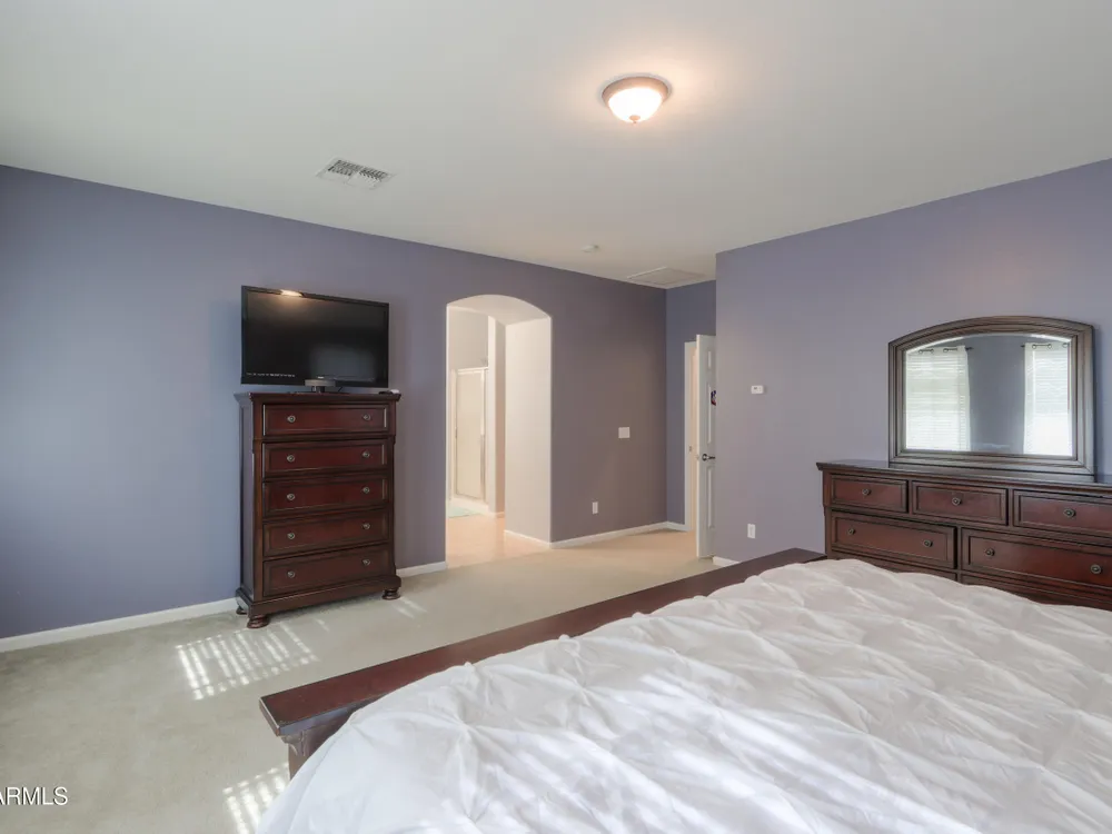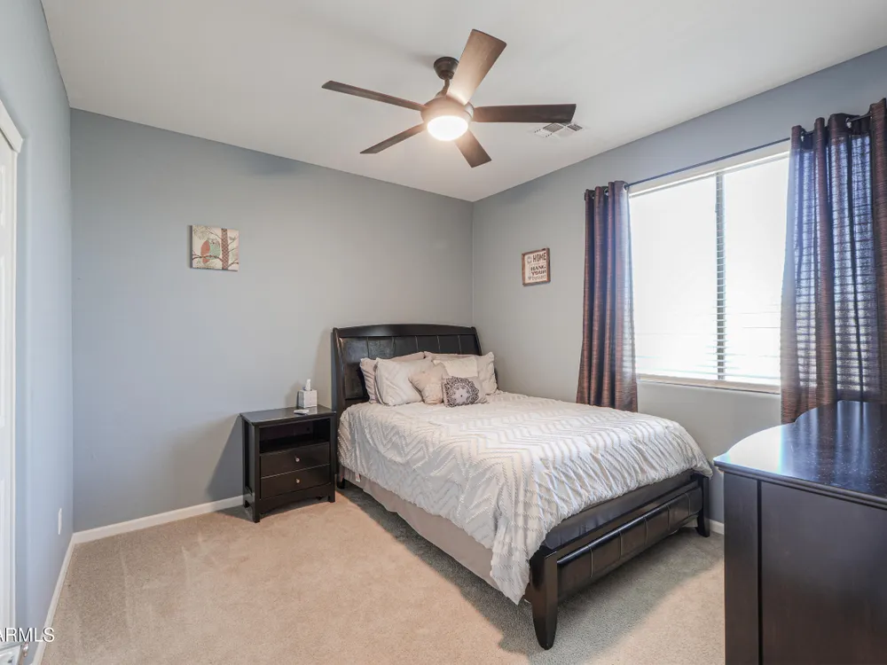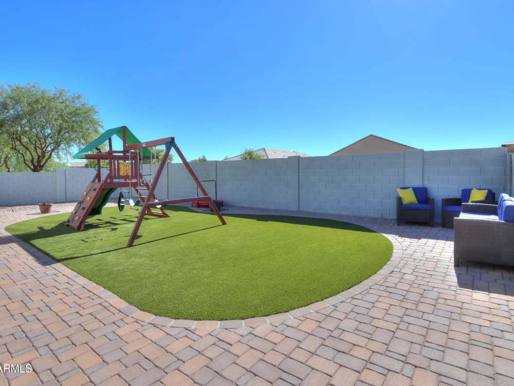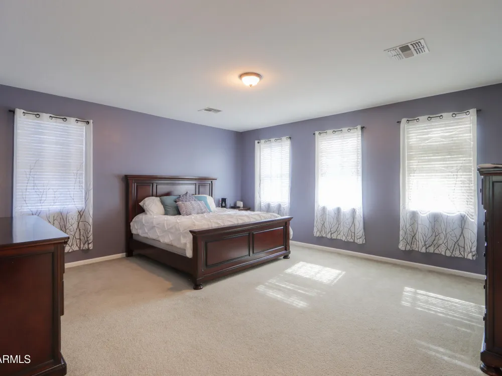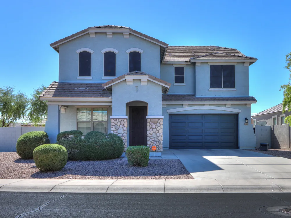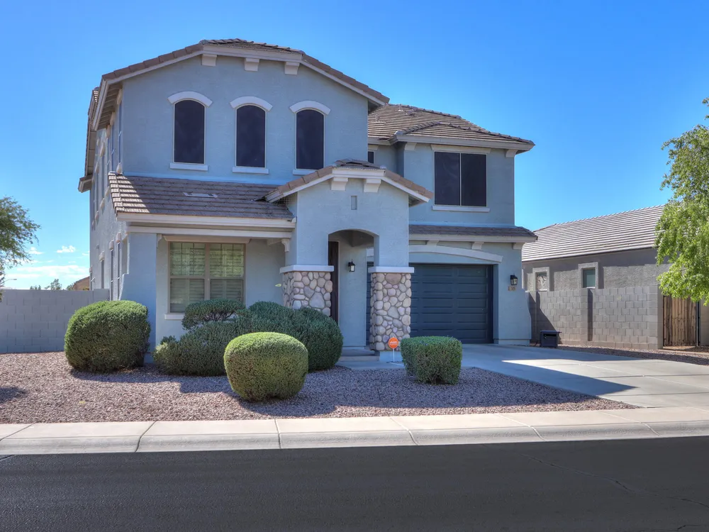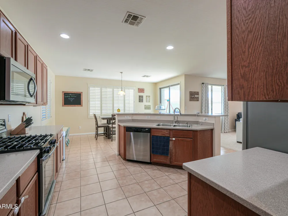 Step into this stunning Casa Grande residence, ideally positioned on a corner lot next to a serene park-like common area. This beautifully maintained home boasts an expansive open-concept layout featuring 4 generously sized bedrooms, 2.5 bathrooms, and soaring ceilings that create a bright, airy atmosphere. The kitchen is a chef's dream, complete quartz countertops, island with breakfast bar, sleek SS appliances, & elegant pendant lighting. The luxurious primary suite offers bathroom with dual vanities, a soaking tub, shower, & a spacious walk-in closet. Upstairs, a versatile loft provides a living space alongside well-appointed bedrooms. Outside, enjoy entertaining or quiet relaxation under a covered patio. Located in a vibrant community w/resort style amenities w/pool & kids area.