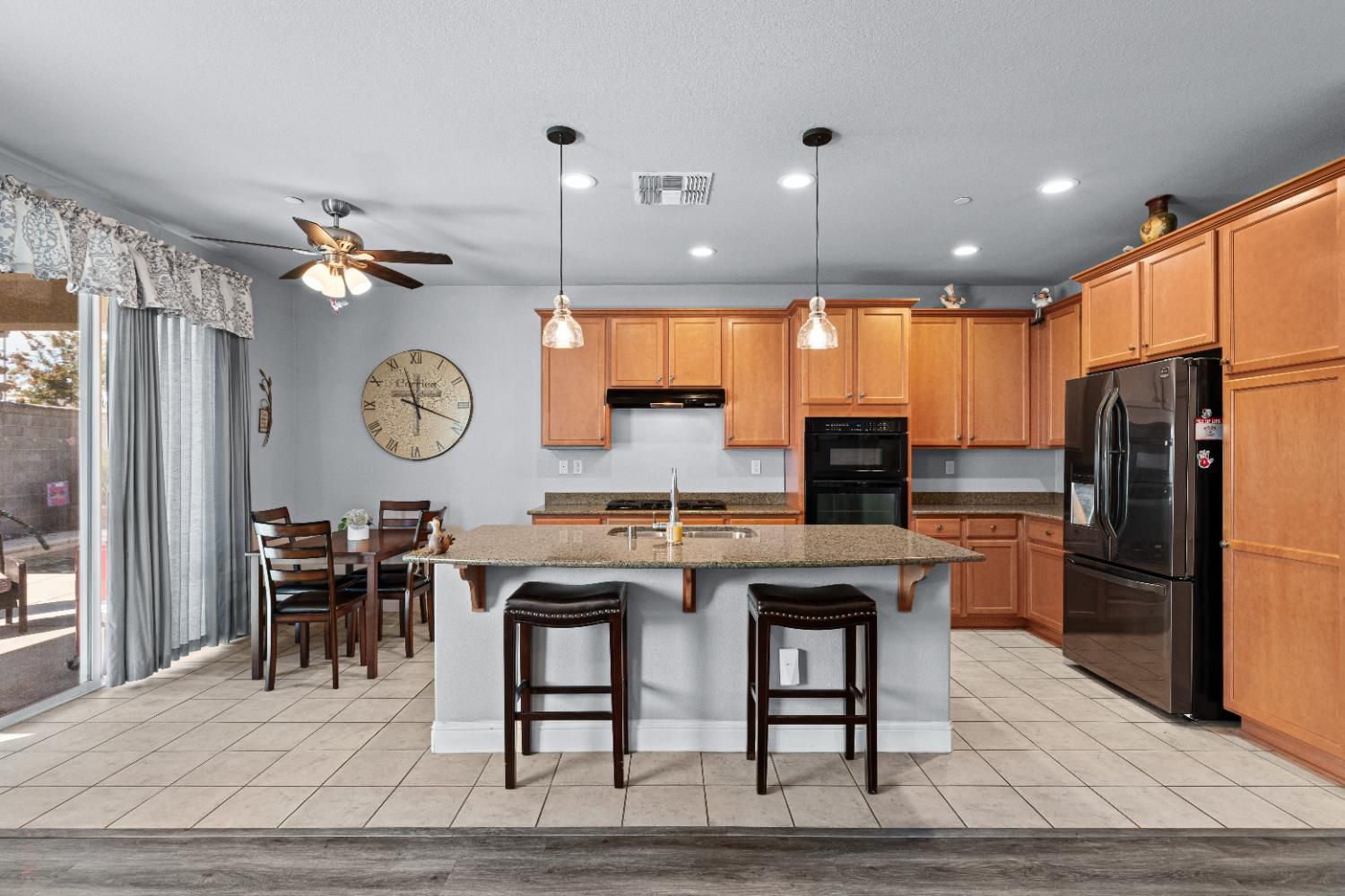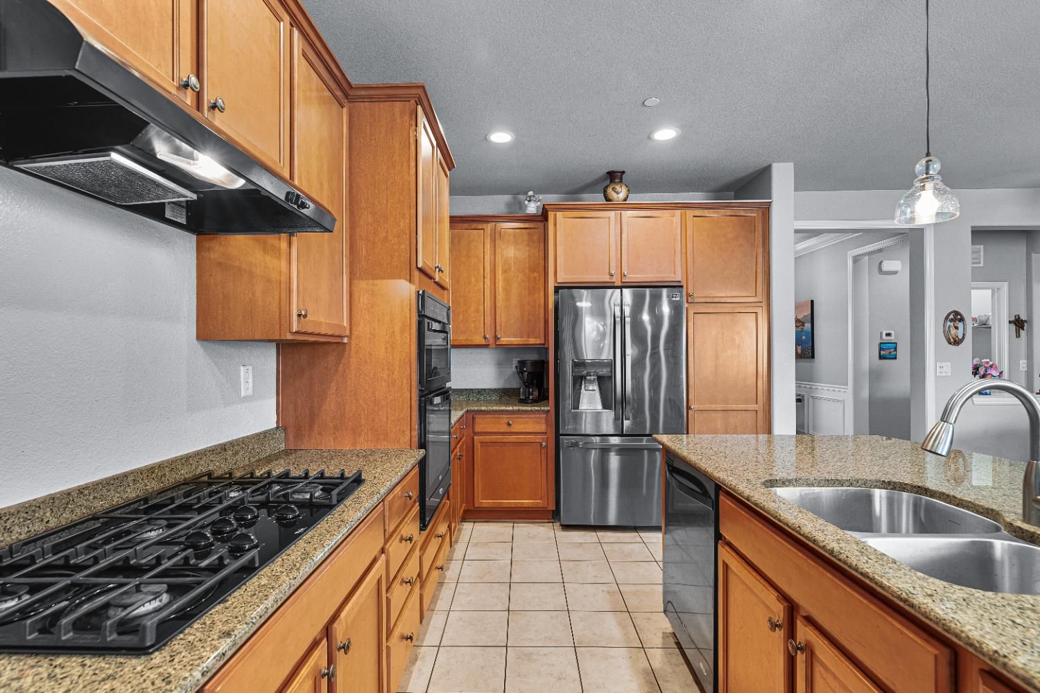 - Built-In Electric Oven, Free-Standing Refrigerator, Gas Cooktop, Dishwasher, Disposal, Microwave